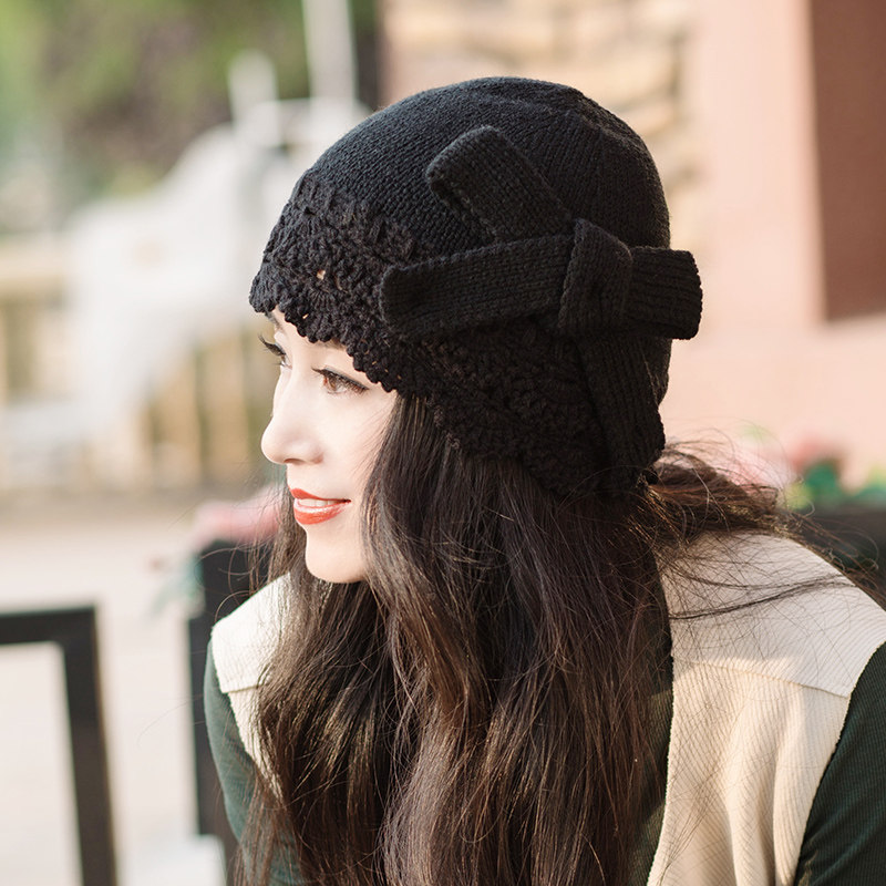 Осенняя японская плетеная трикотажная шапка ручной работы, модный летний берет с бантиком