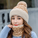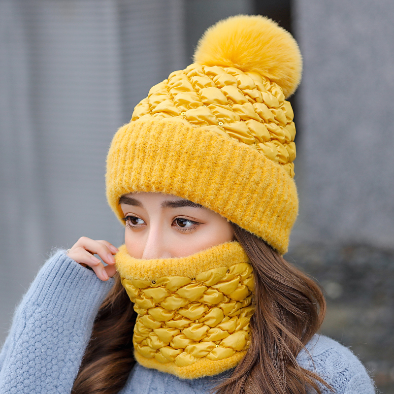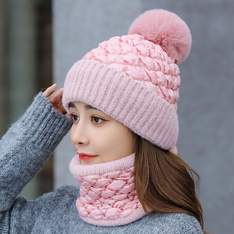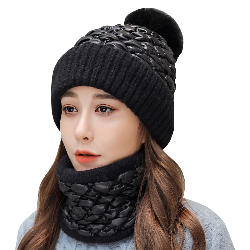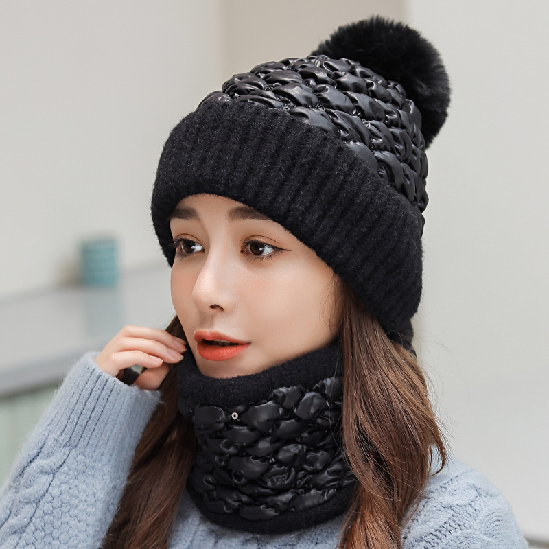 Утепленный зимний милый универсальный шарф, шарф-платок, комплект, удерживающая тепло шерстяная вязаная шапка, в корейском стиле