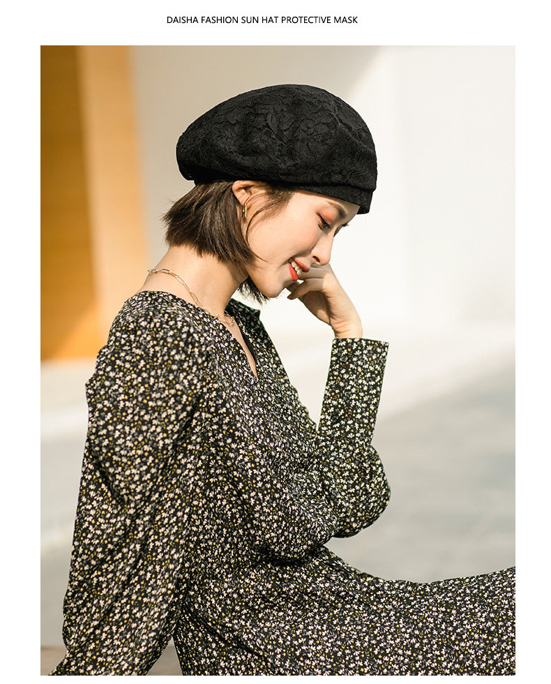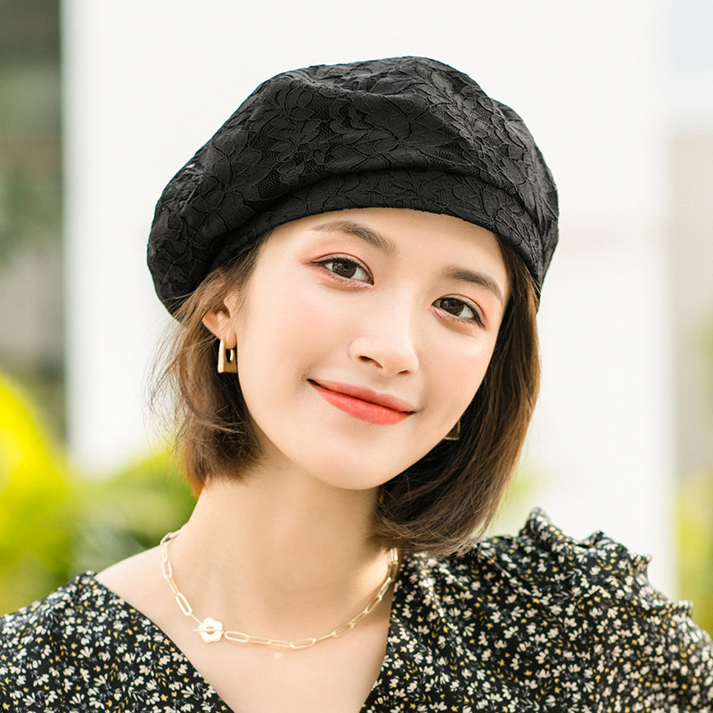 Весенняя летняя модная шапка, универсальный кружевной черный осенний берет