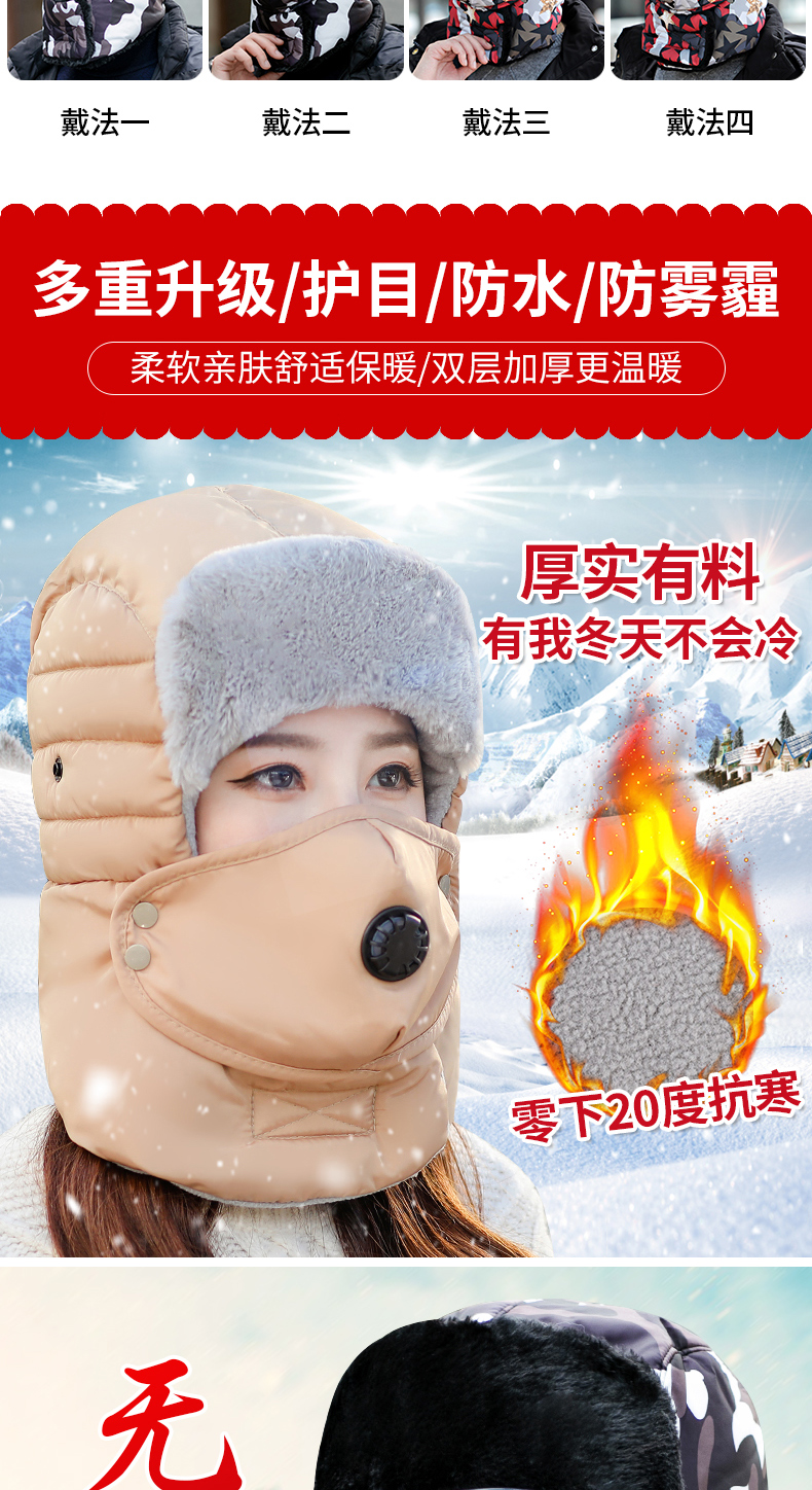 Защищающая от холода шапка, удерживающий тепло флисовый ветрозащитный зимний электромобиль для велоспорта, увеличенная толщина, защита глаз