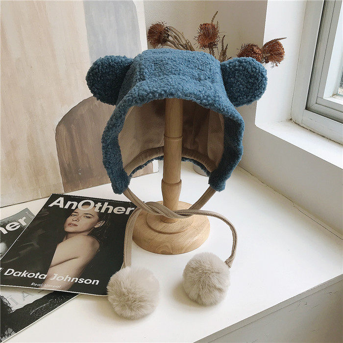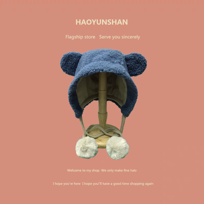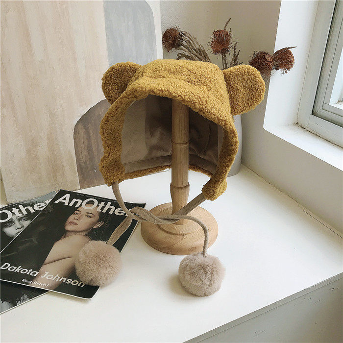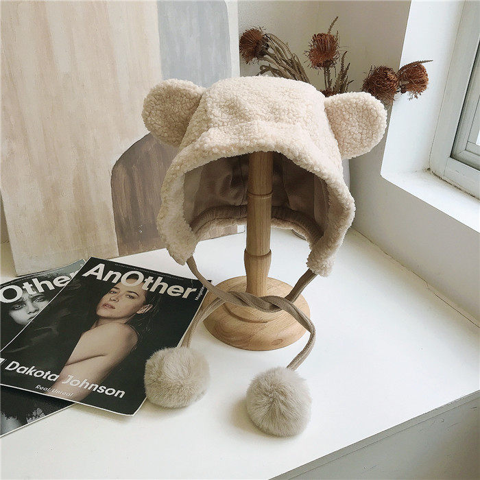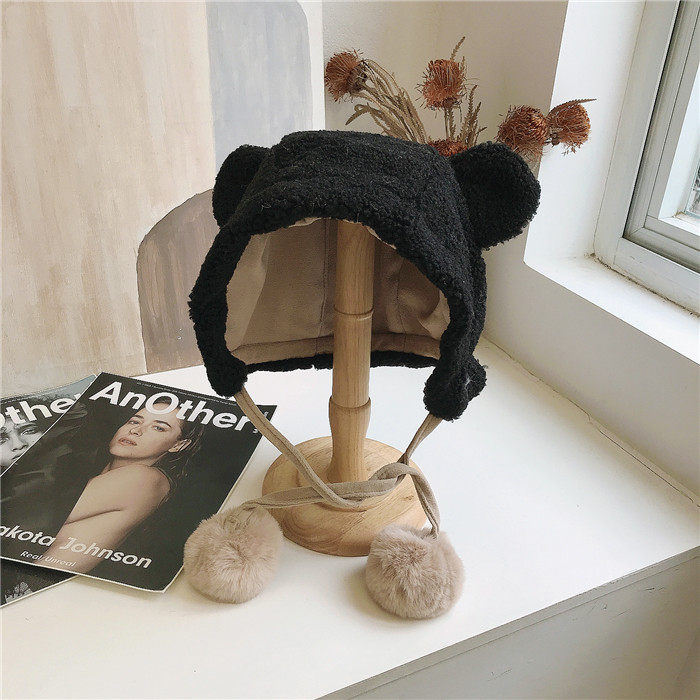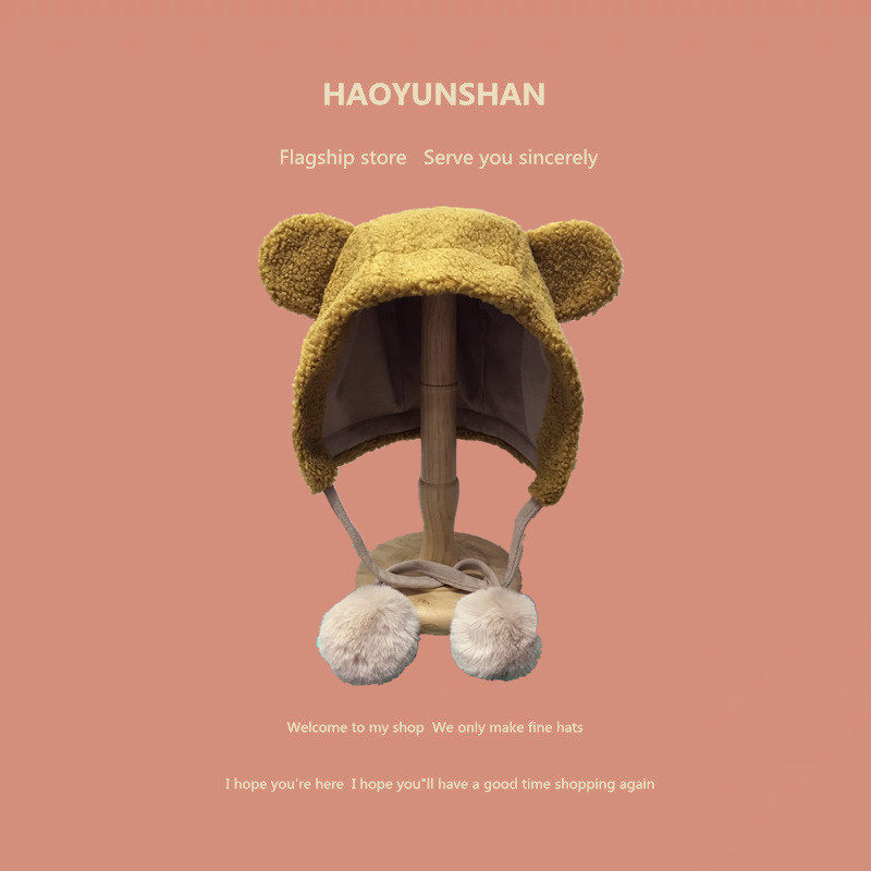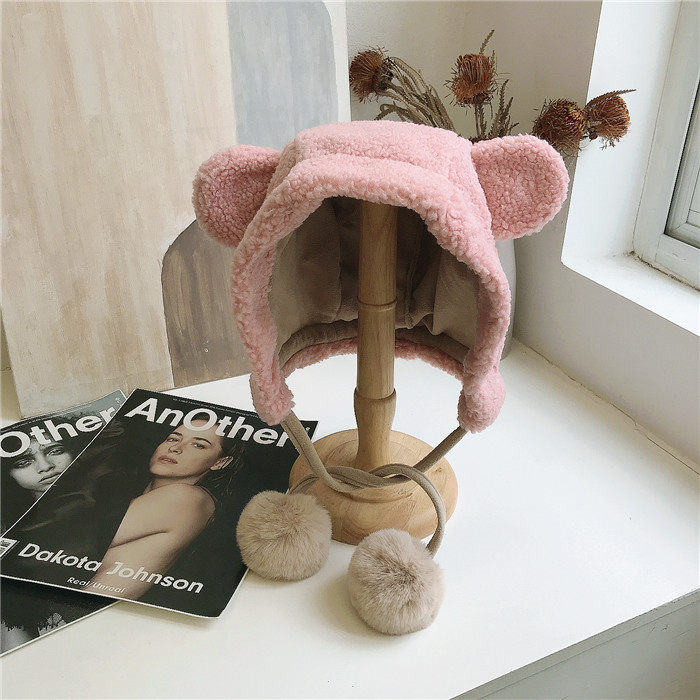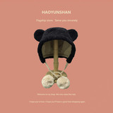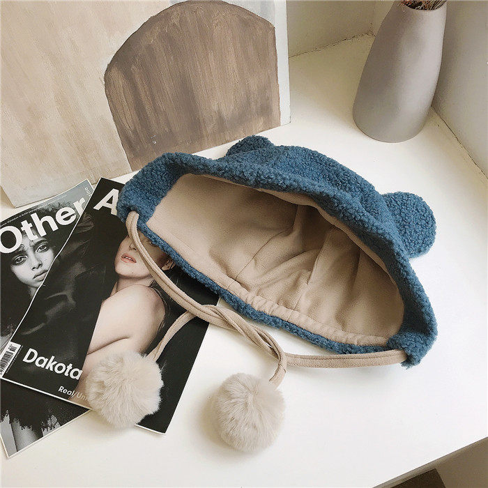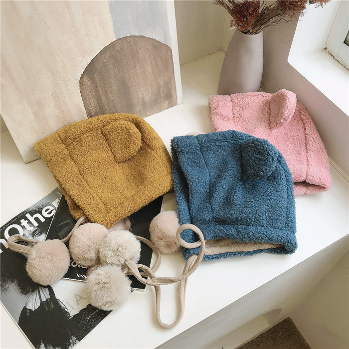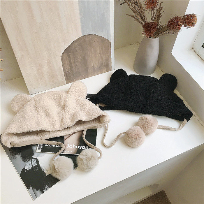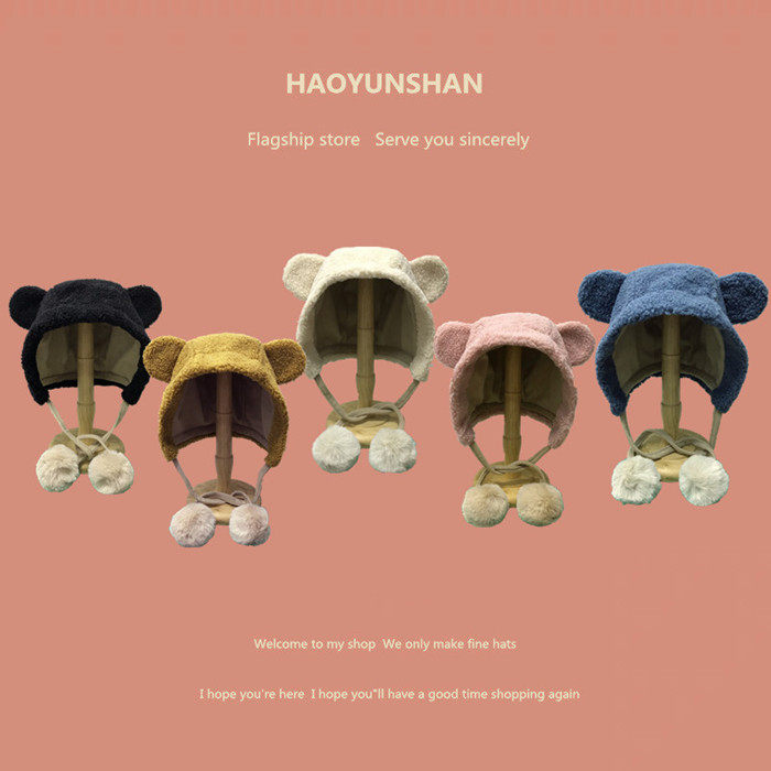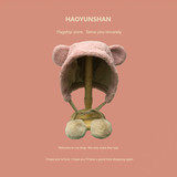 Милая бархатная демисезонная ветрозащитная удерживающая тепло шапка, в корейском стиле, с медвежатами