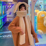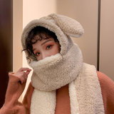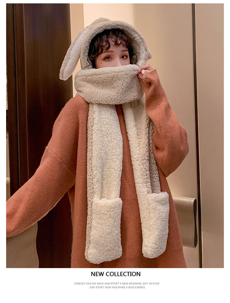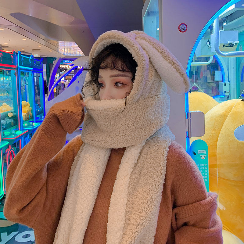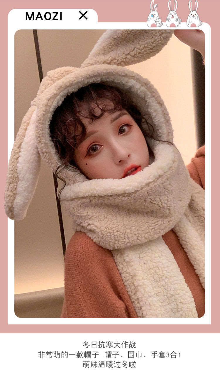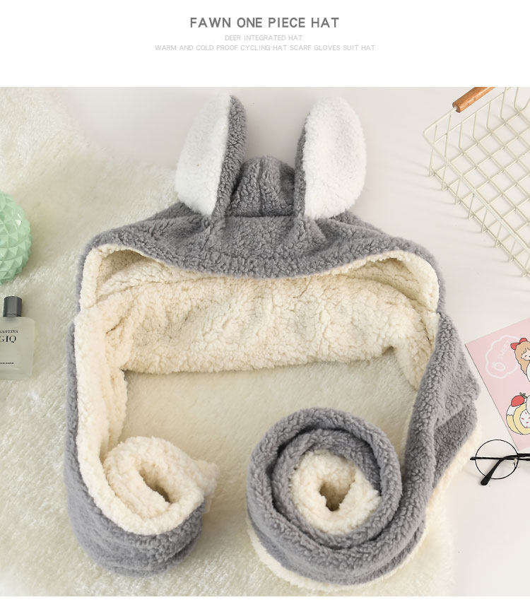 Демисезонная милая шапка, бархатный шарф, удерживающие тепло перчатки, комплект, в корейском стиле, 3 предмета