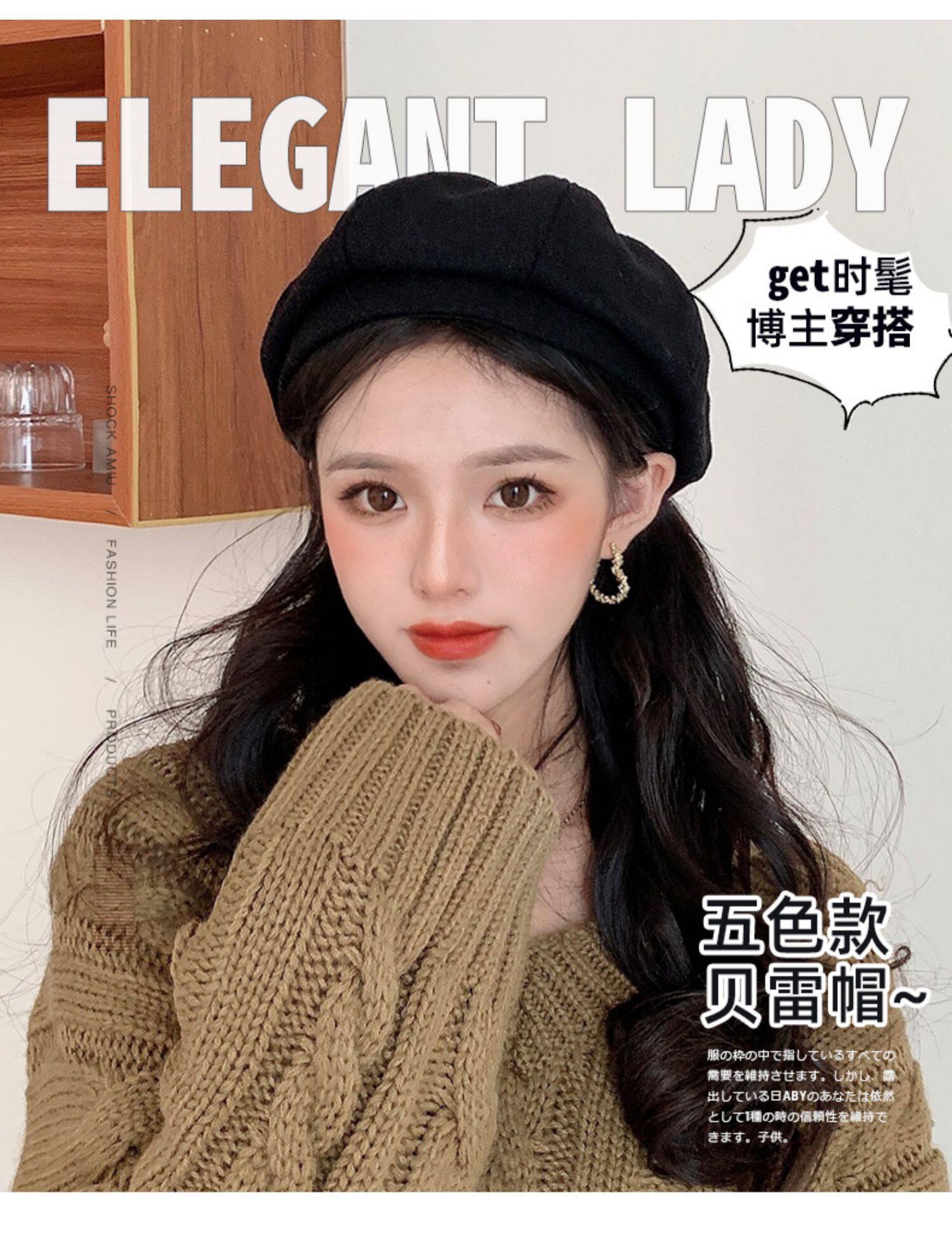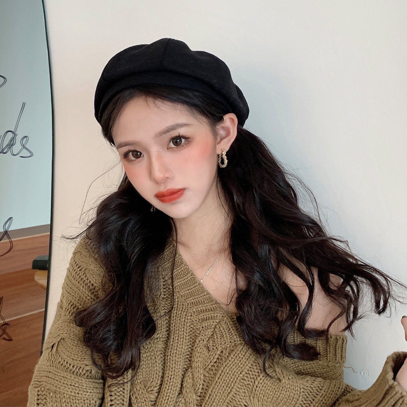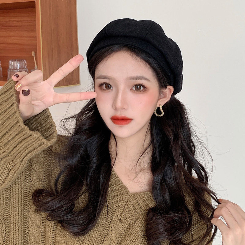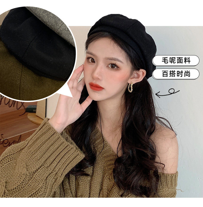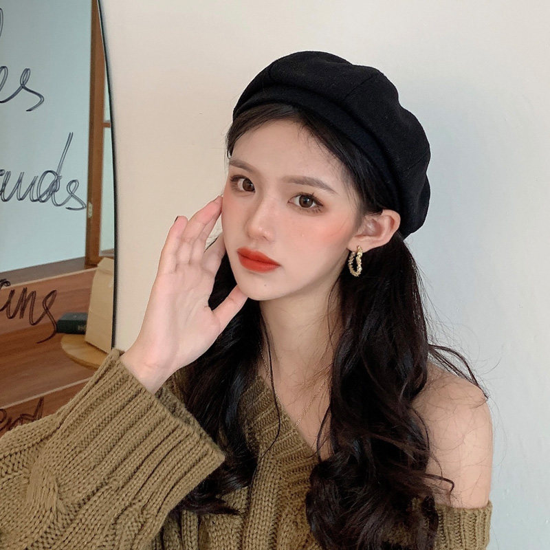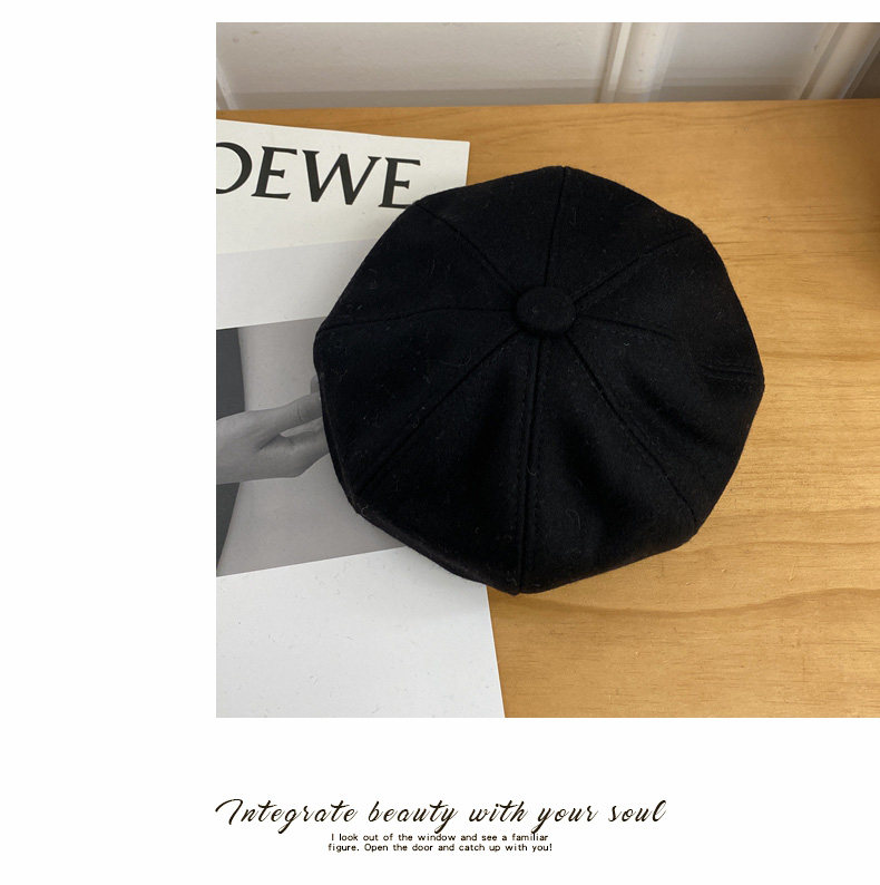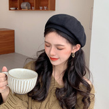 Черный демисезонный берет, осенняя шерстяная шапка, 2023