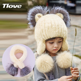 Детская шапка, шарф, демисезонный утепленный милый комплект для девочек
