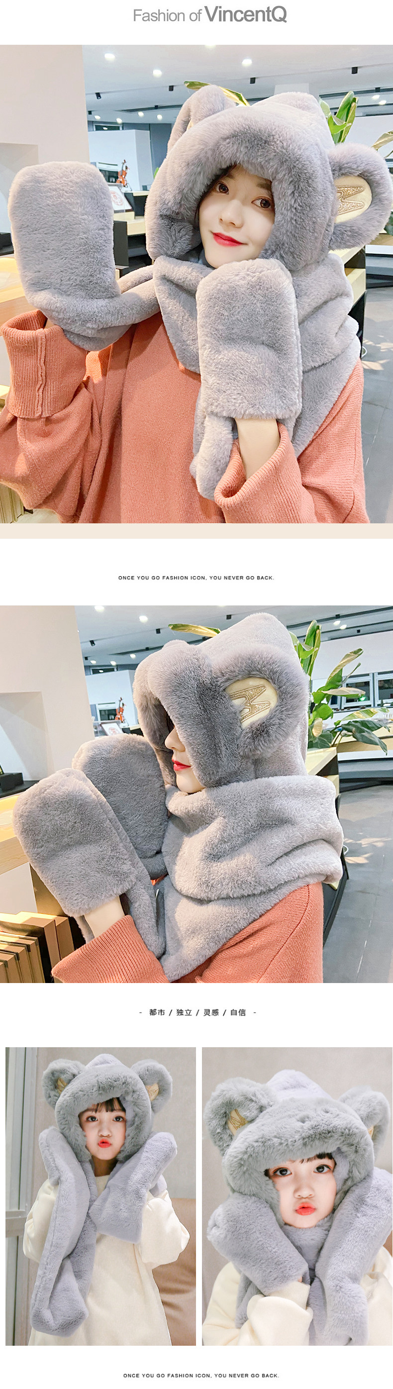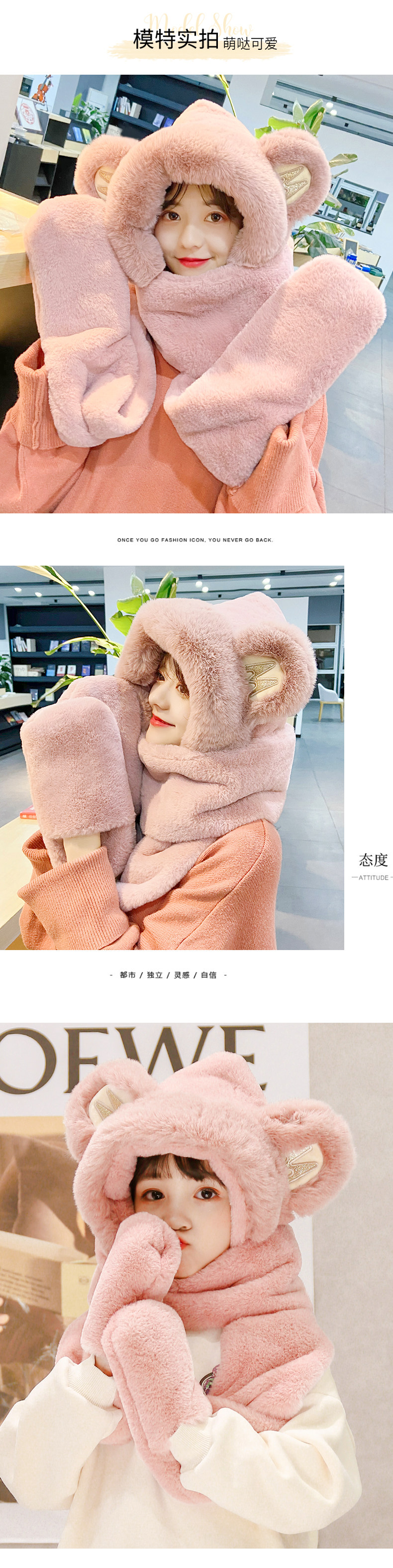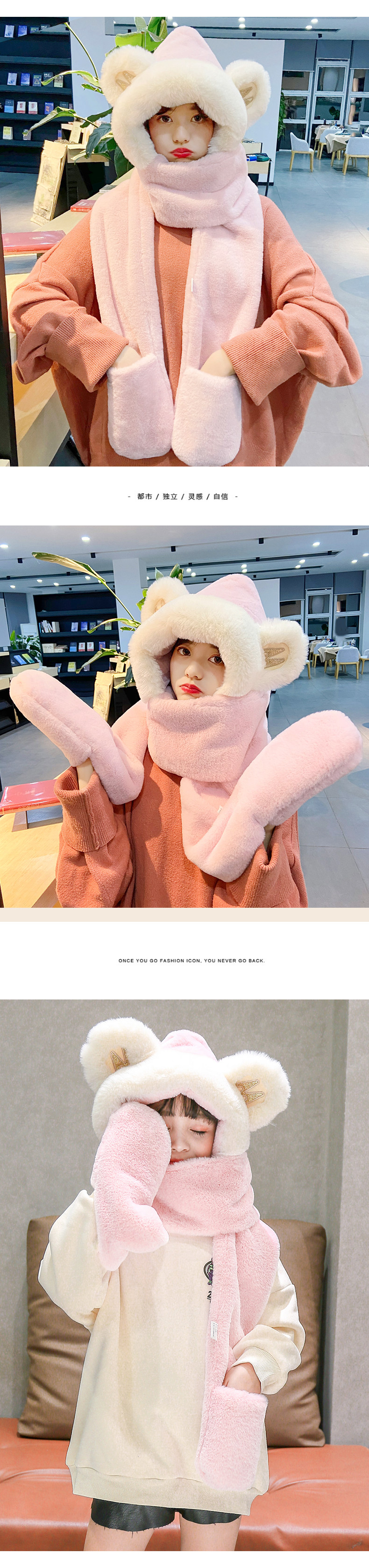 Милая шапка, зимний универсальный удерживающий тепло бархатный шарф, с медвежатами, популярно в интернете