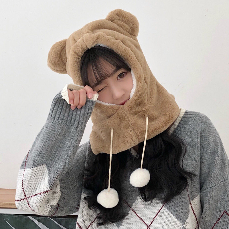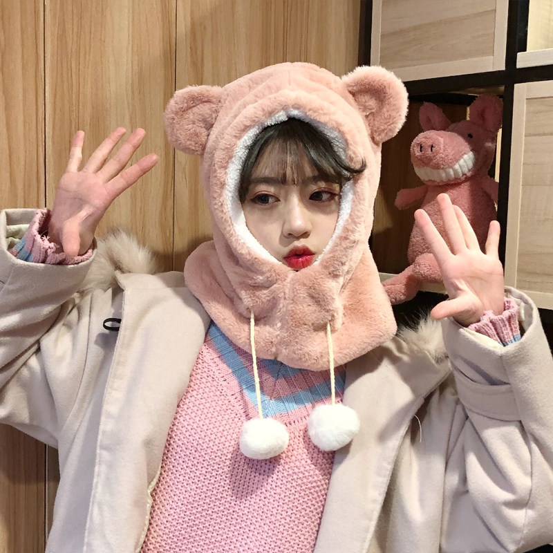 Удерживающий тепло комплект, кролик, милая зимняя шапка, лыжная флисовая маска