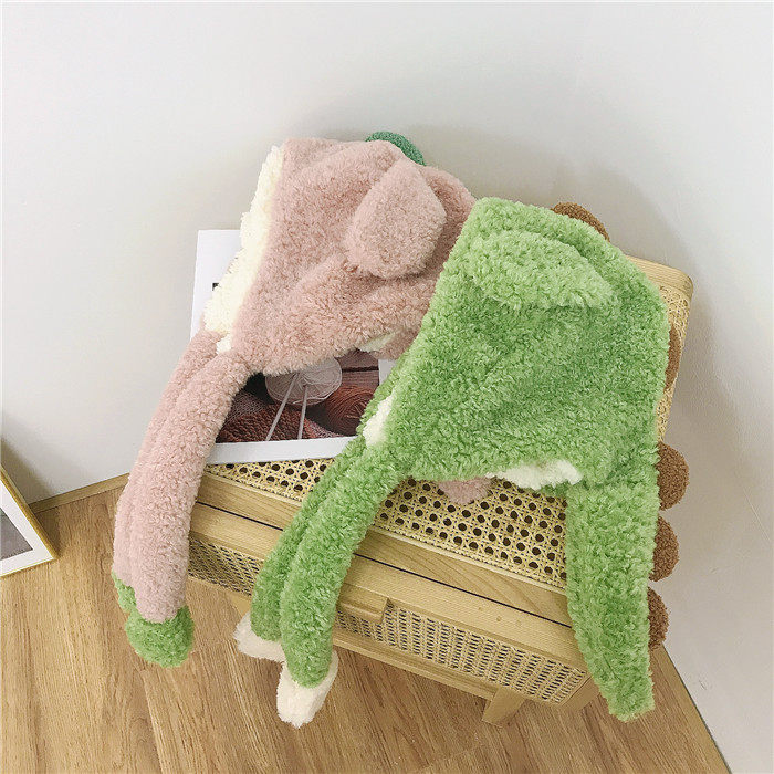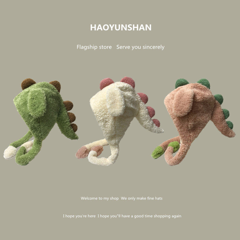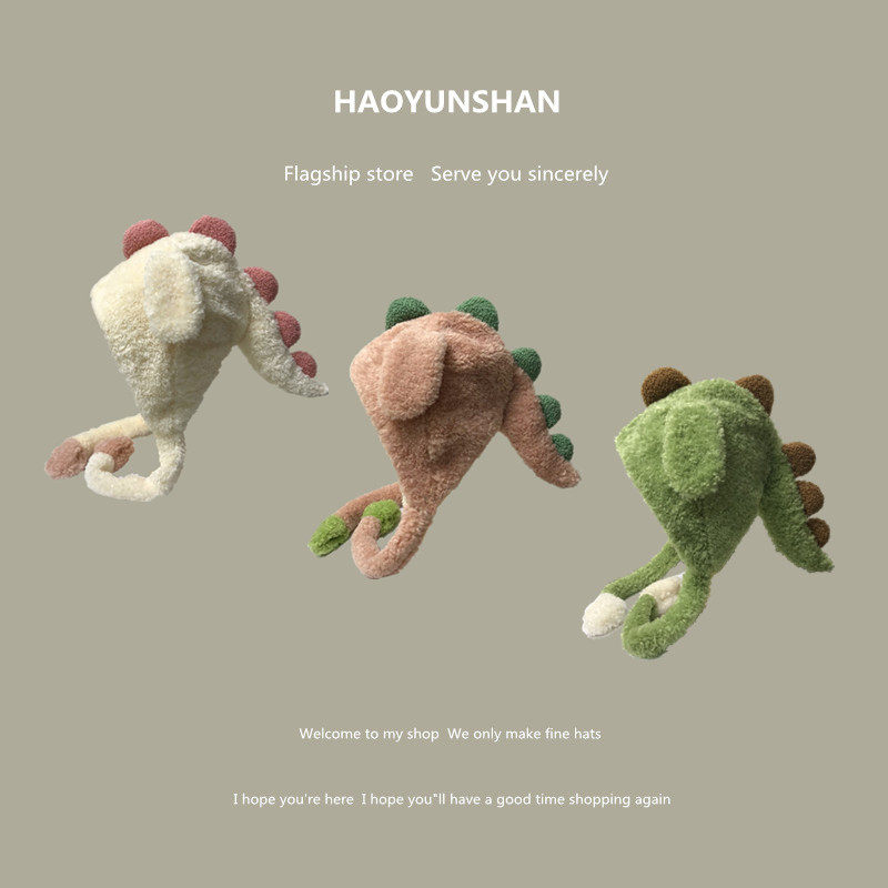 Забавный мультяшный плюшевый динозавр для школьников, демисезонная удерживающая тепло шапка, Южная Корея