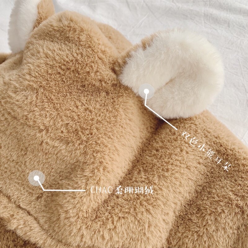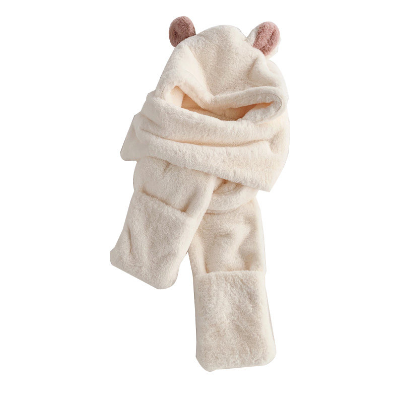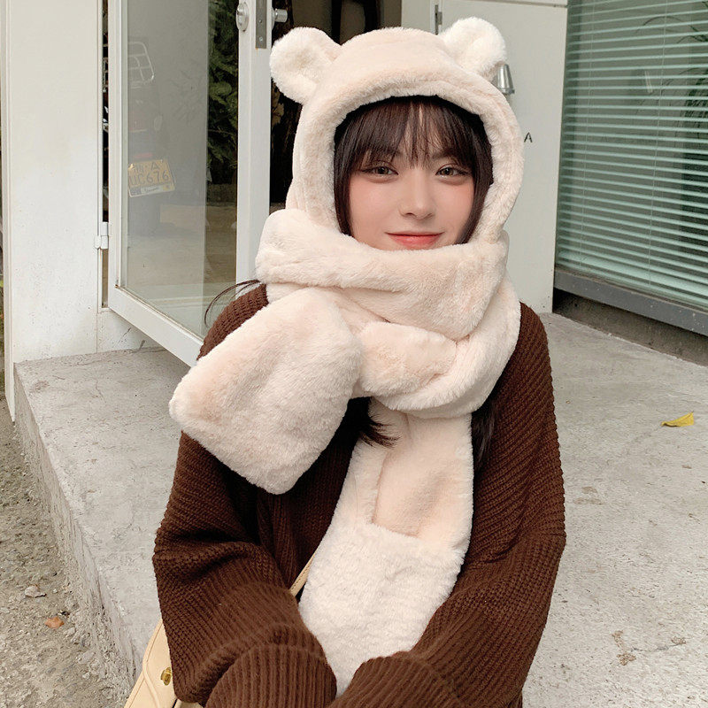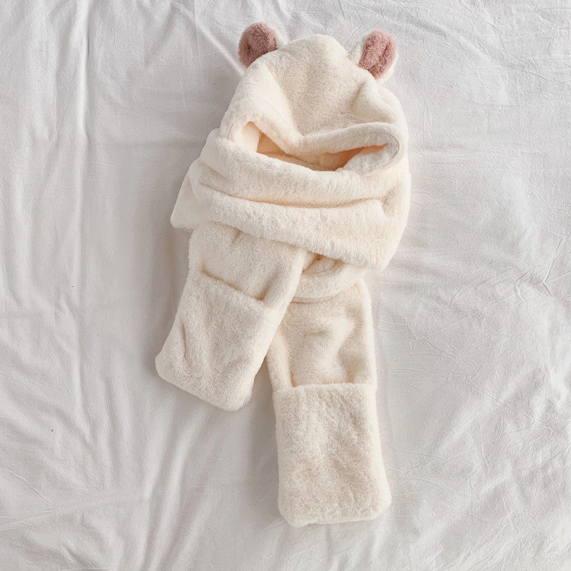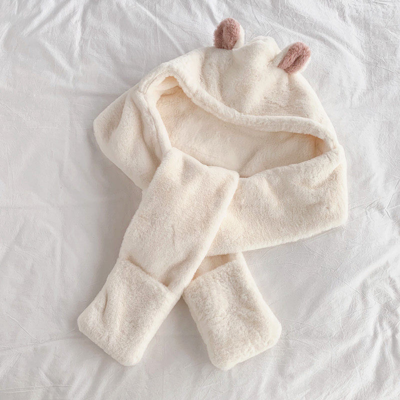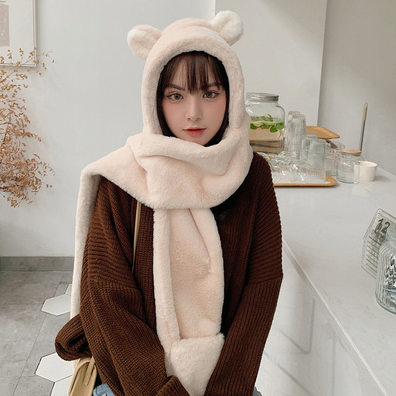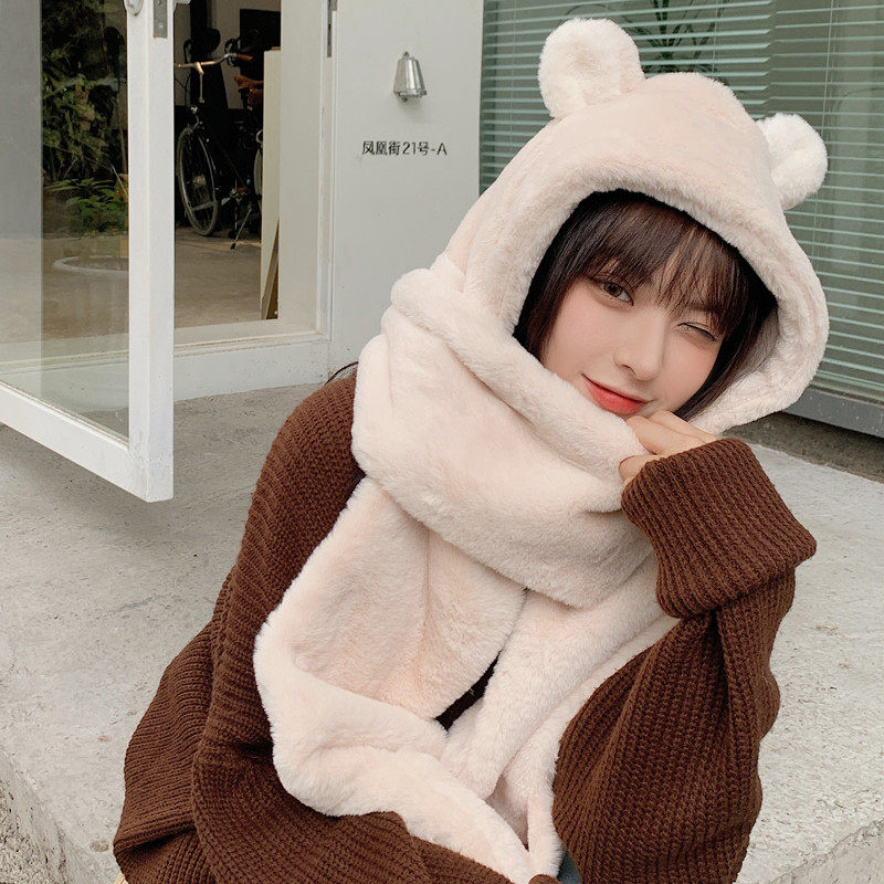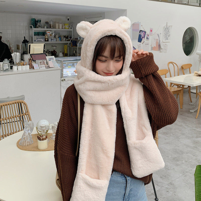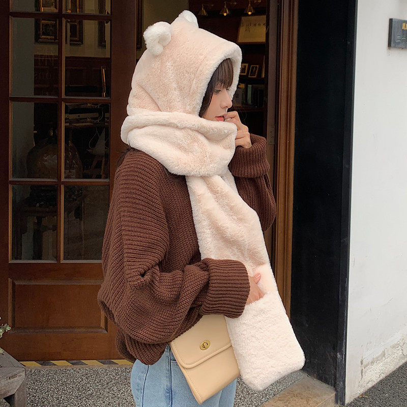 Зимний милый шарф с капюшоном, универсальная удерживающая тепло бархатная шапка, с медвежатами, в корейском стиле
