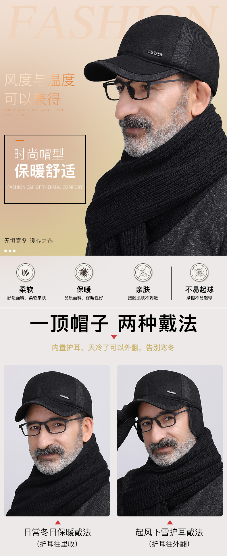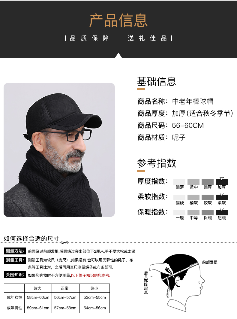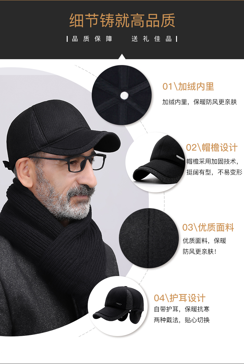 Мужская зимняя бейсбольная шапка, удерживающая тепло кепка, для среднего возраста