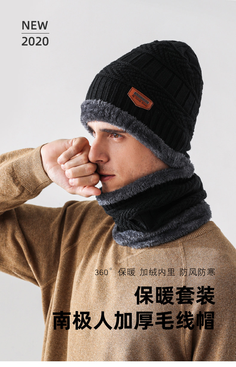 南极人 Демисезонная утепленная шапка, удерживающий тепло шерстяной комплект, шарф, увеличенная толщина
