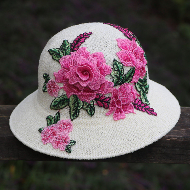 Модная трехмерная этническая дышащая пляжная шапка на солнечной энергии, городской стиль, с вышивкой, из хлопка и льна, защита от солнца