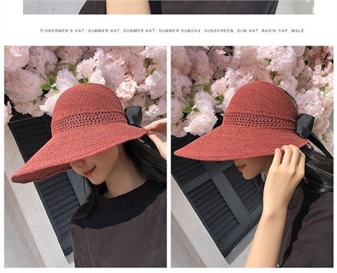 Сплетенная ручная летняя летняя арт -рыбак соломенная шляпа Соломенная шляпа Женская корейская версия тканой розовой сети красной Большой головы