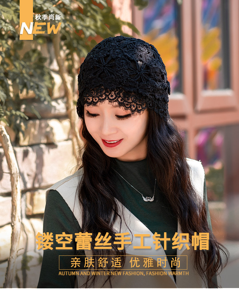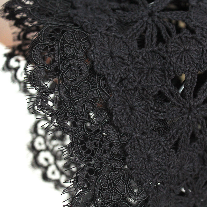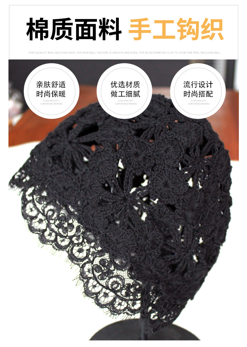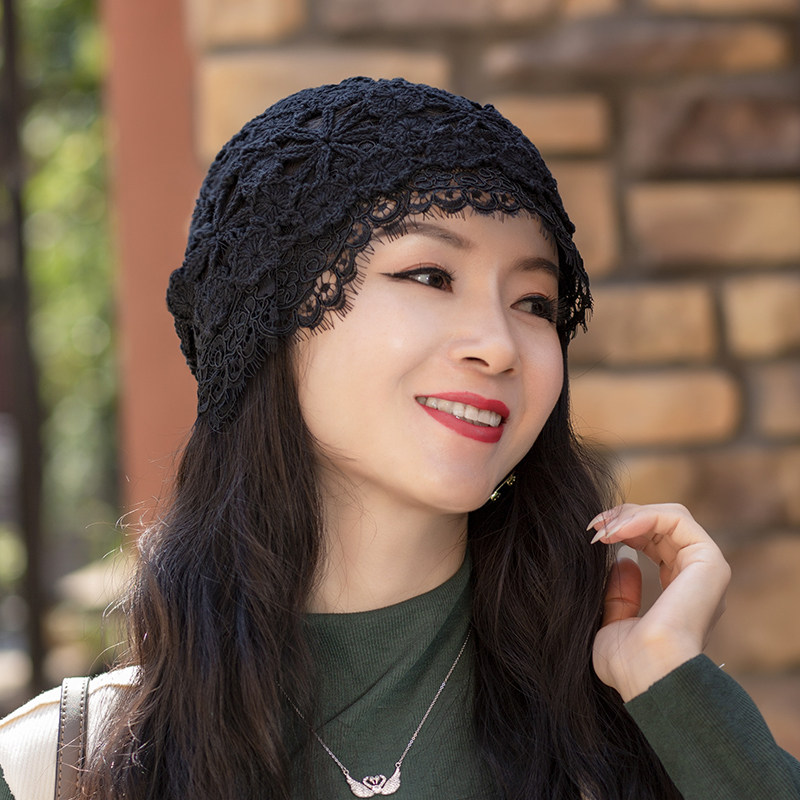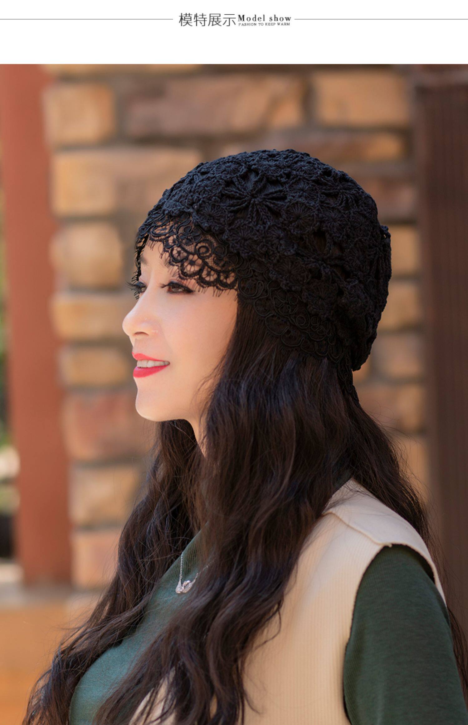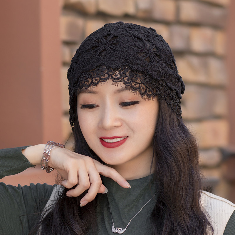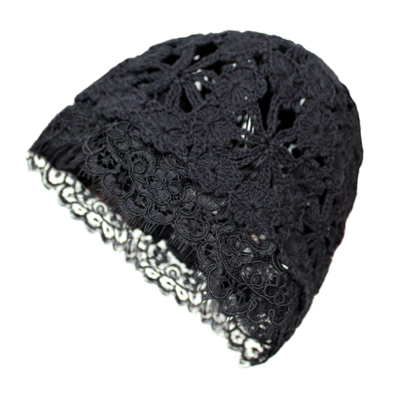 Летняя универсальная черная кружевная шапка, тонкая шерстяная повязка на голову ручной работы, шапочка для волос