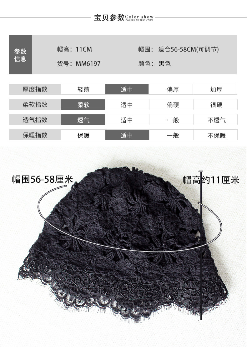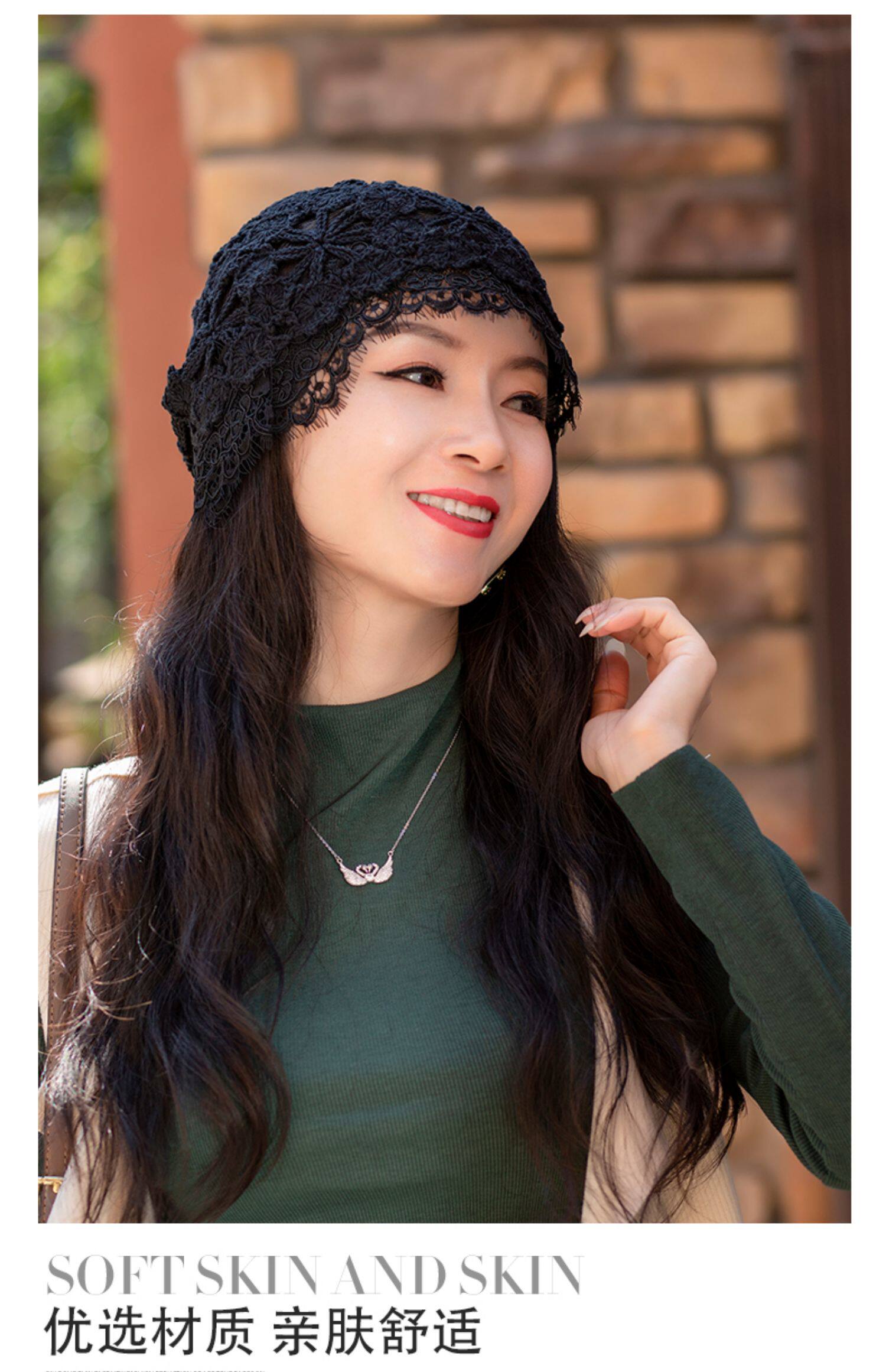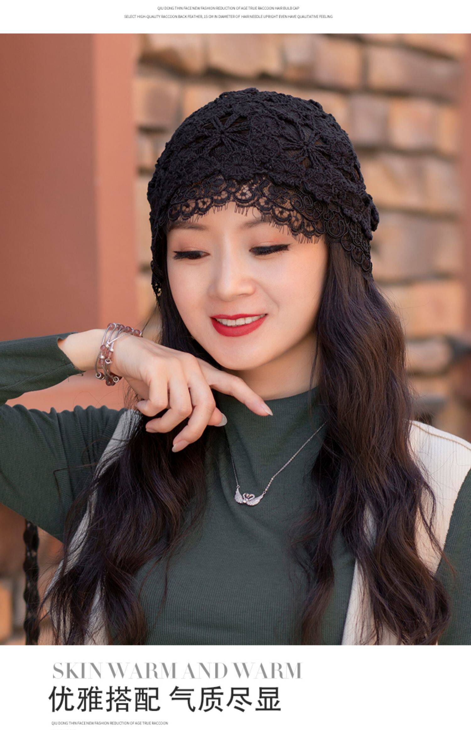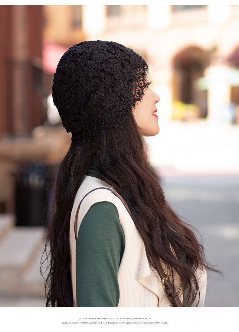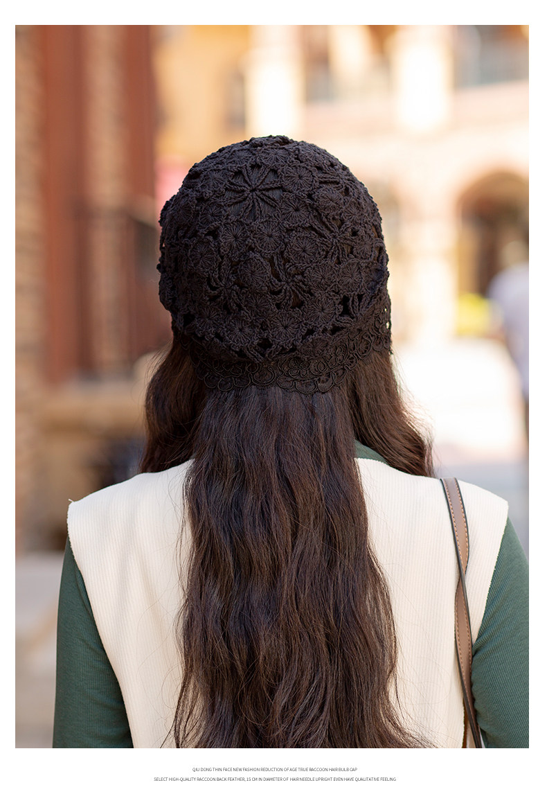 Летняя универсальная черная кружевная шапка, тонкая шерстяная повязка на голову ручной работы, шапочка для волос