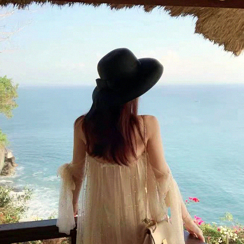 Ретро черная солнцезащитная шляпа, пляжная шапка на солнечной энергии, популярно в интернете, защита от солнца, пляжный стиль, подходит для подростков
