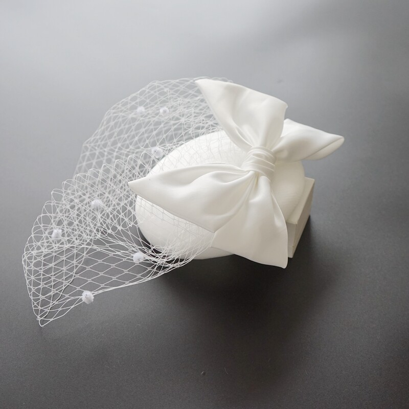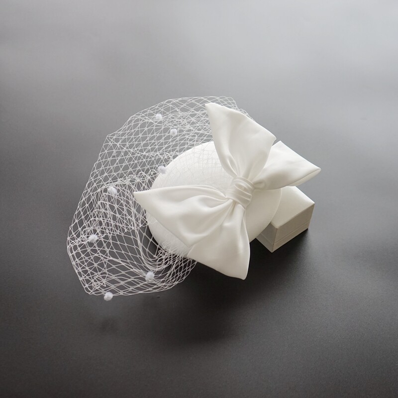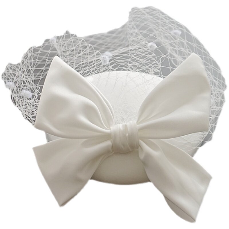 Ретро белое свадебное платье с бантиком для невесты, ципао, аксессуар для волос, шапка, французский стиль