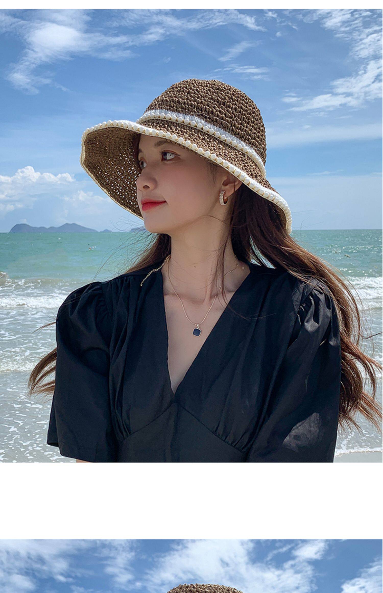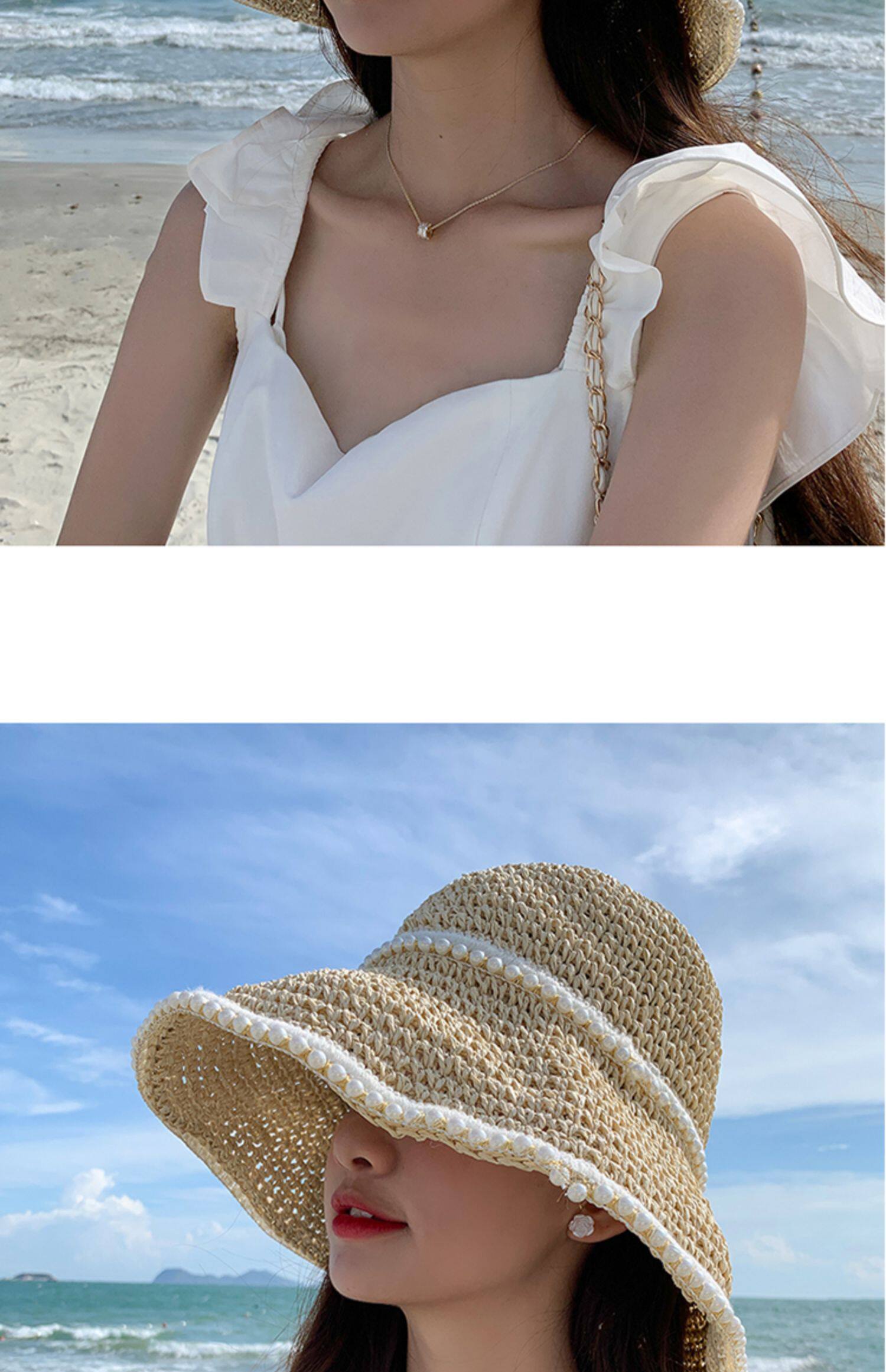 Плетеная летняя тонкая пляжная шапка на солнечной энергии, защита от солнца, пляжный стиль