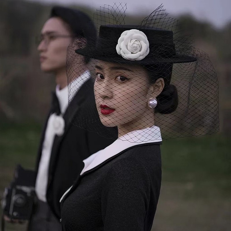 Ретро черное элегантное платье, ципао, аксессуар для волос, шапка, французский стиль