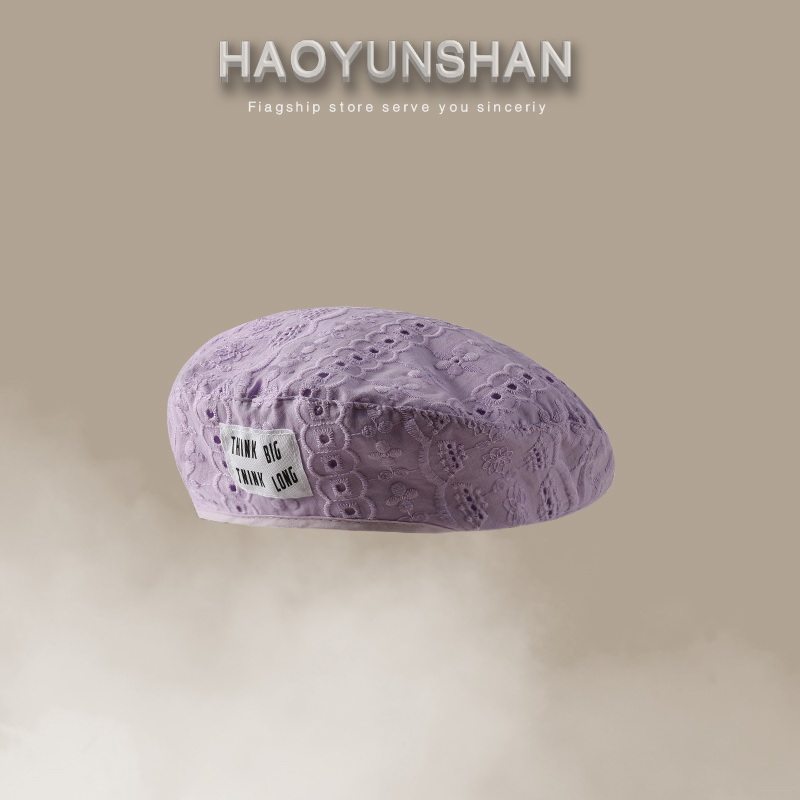 Летний тонкий дышащий сиреневый берет, милая универсальная шапка, в западном стиле, простой и элегантный дизайн