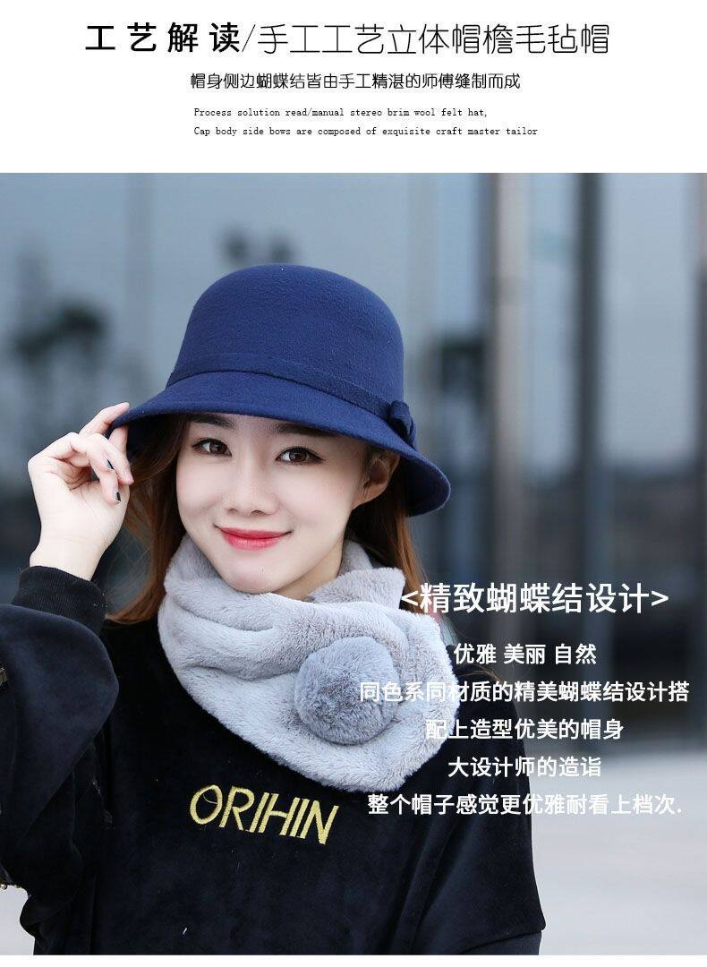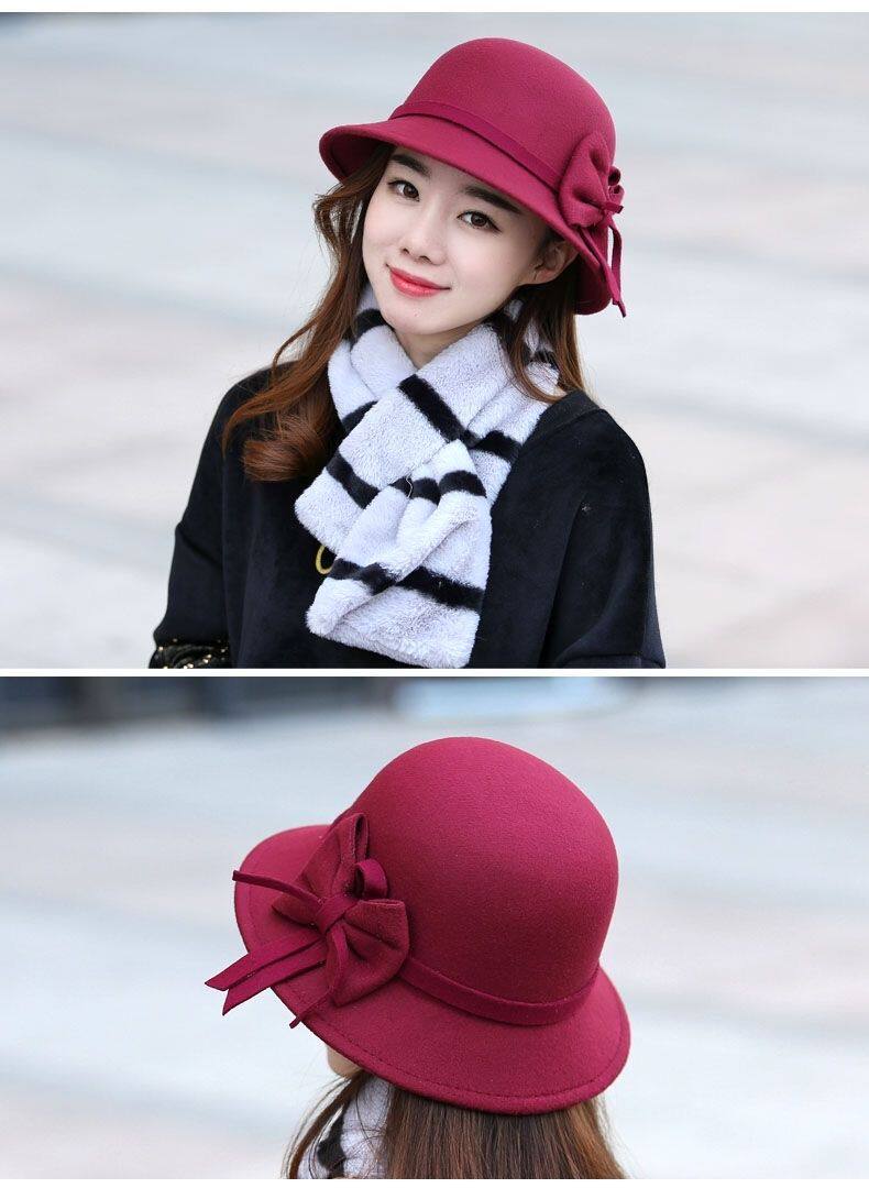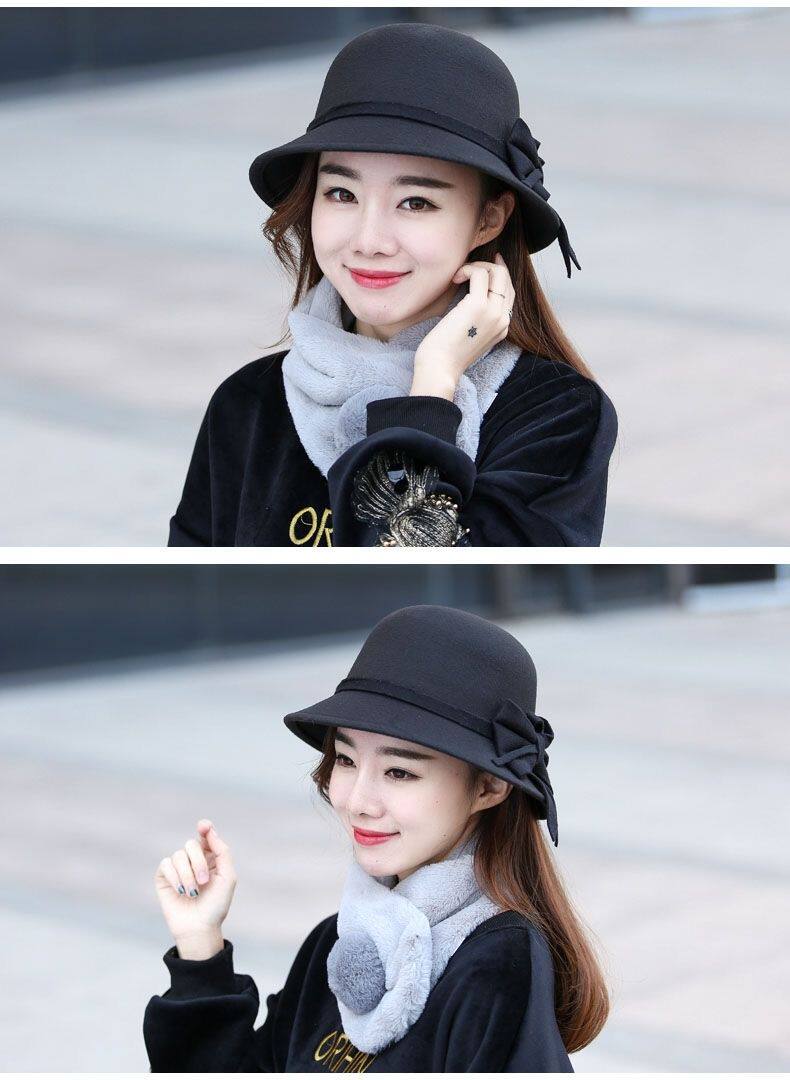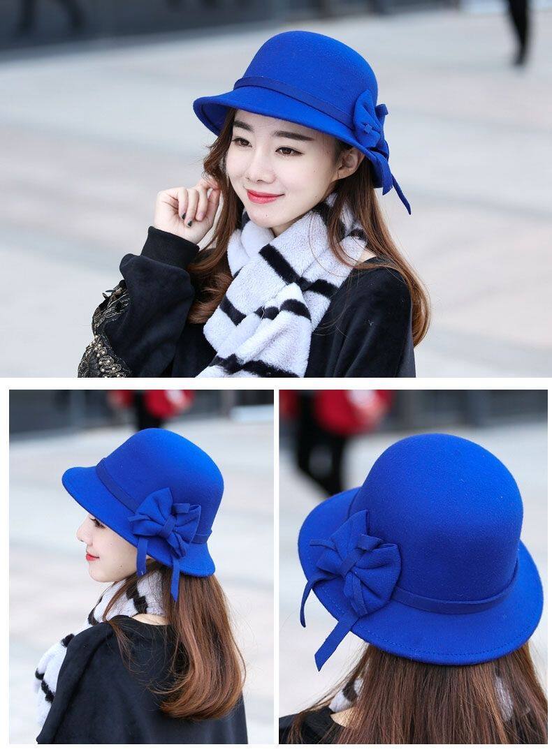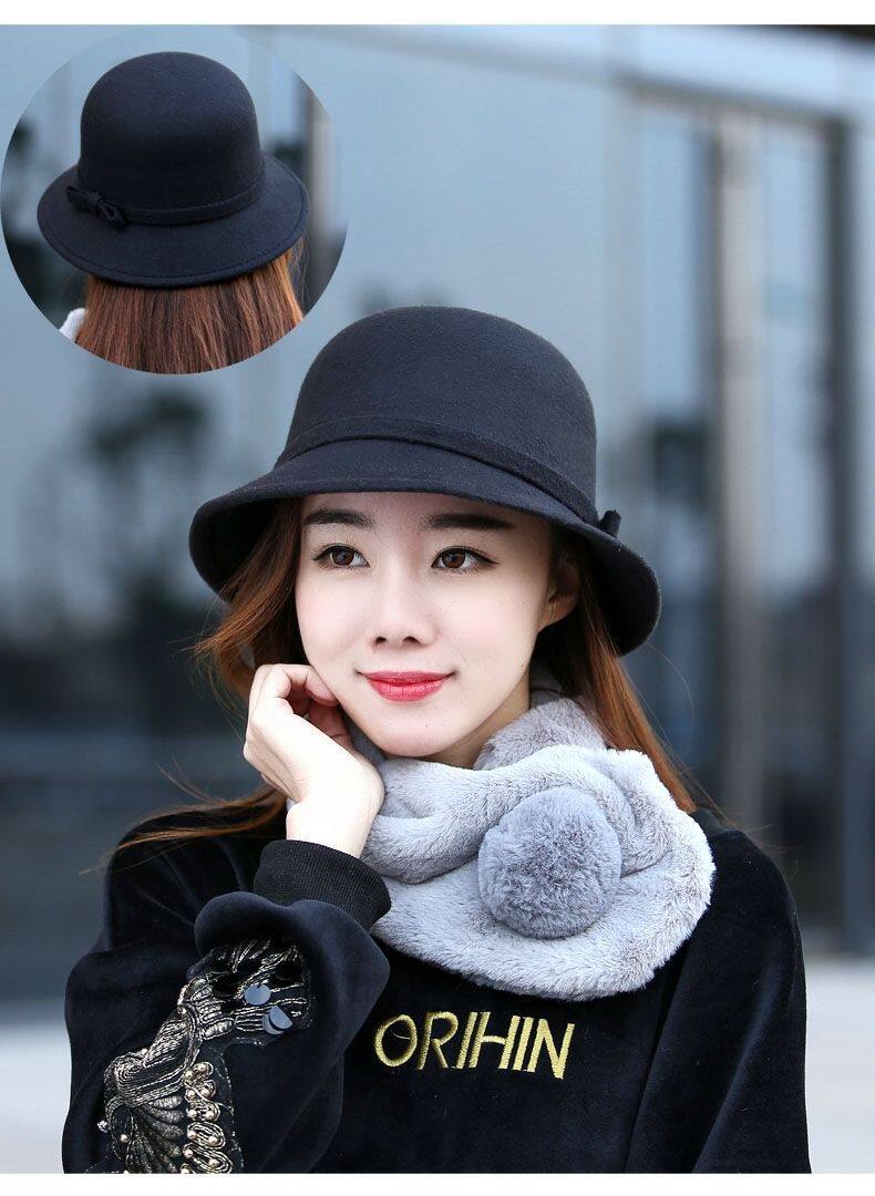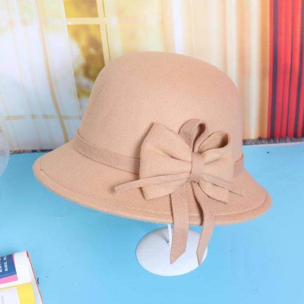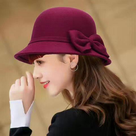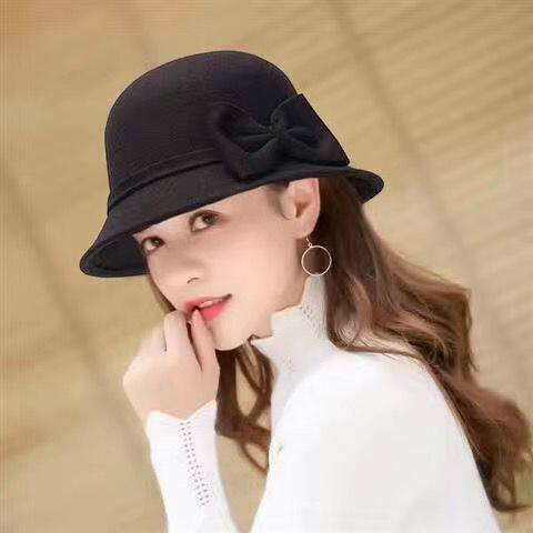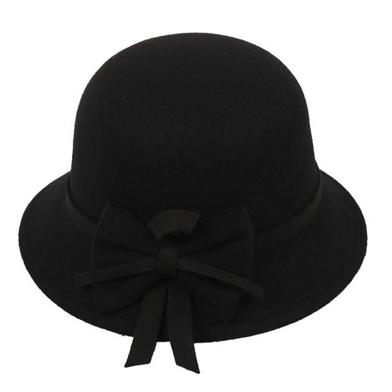 Осенняя модная элегантная шерстяная шапка с бантиком