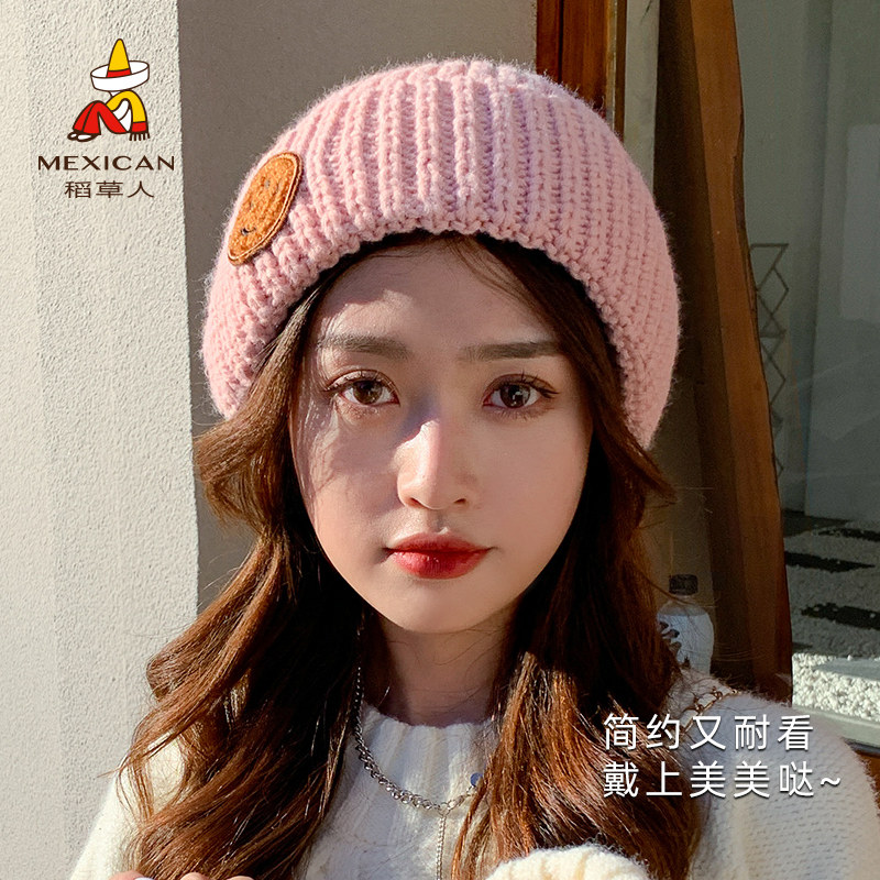 Демисезонная милая шерстяная удерживающая тепло трикотажная зимняя шапка для школьников, популярно в интернете