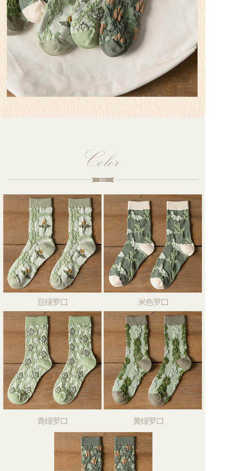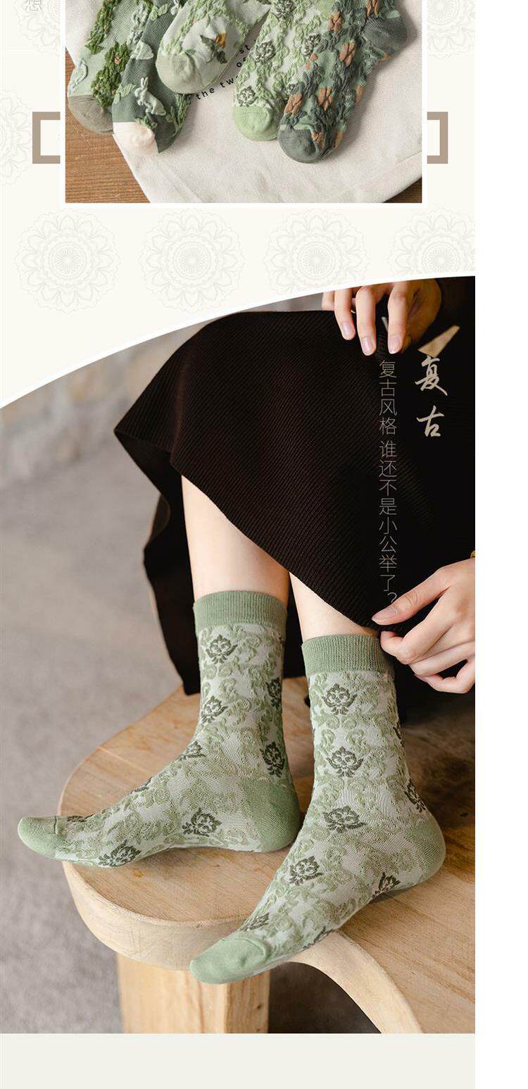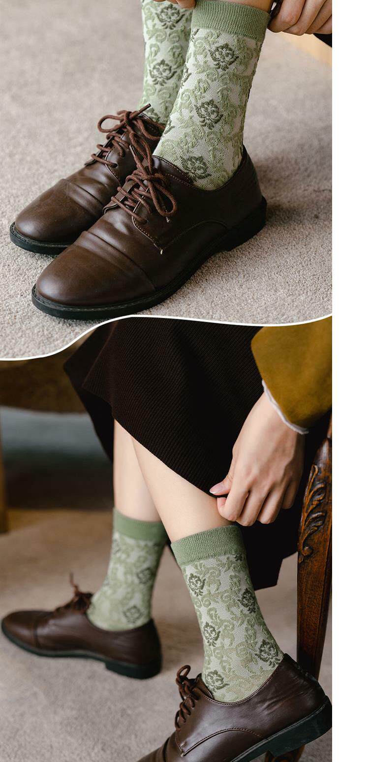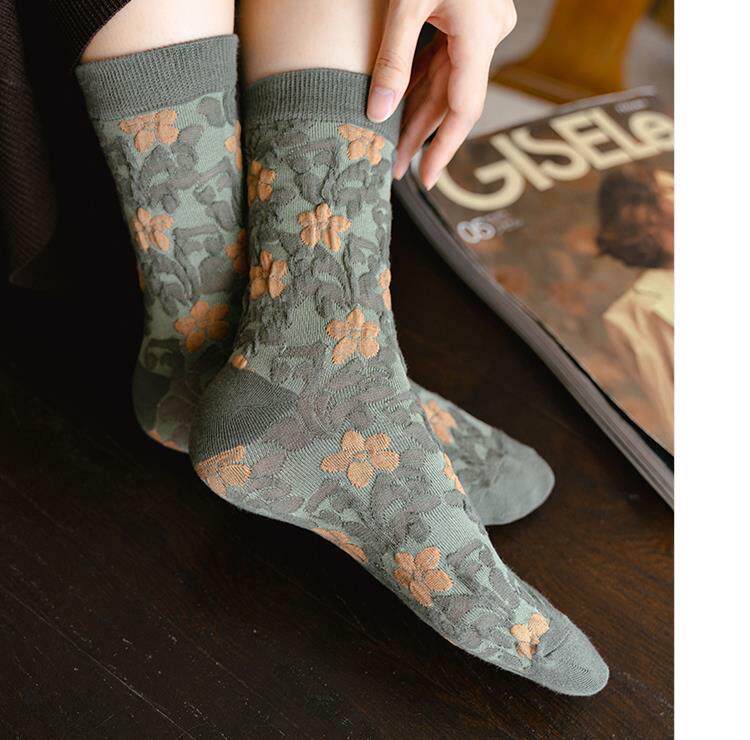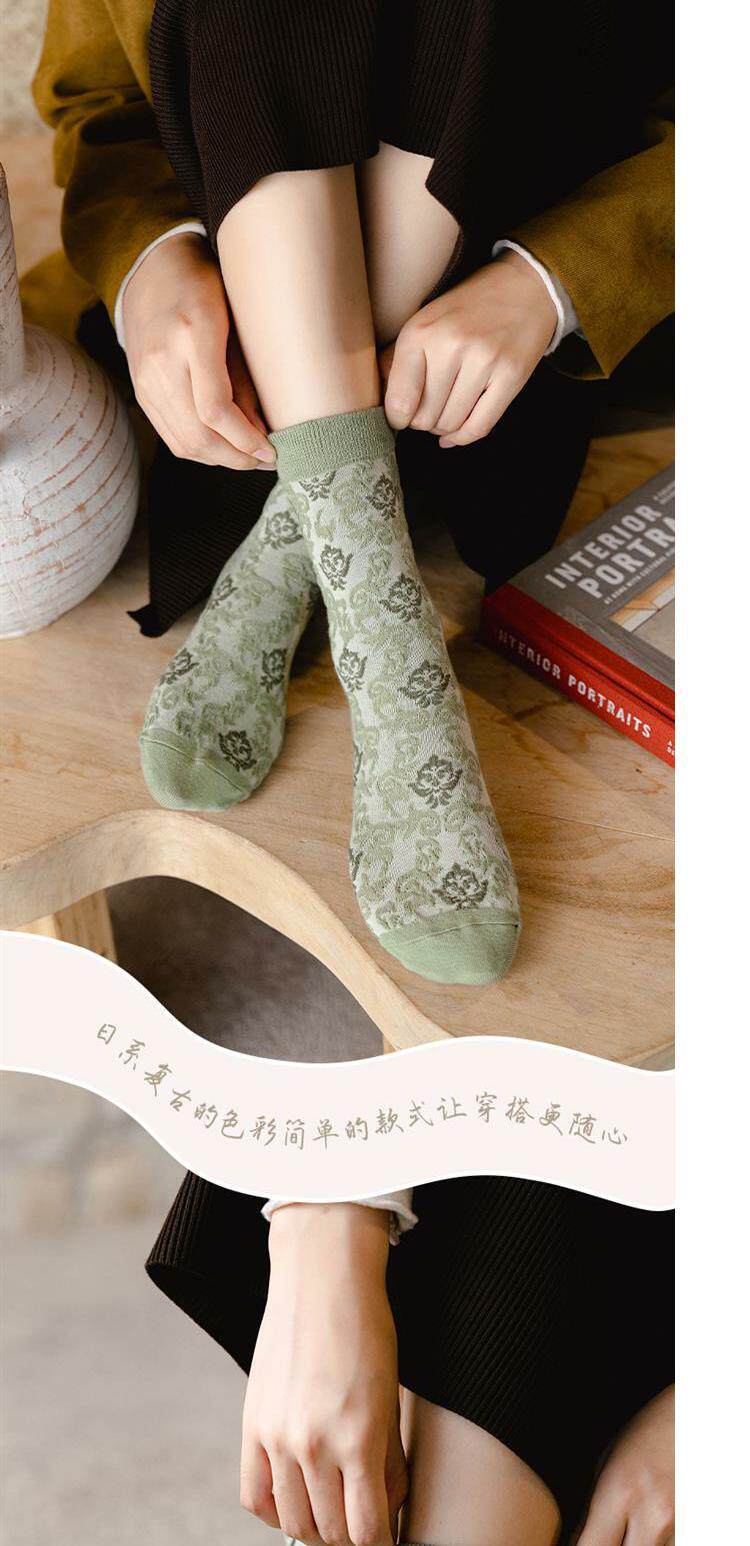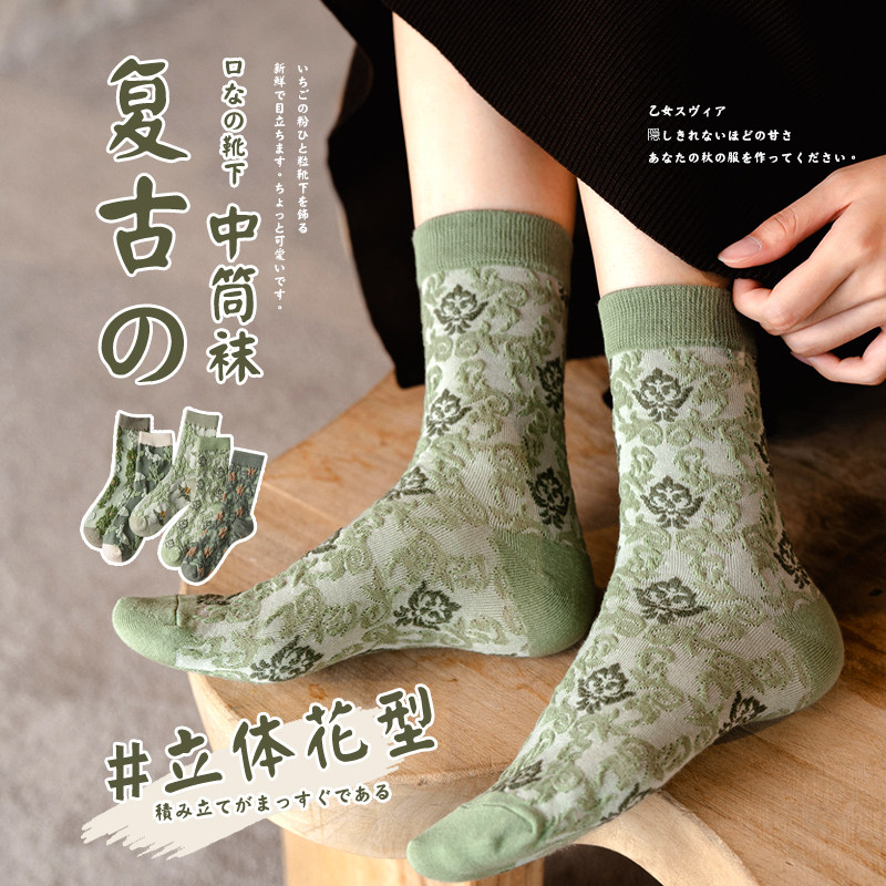 Tide, зеленые носки, тонкие японские ретро осенние гольфы, средней длины, цветочный принт