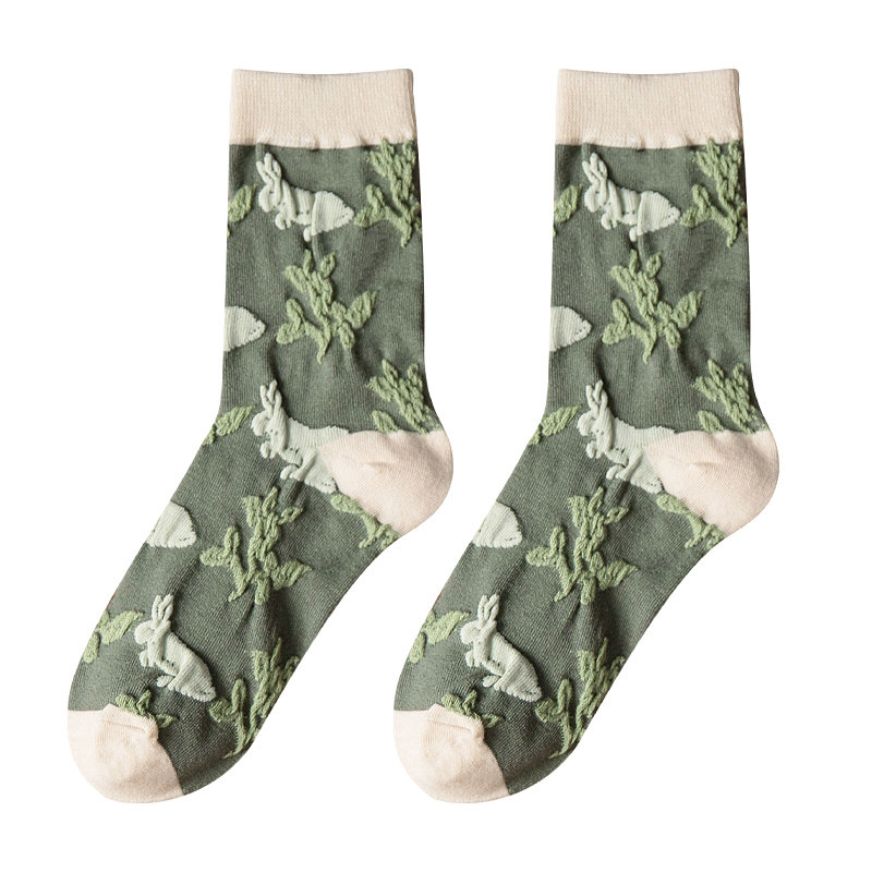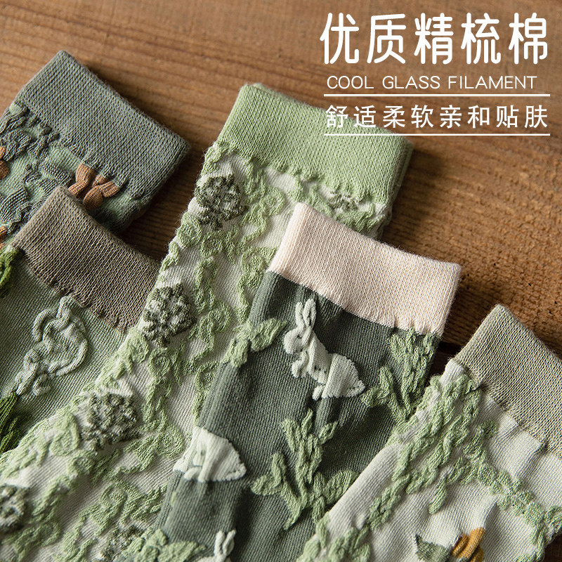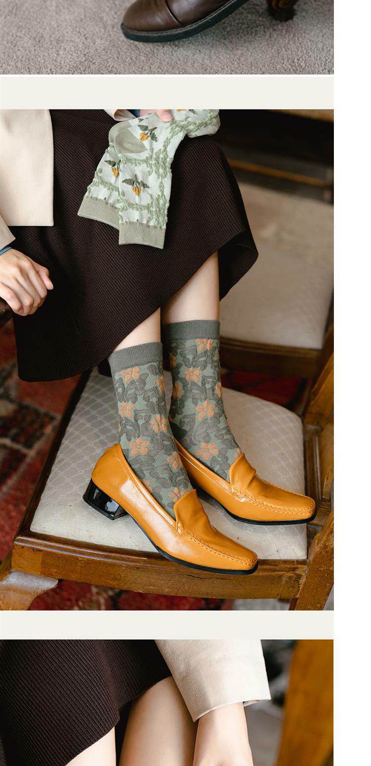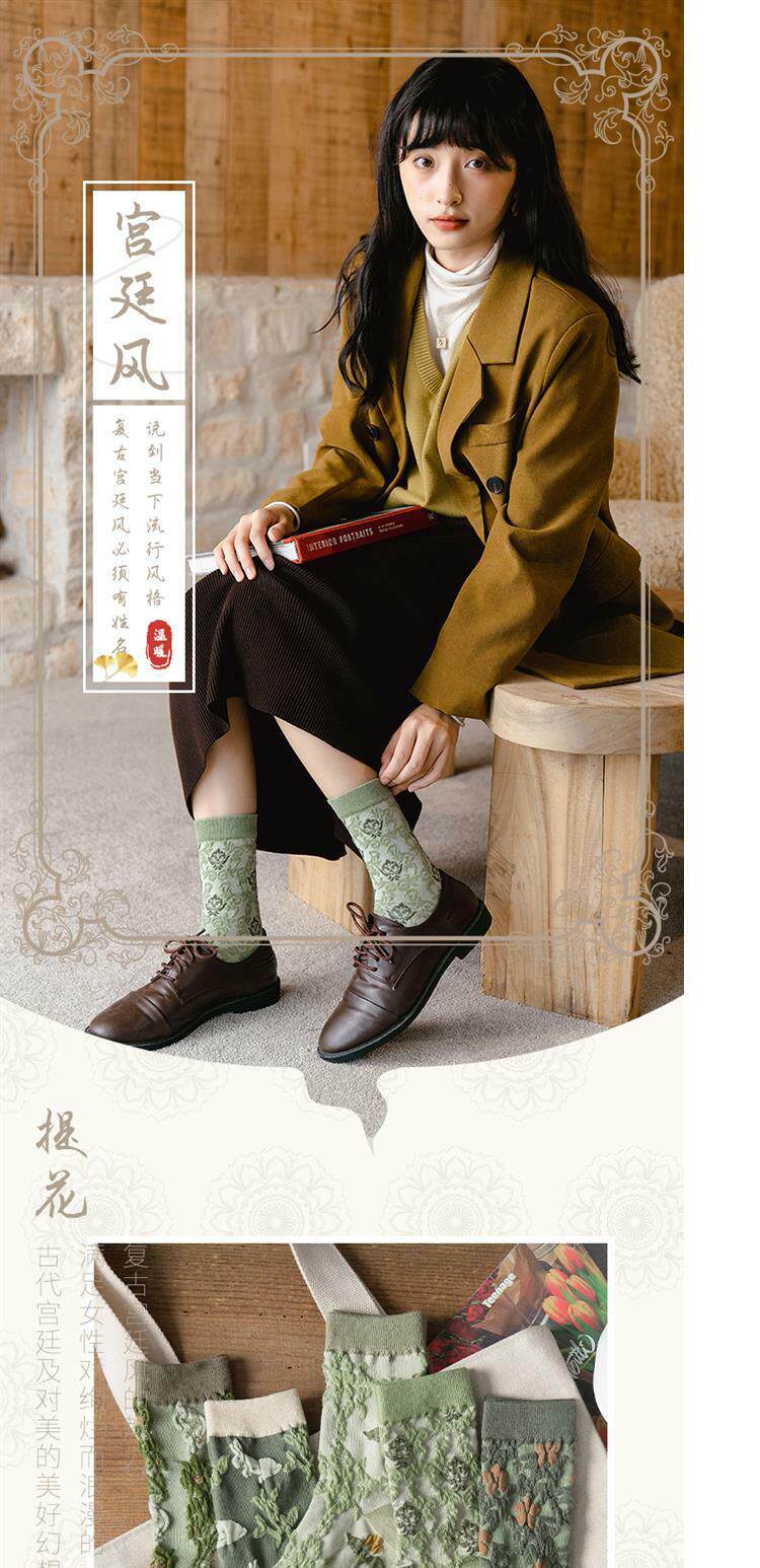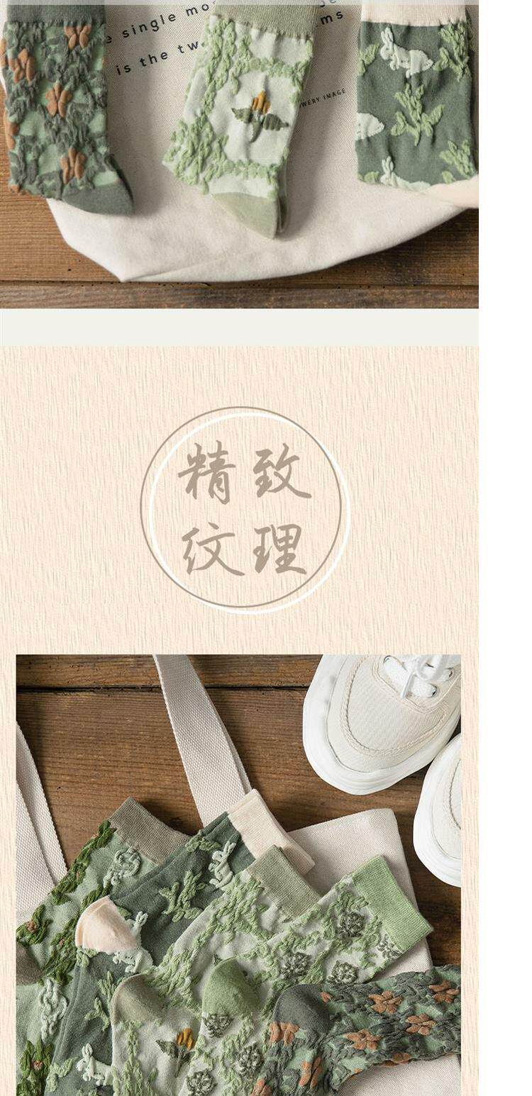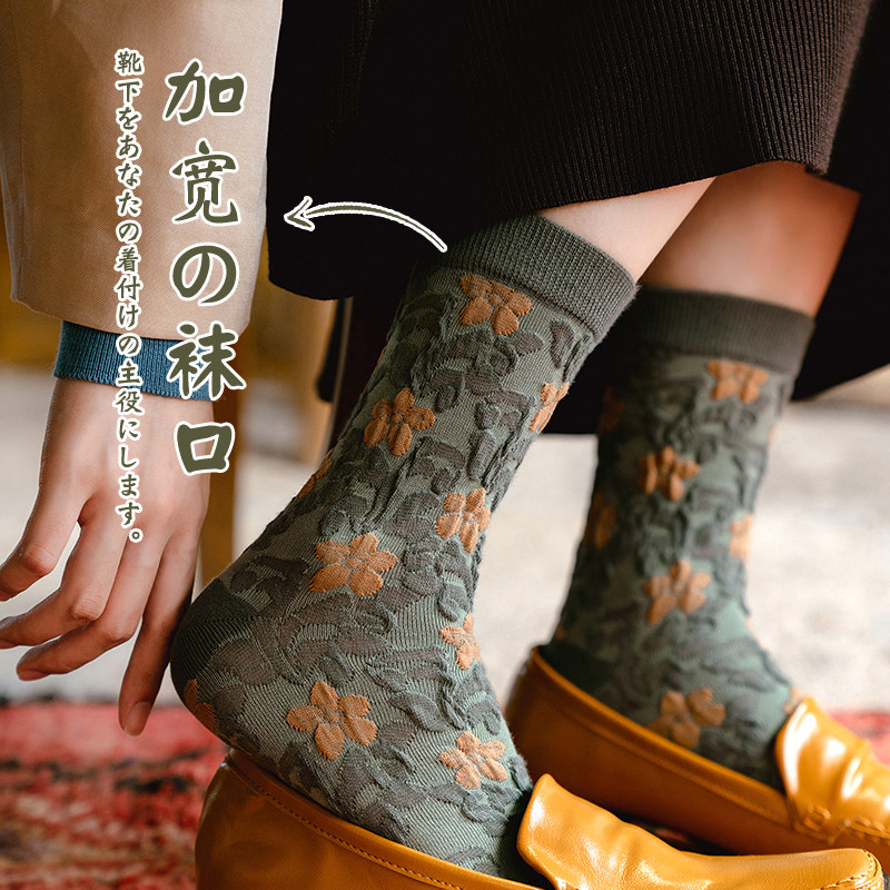 Tide, зеленые носки, тонкие японские ретро осенние гольфы, средней длины, цветочный принт