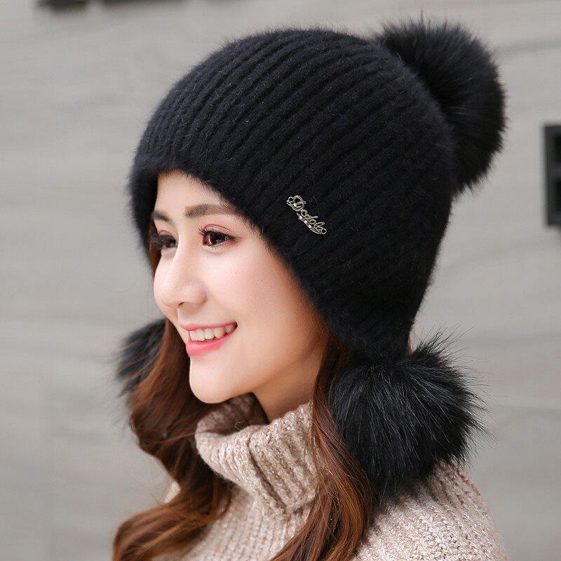Трикотажная милая удерживающая тепло зимняя бархатная шапка, увеличенная толщина, в корейском стиле