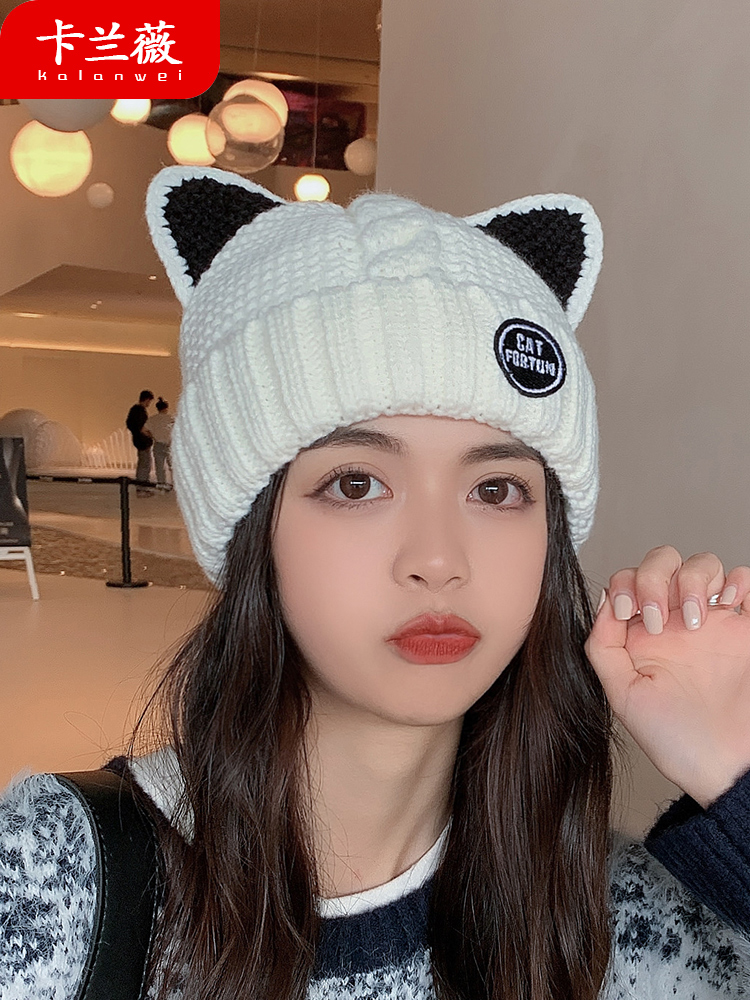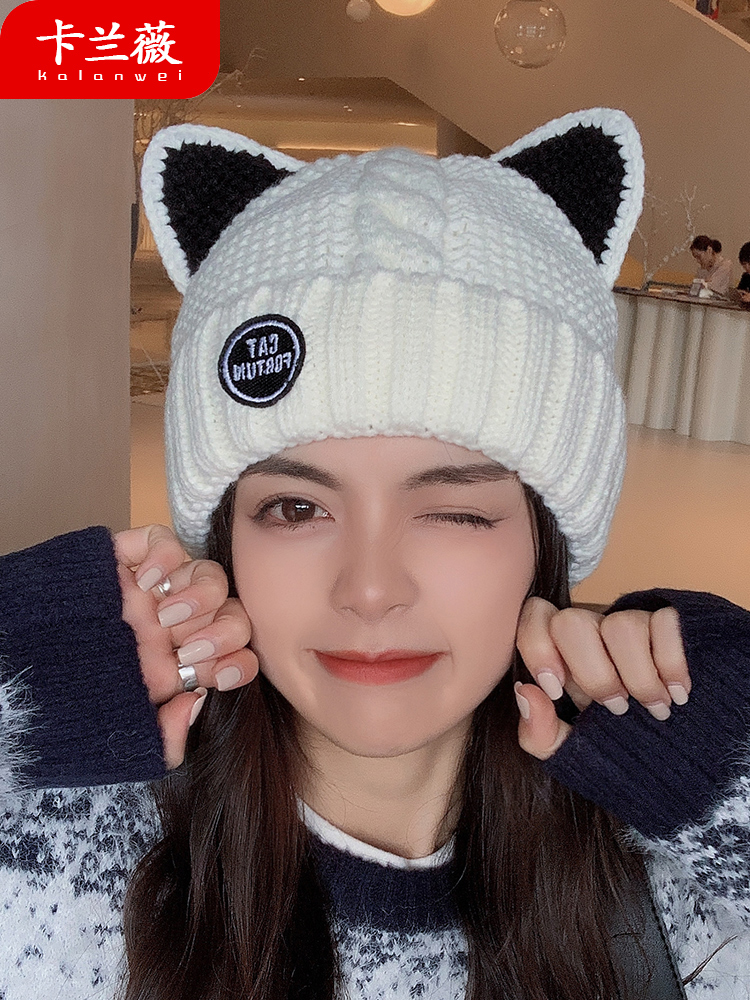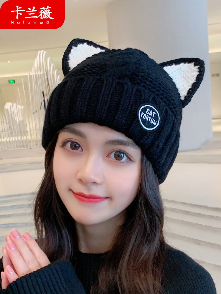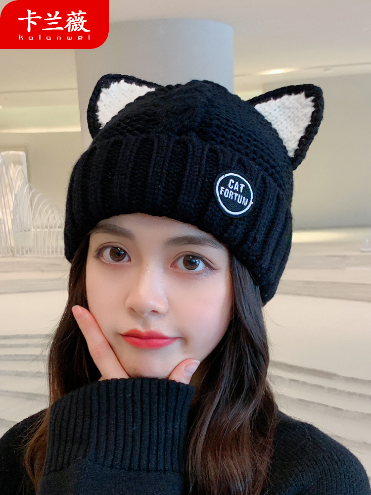 Трикотажная шерстяная демисезонная флисовая удерживающая тепло японская милая шапка, в корейском стиле