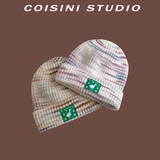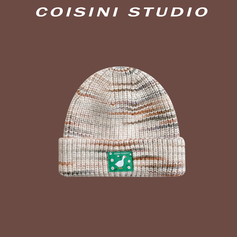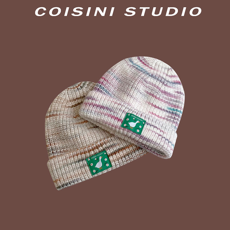 Трикотажная японская милая шерстяная демисезонная удерживающая тепло вязаная шапка, градиент