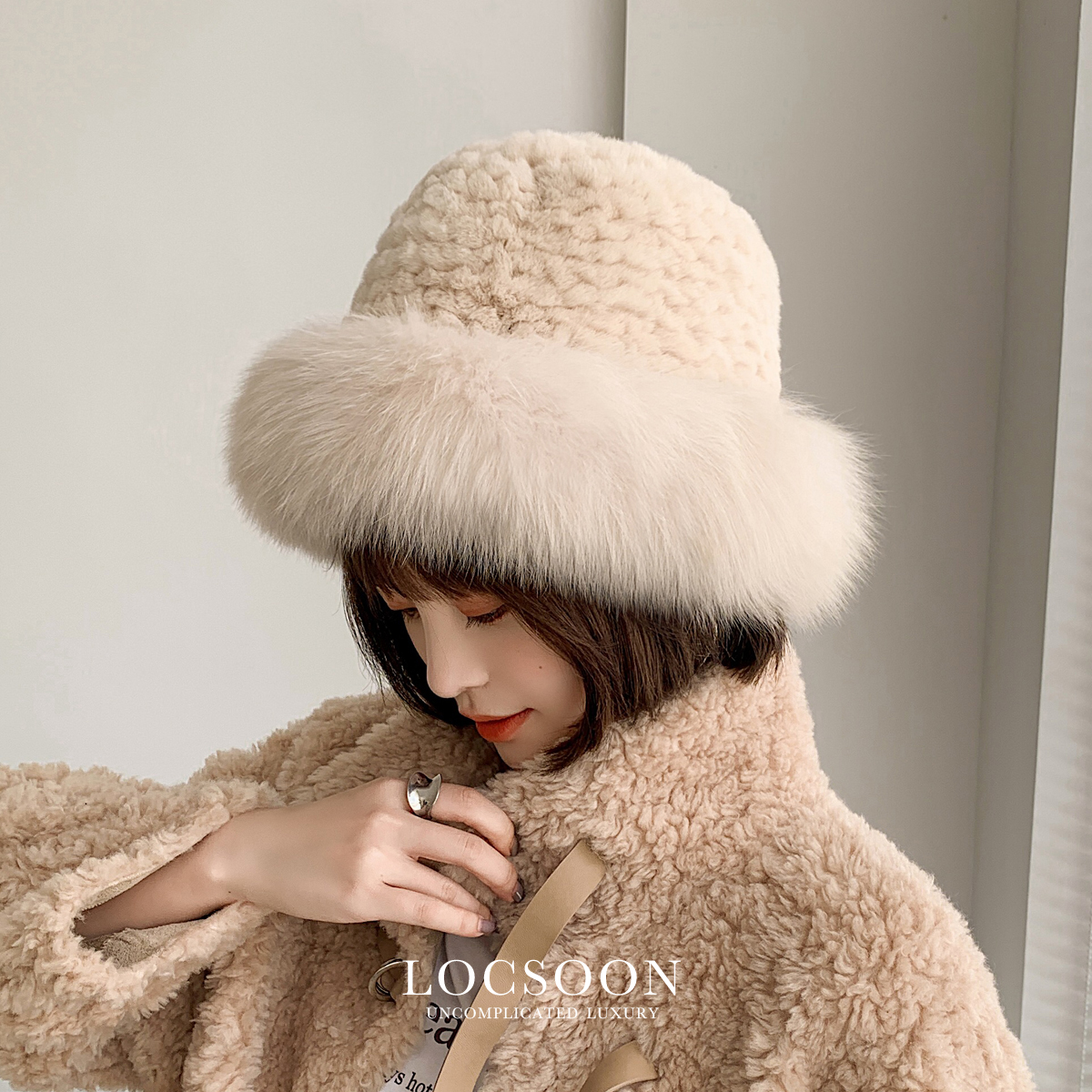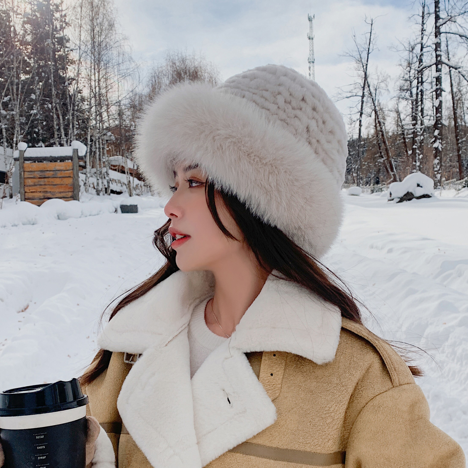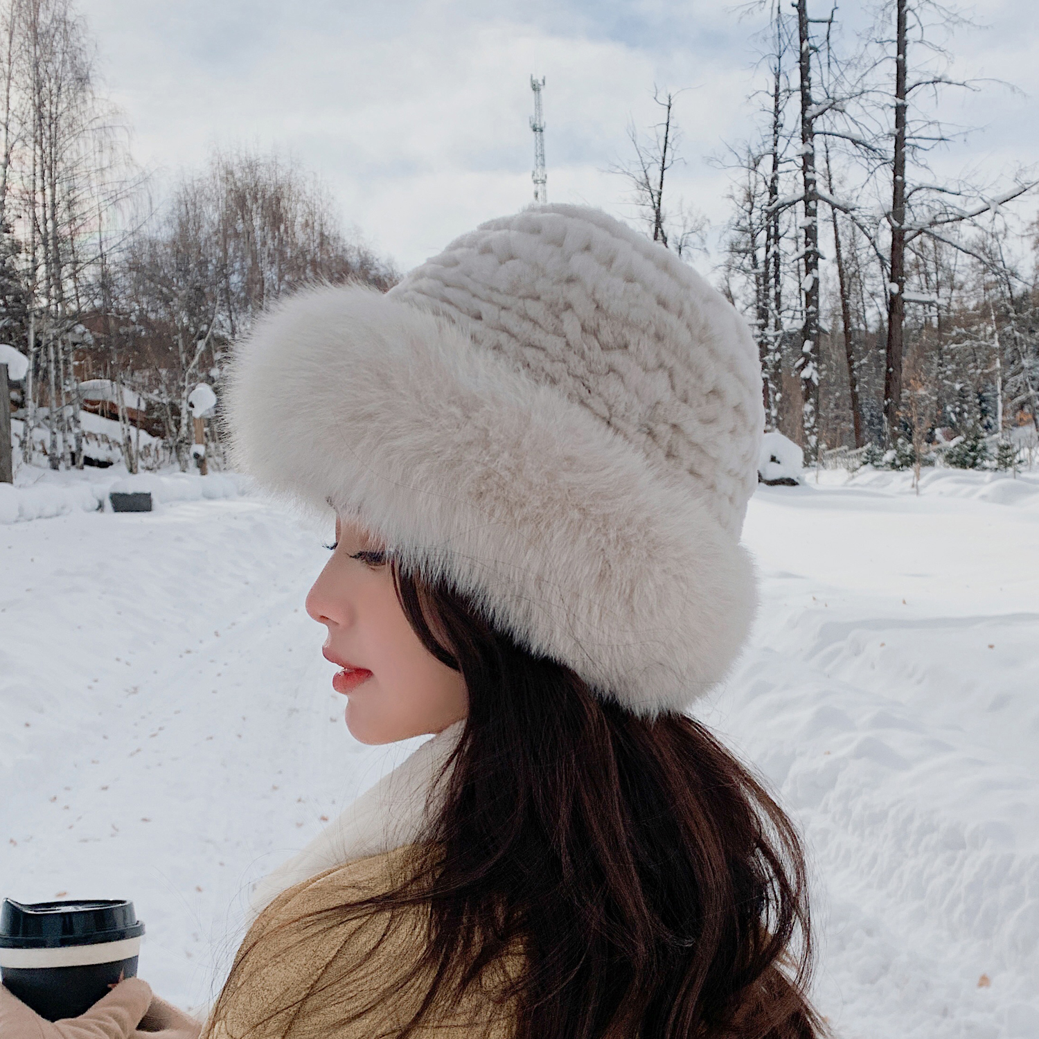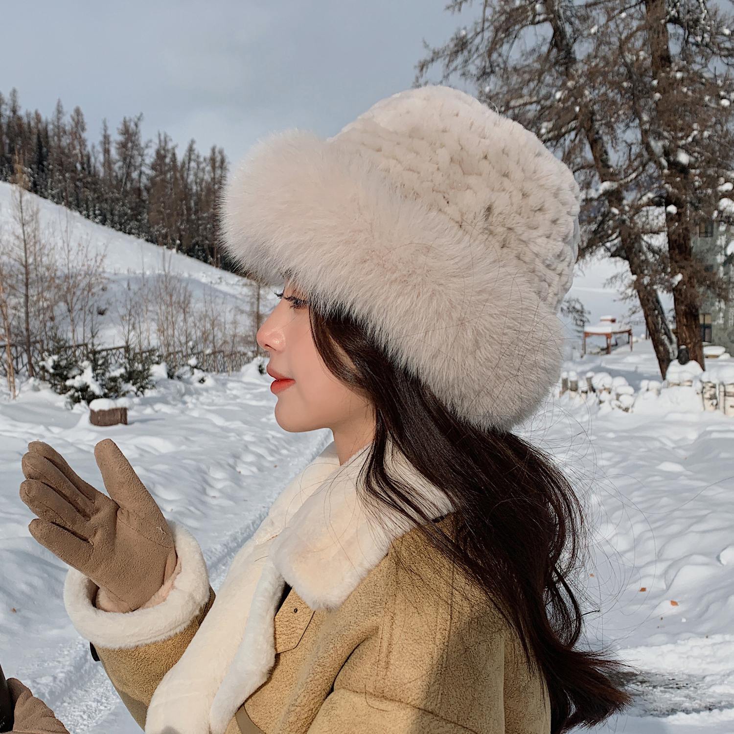 Li Su Winter Rex кролика кролика народная шляпа Fox Mao Princess Hat Женская теплое корейское ушное бассейн