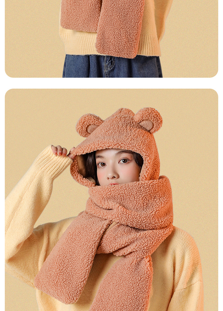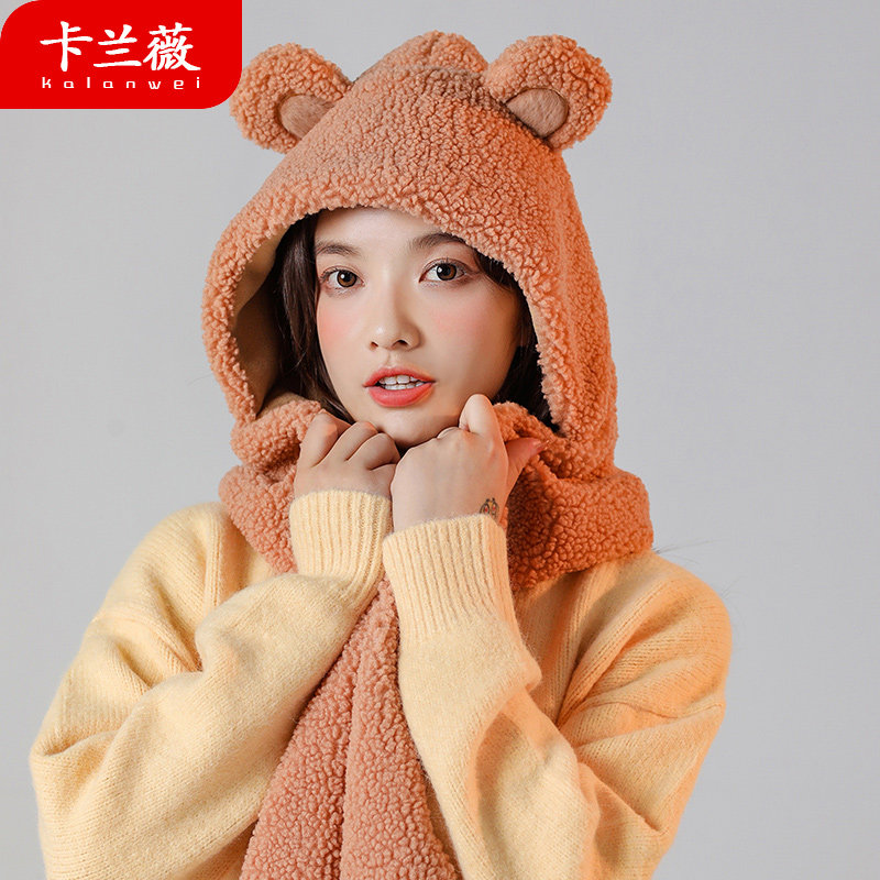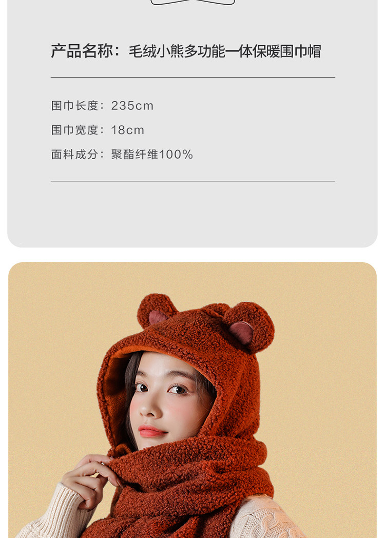 Шарф, демисезонная универсальная бархатная удерживающая тепло шапка, коллекция 2021, с медвежатами
