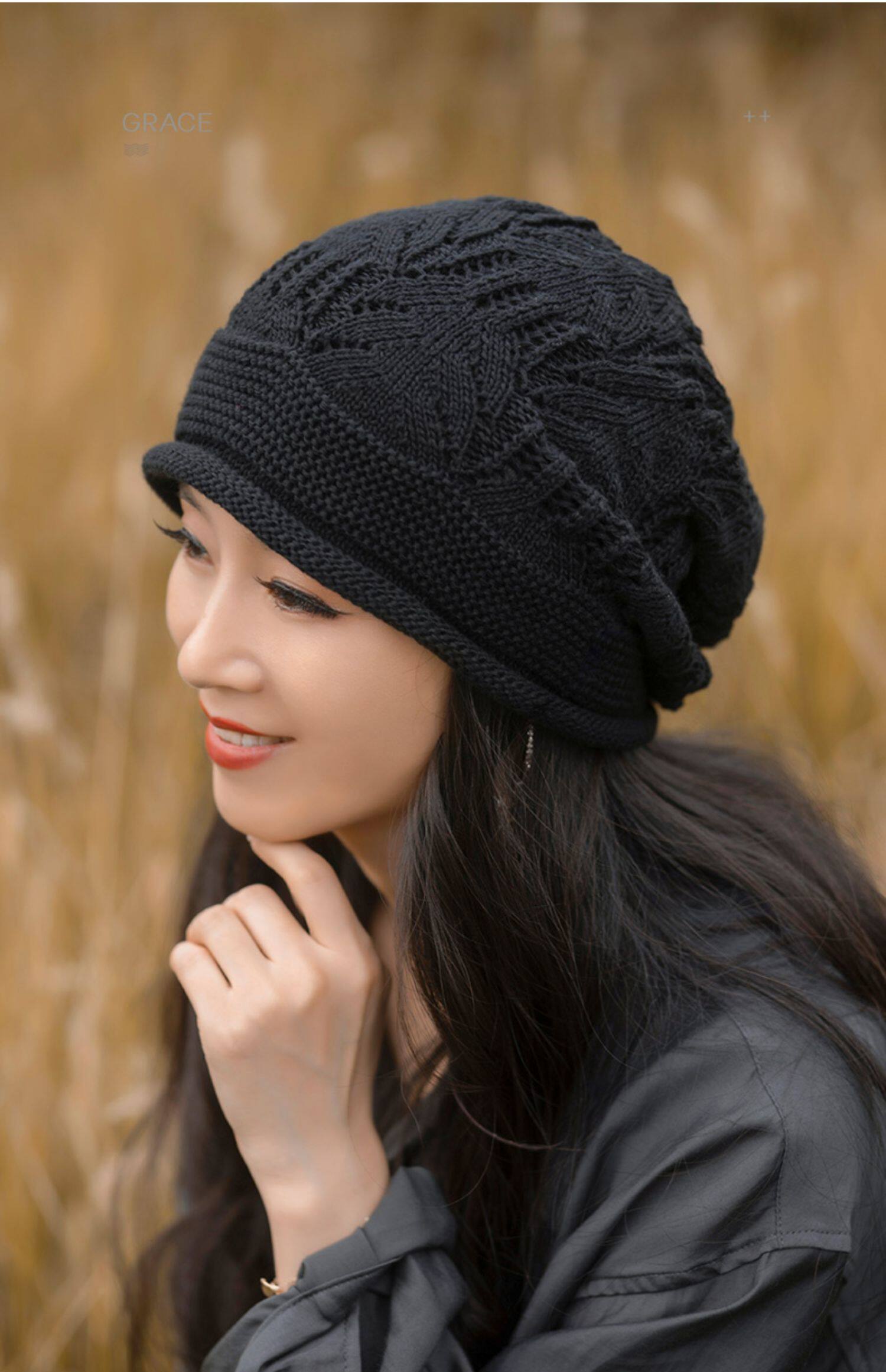 Шерстяная осенняя шапка, модный трикотажный платок