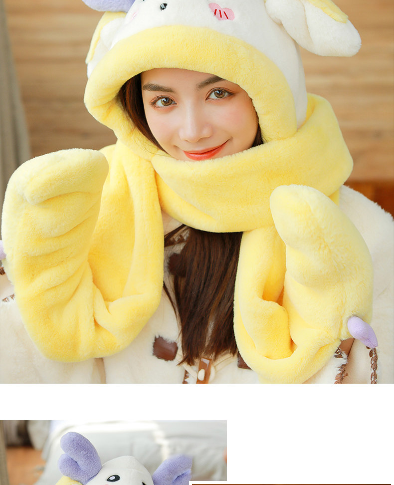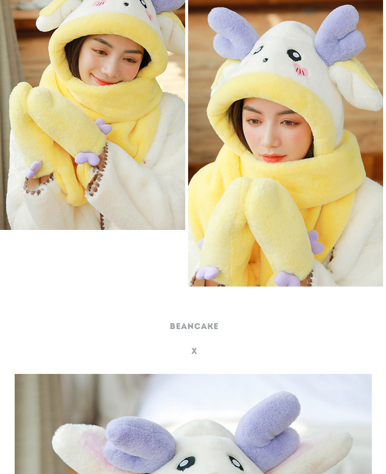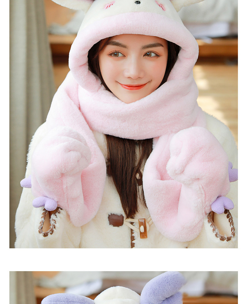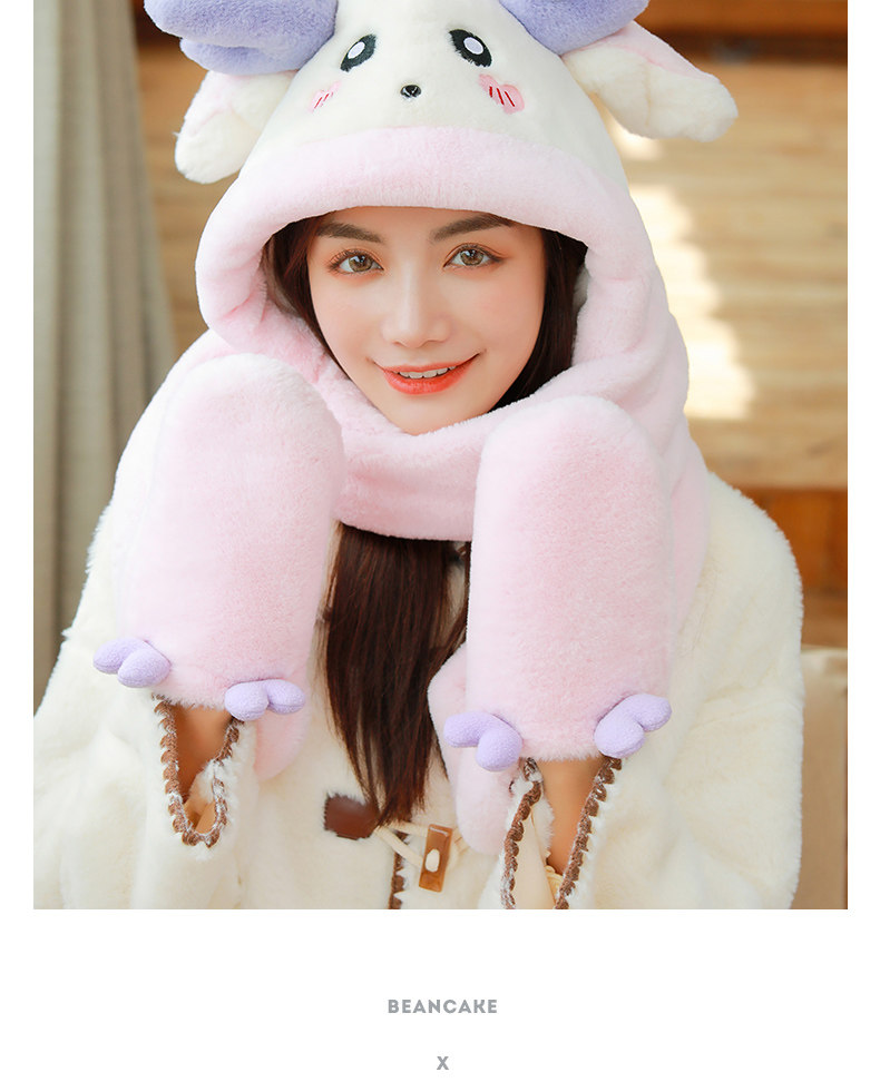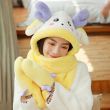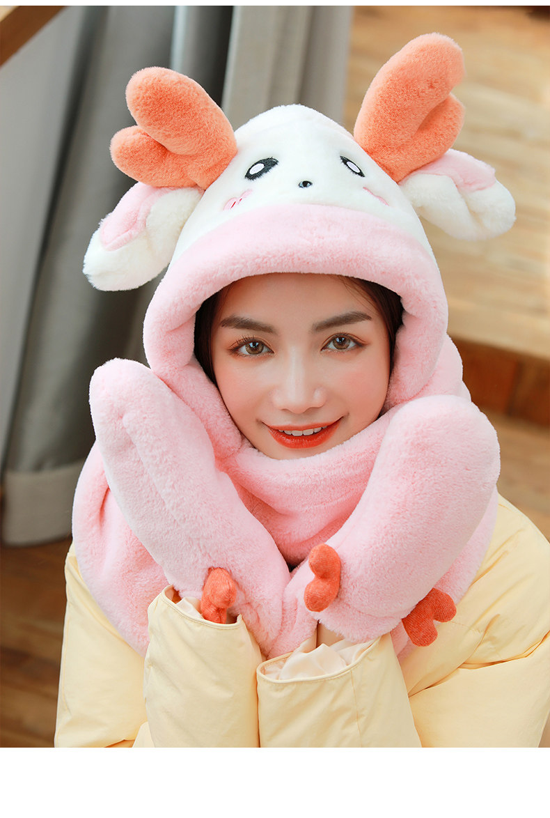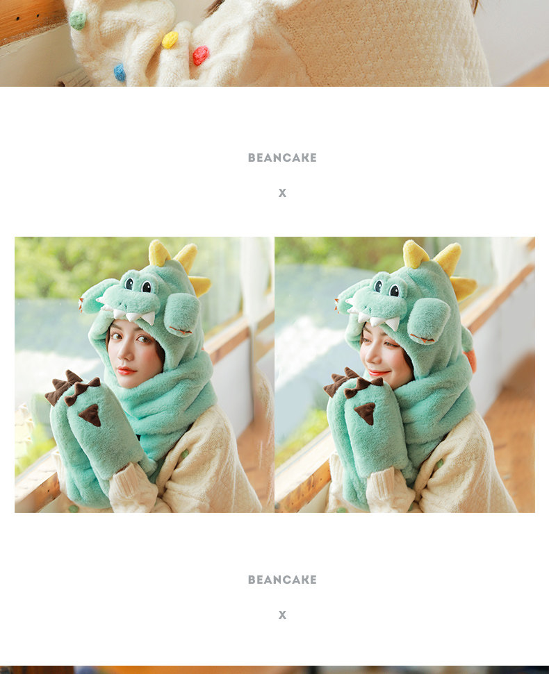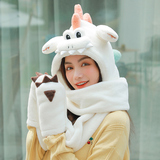 Динозавр, шапка, демисезонный шарф, удерживающие тепло милые плюшевые мультяшные перчатки, комплект, в корейском стиле, 3 предмета