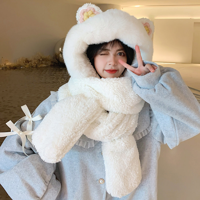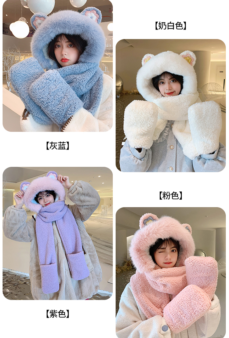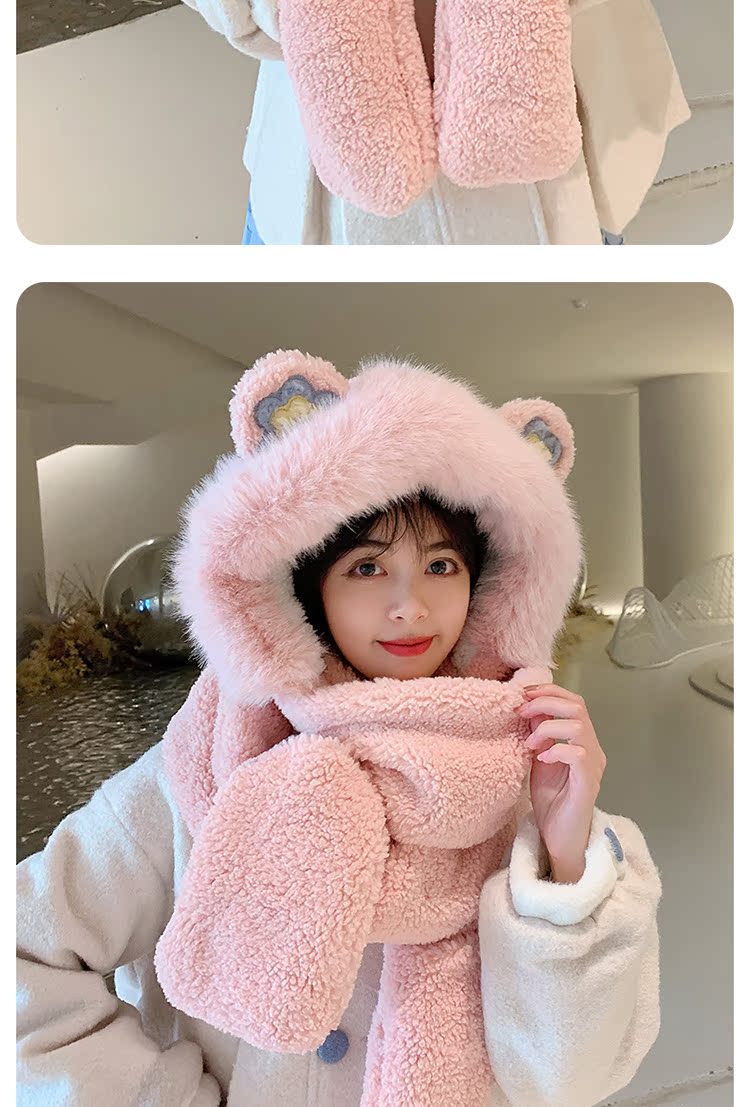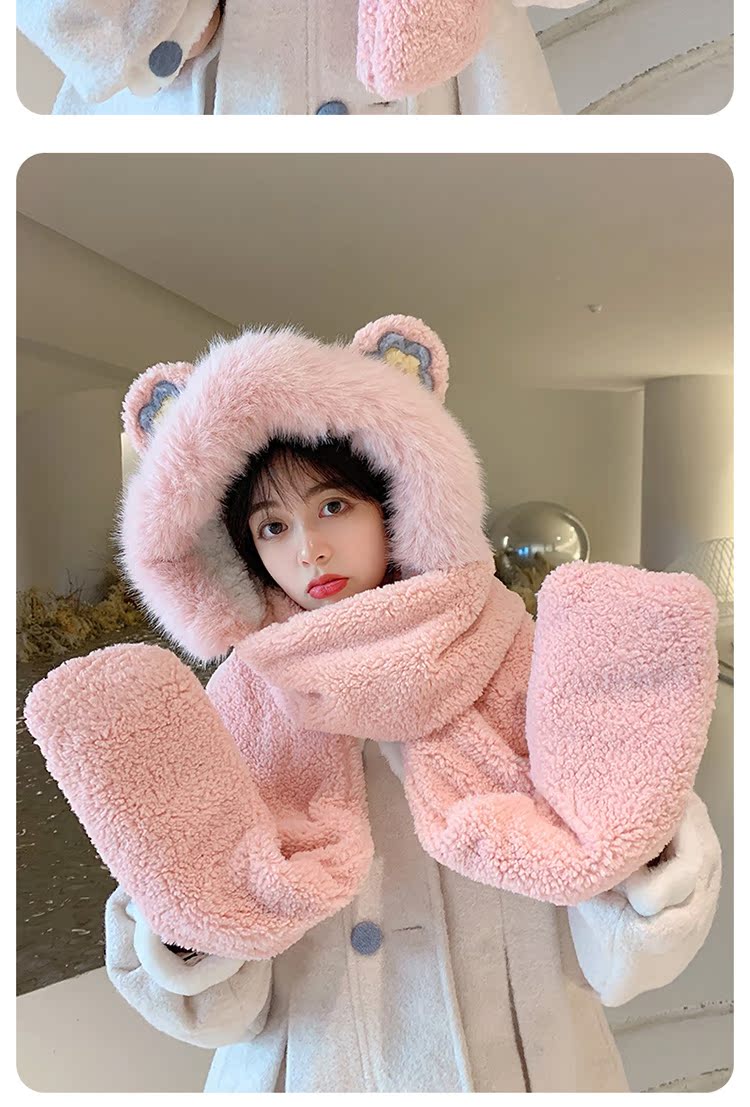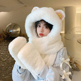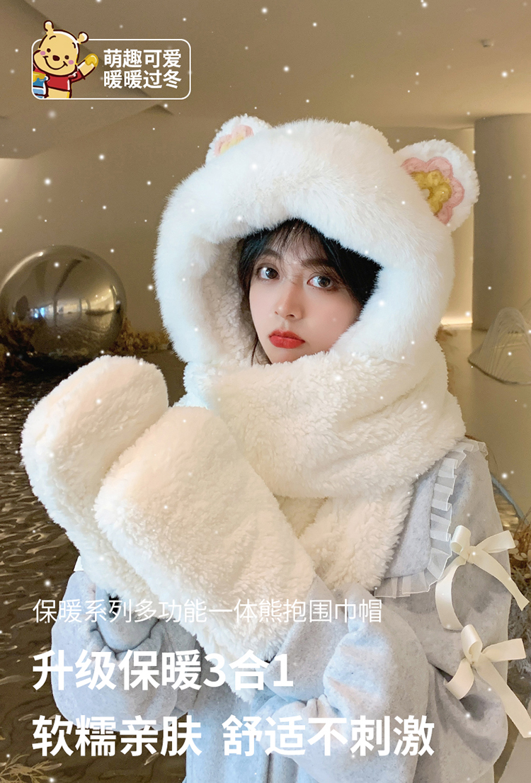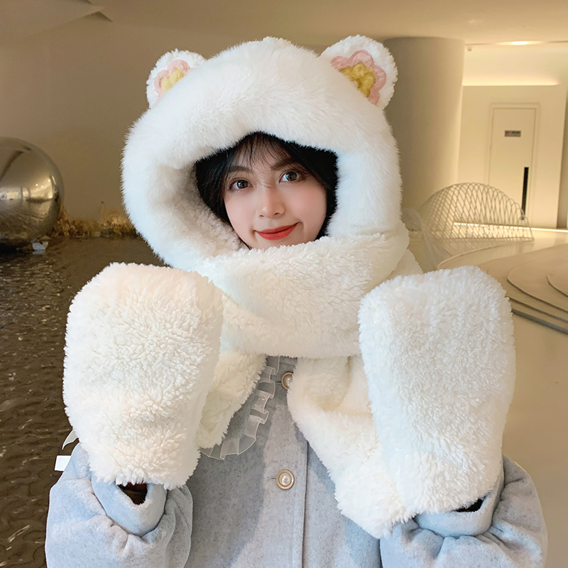 Шапка, шарф, зимние перчатки, универсальный зимний милый бархатный комплект, с медвежатами, коллекция 2021, плюшевая, 3 предмета