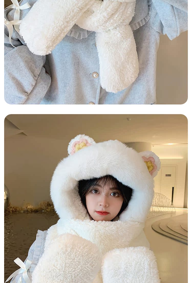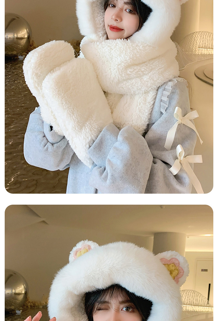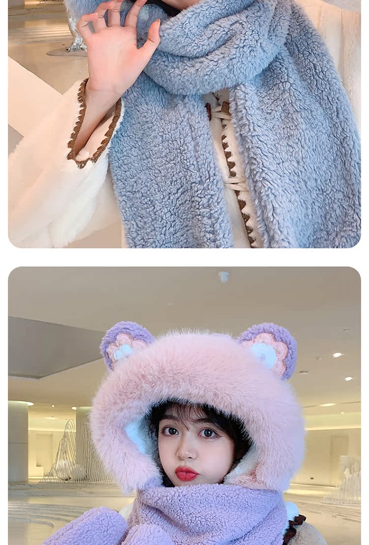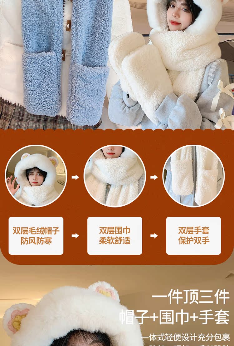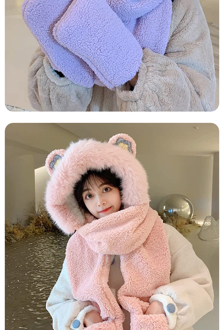 Шапка, шарф, зимние перчатки, универсальный зимний милый бархатный комплект, с медвежатами, коллекция 2021, плюшевая, 3 предмета