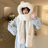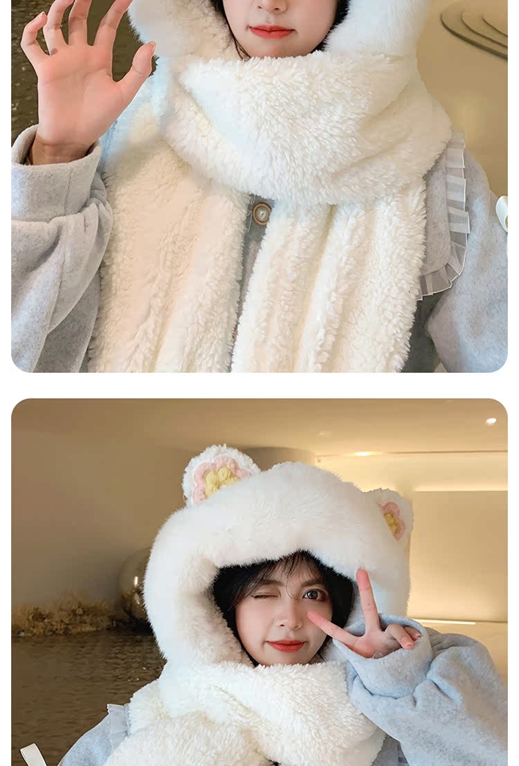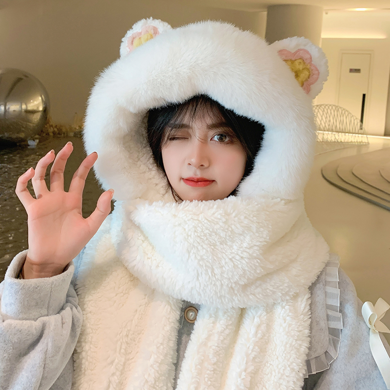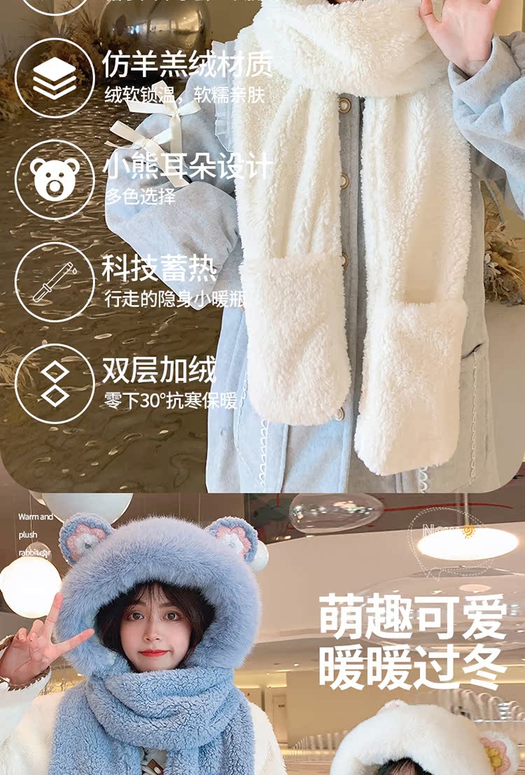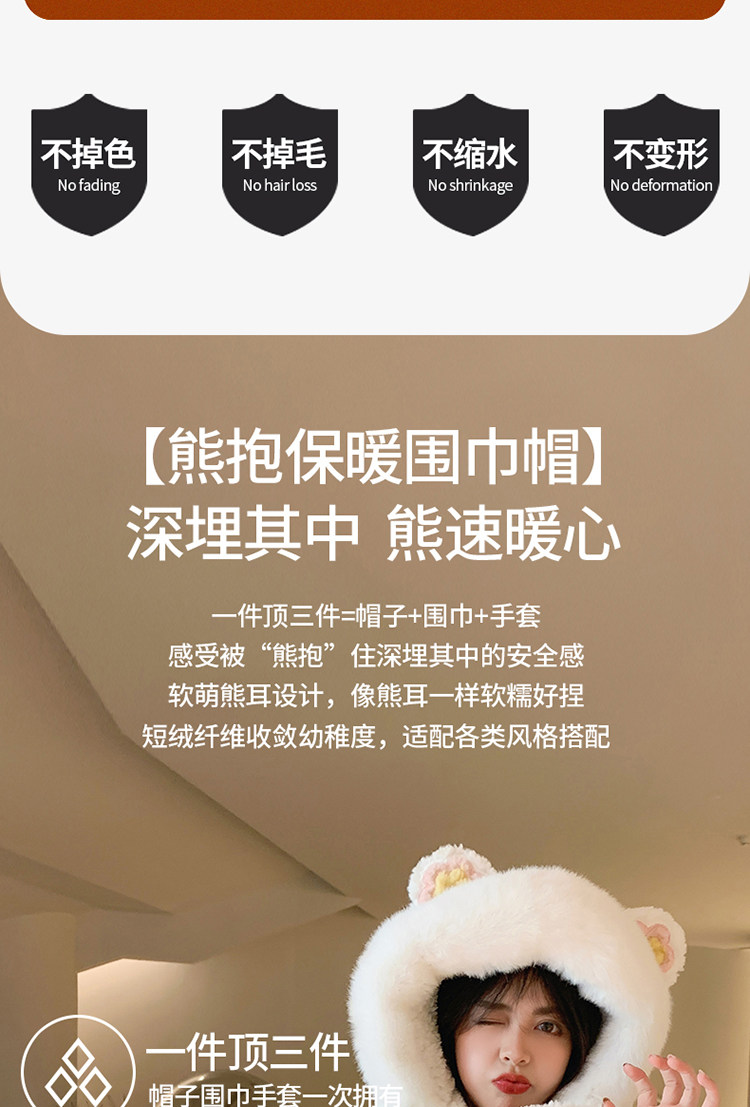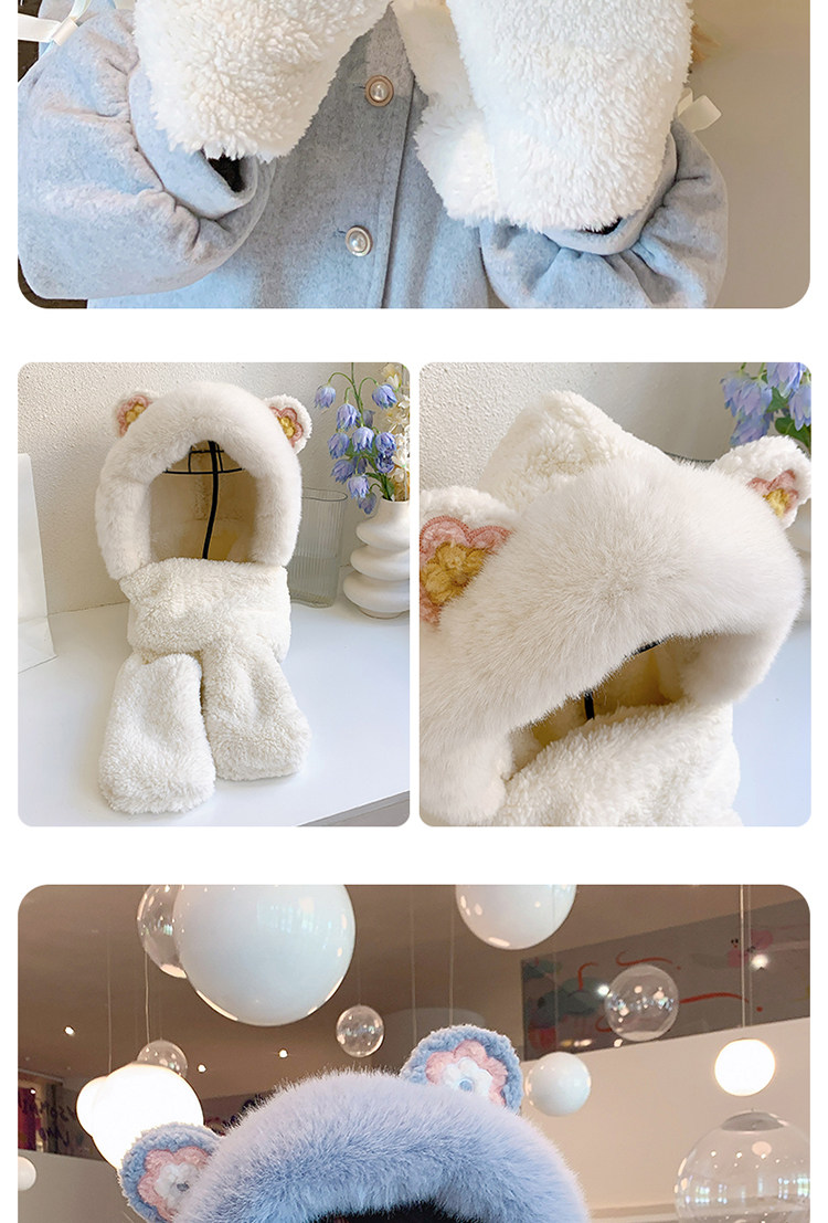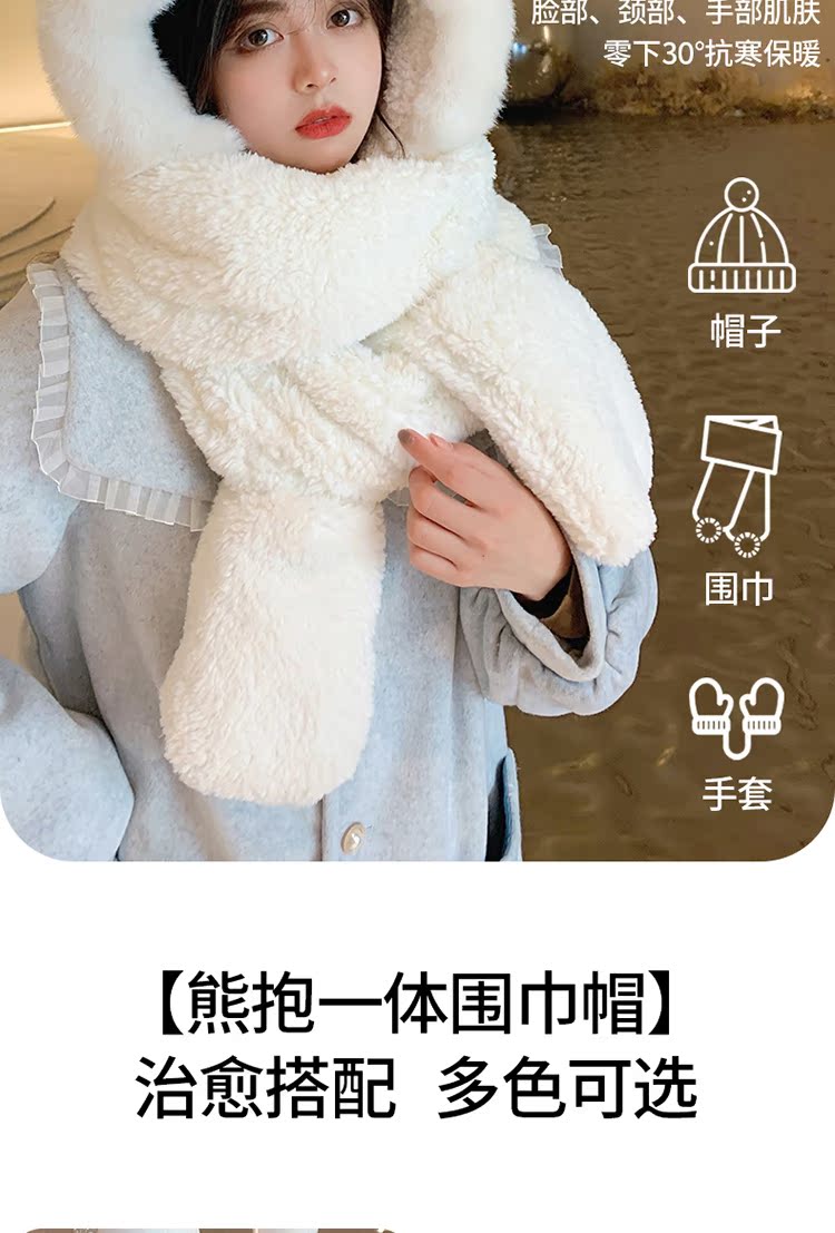 Шапка, шарф, зимние перчатки, универсальный зимний милый бархатный комплект, с медвежатами, коллекция 2021, плюшевая, 3 предмета