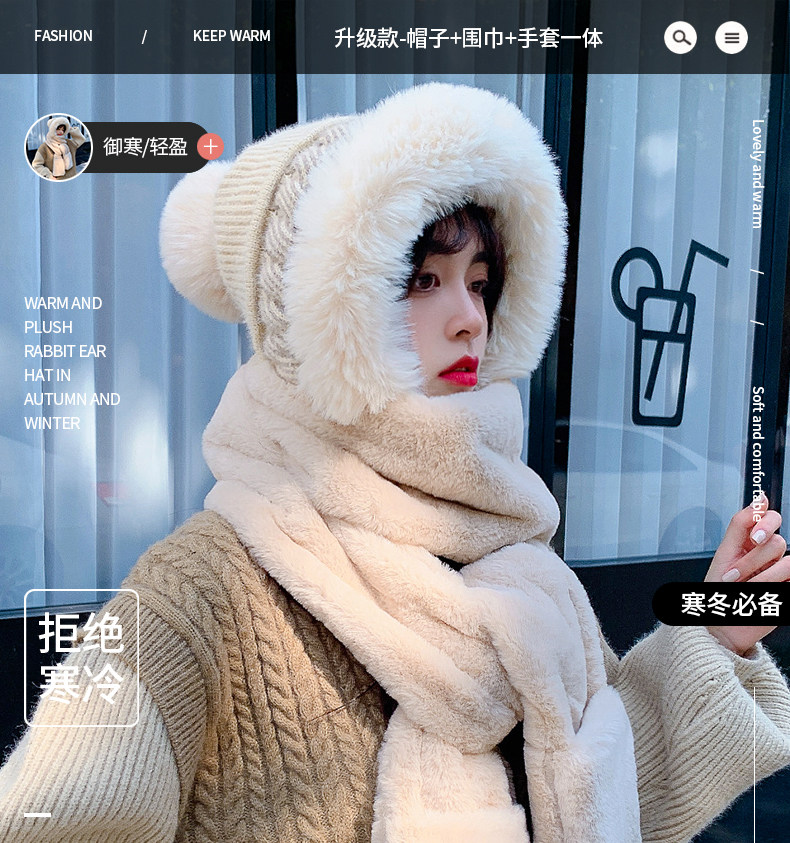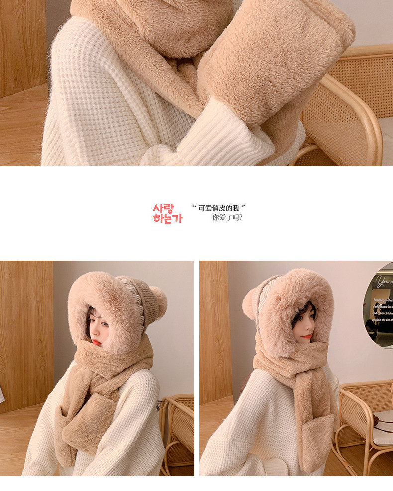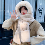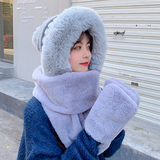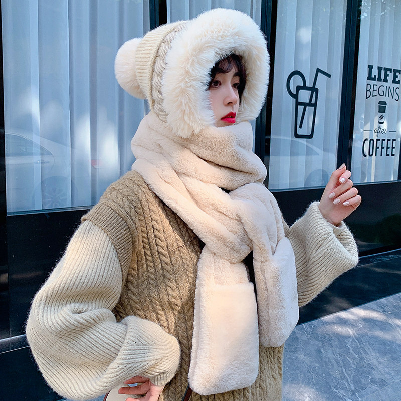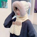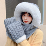 Шерстяная шапка, демисезонный шарф, милый зимний модный универсальный удерживающий тепло комплект, в корейском стиле, 3 предмета