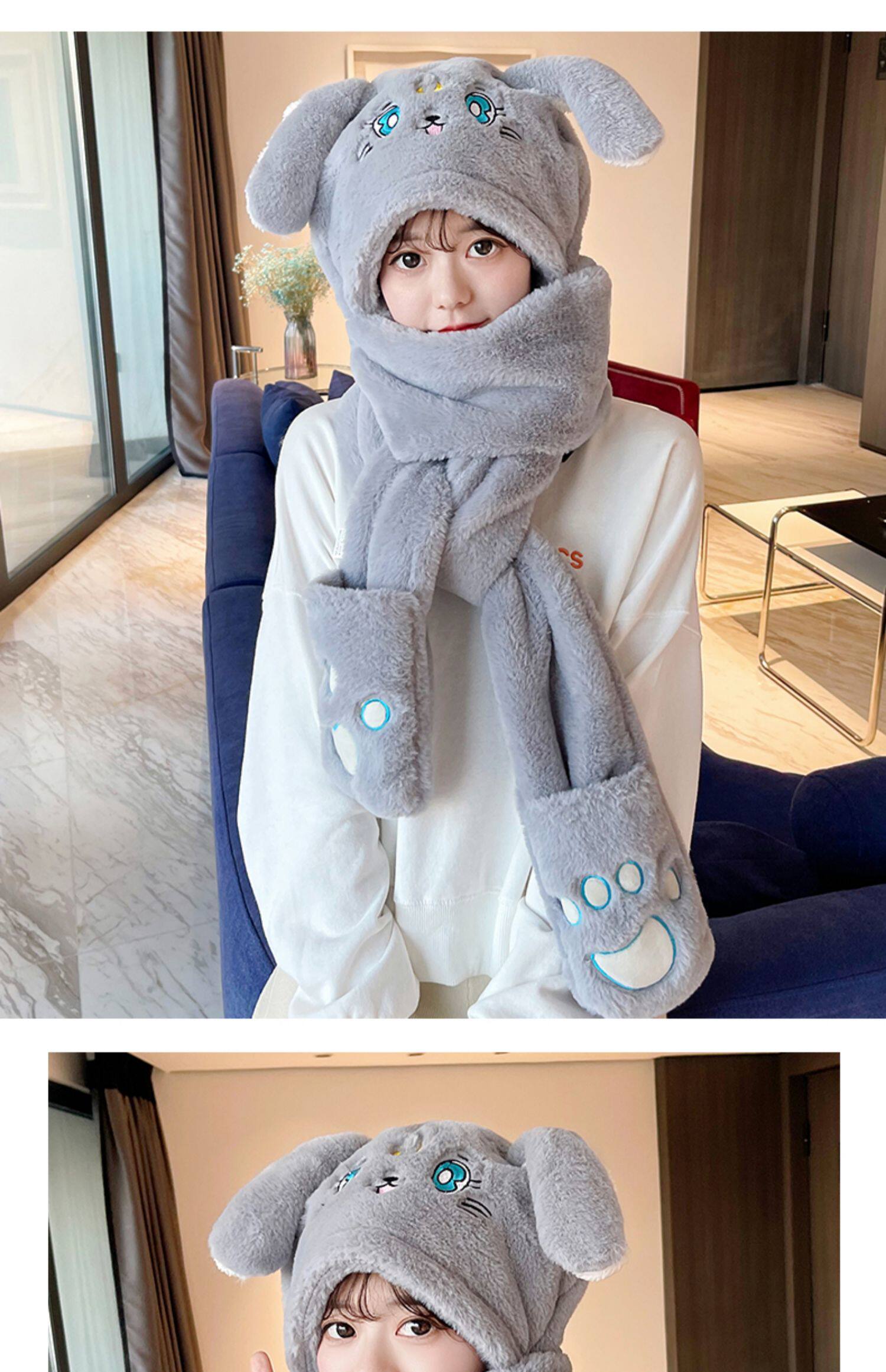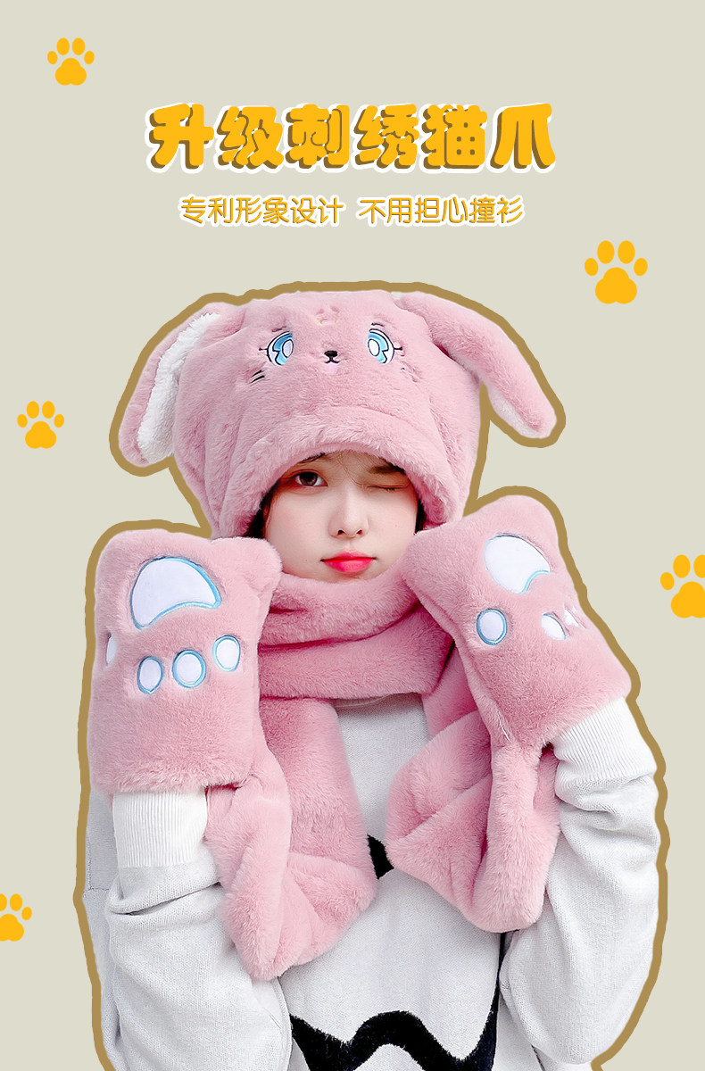 Кролик, зимняя шапка, милый удерживающий тепло детский шарф для школьников, комплект, 3 предмета
