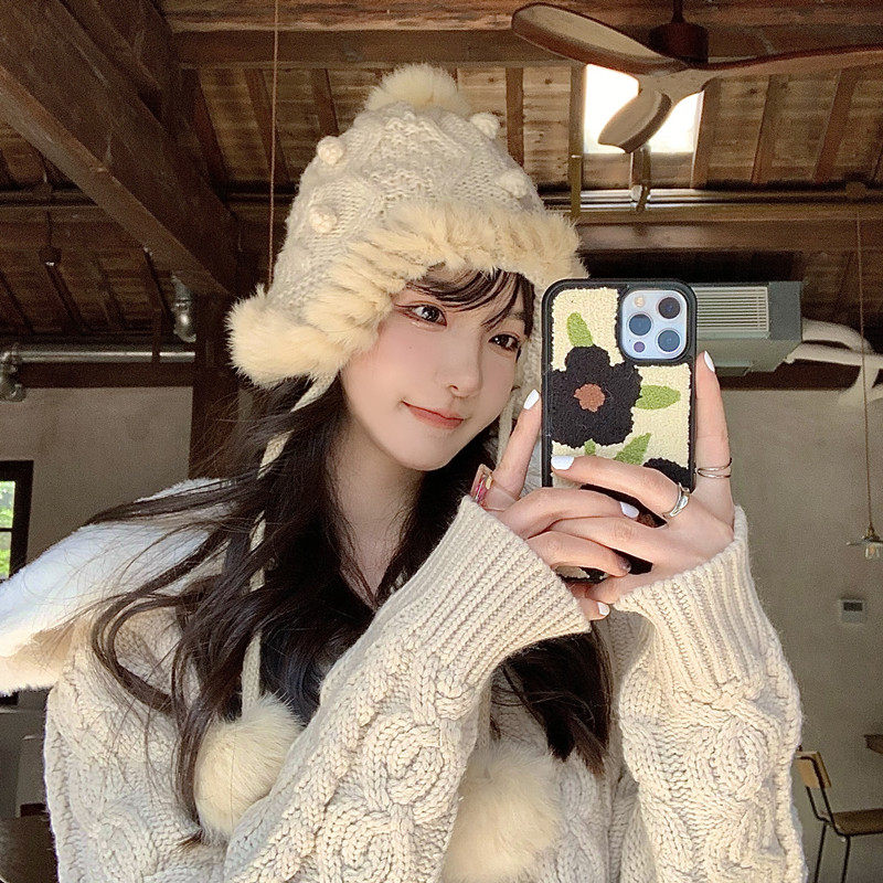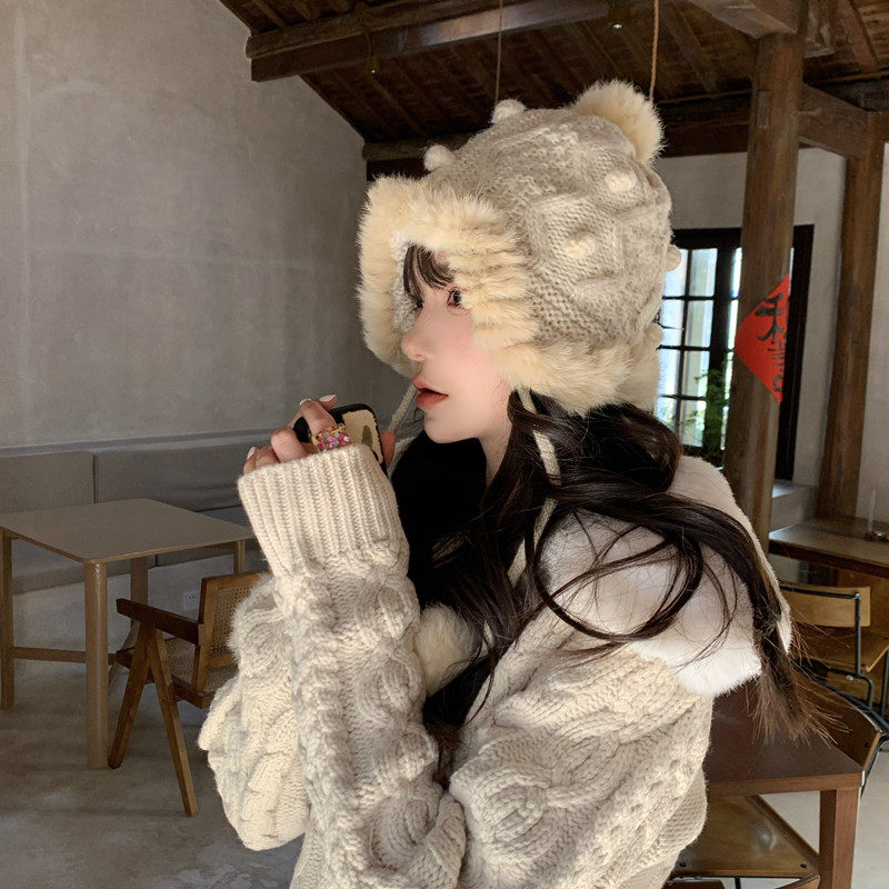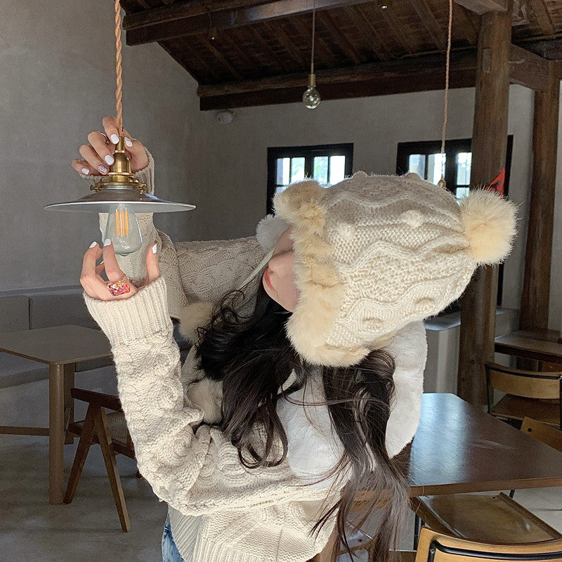 Демисезонная шерстяная милая зимняя удерживающая тепло вязаная шапка, в корейском стиле