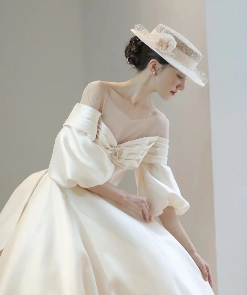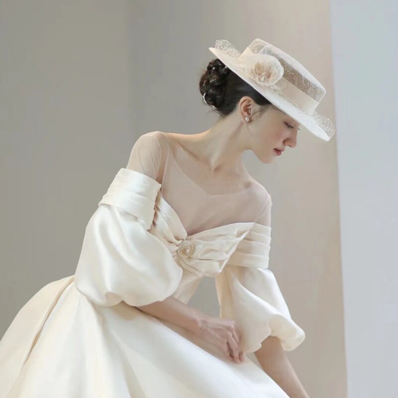 Ретро кружевное белое ципао для невесты, свадебное платье, шапка, аксессуар для волос, французский стиль