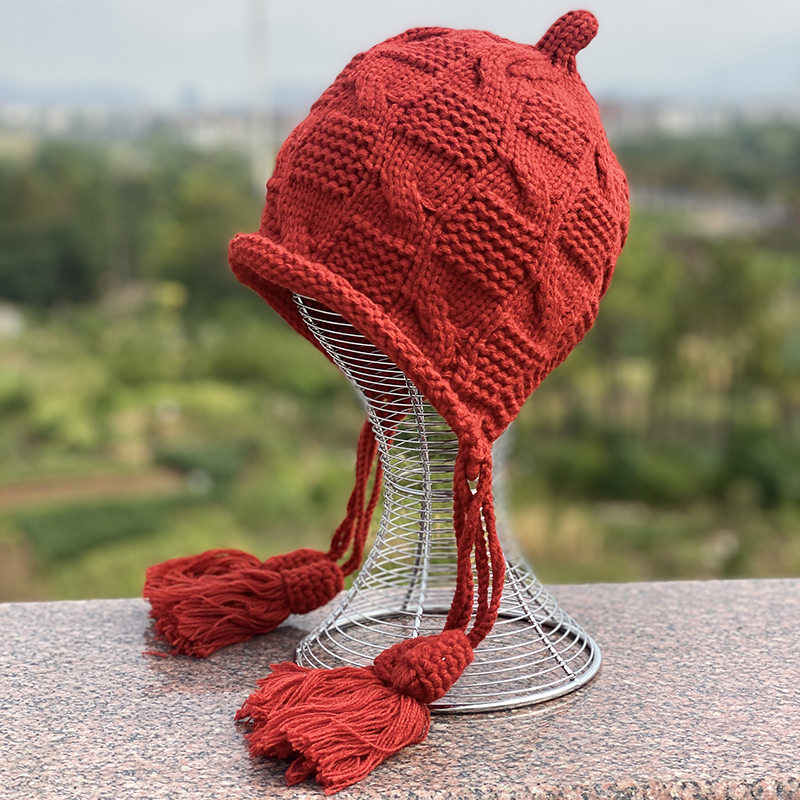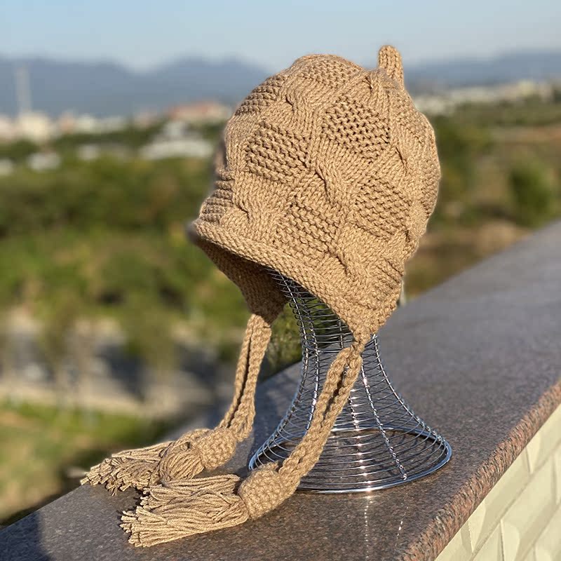 Японская универсальная шерстяная подвеска для отдыха с кисточками, демисезонная удерживающая тепло вязаная шапка ручной работы