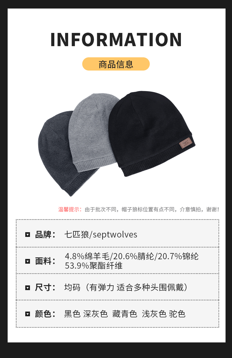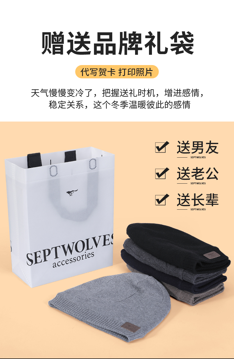 Septwolves, зимняя модная удерживающая тепло трикотажная шерстяная демисезонная универсальная шапка