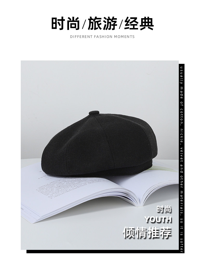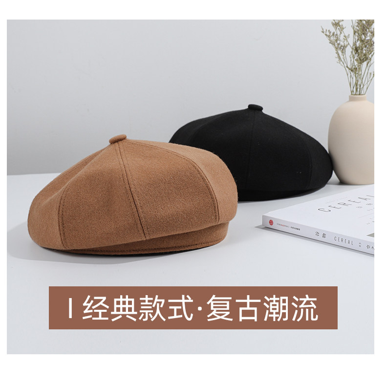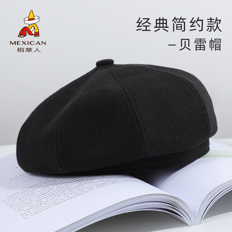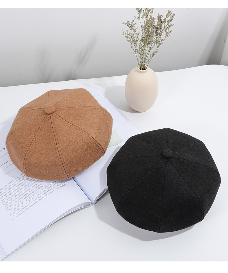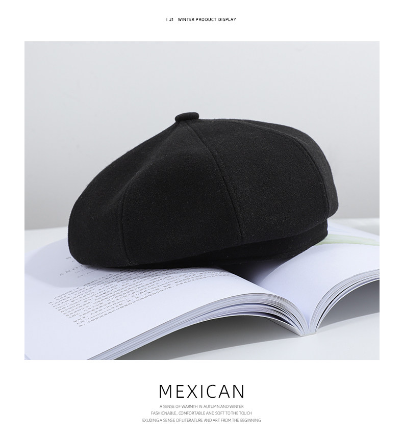 Черный шерстяной берет, зимняя универсальная модная шапка