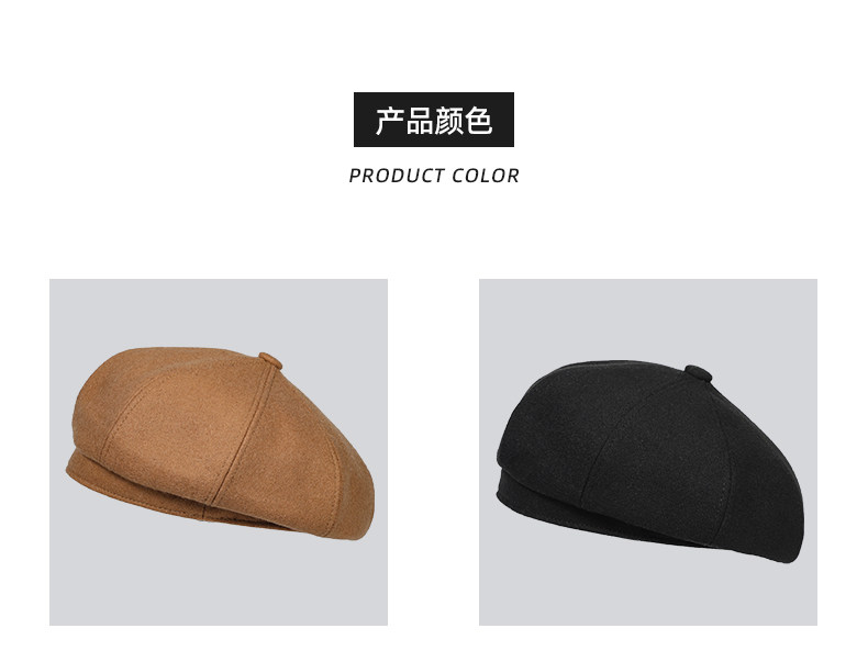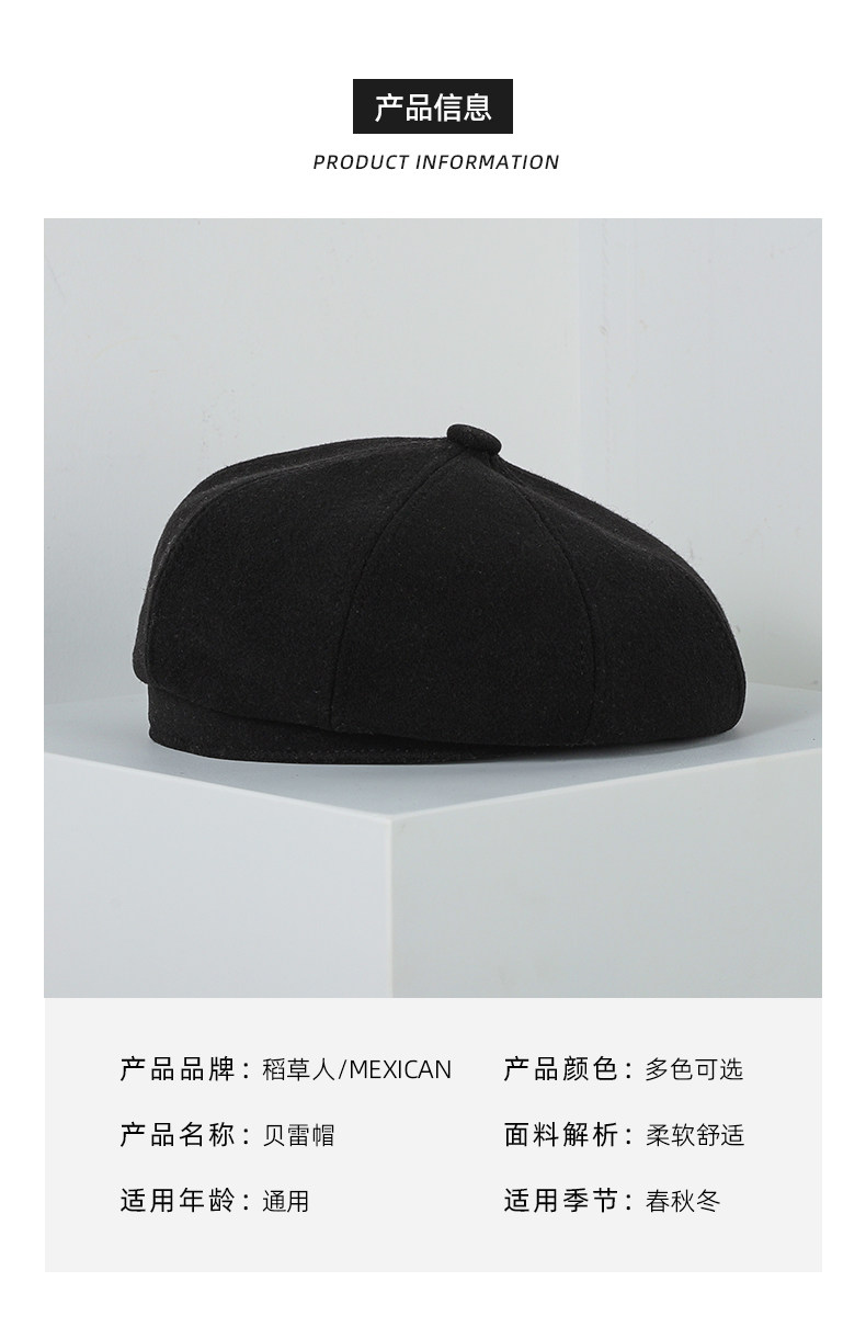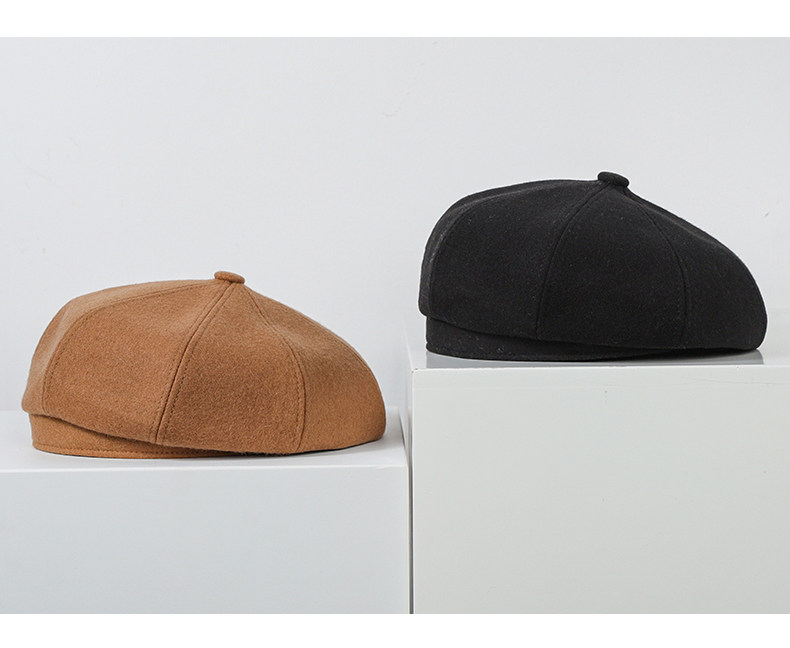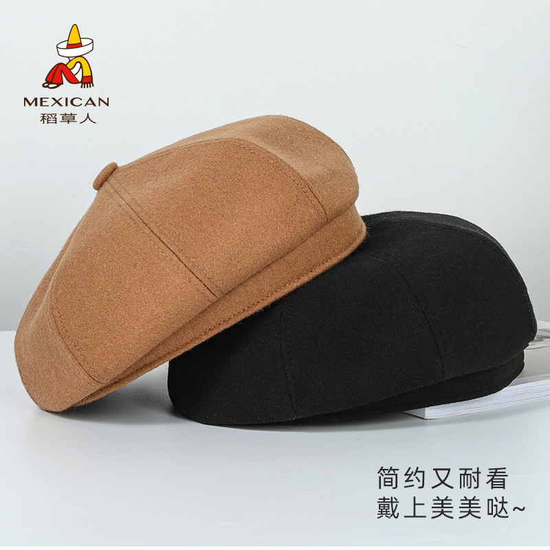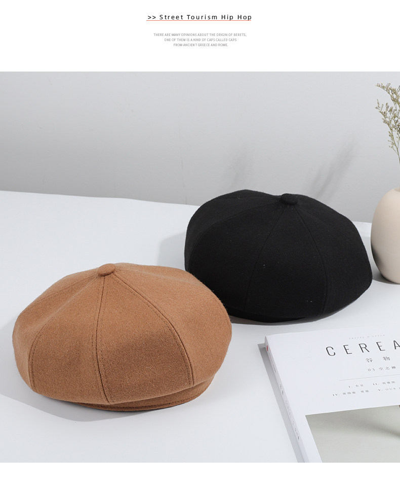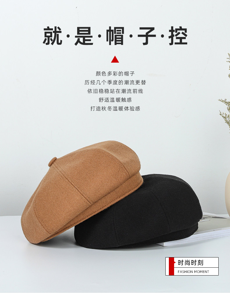 Черный шерстяной берет, зимняя универсальная модная шапка