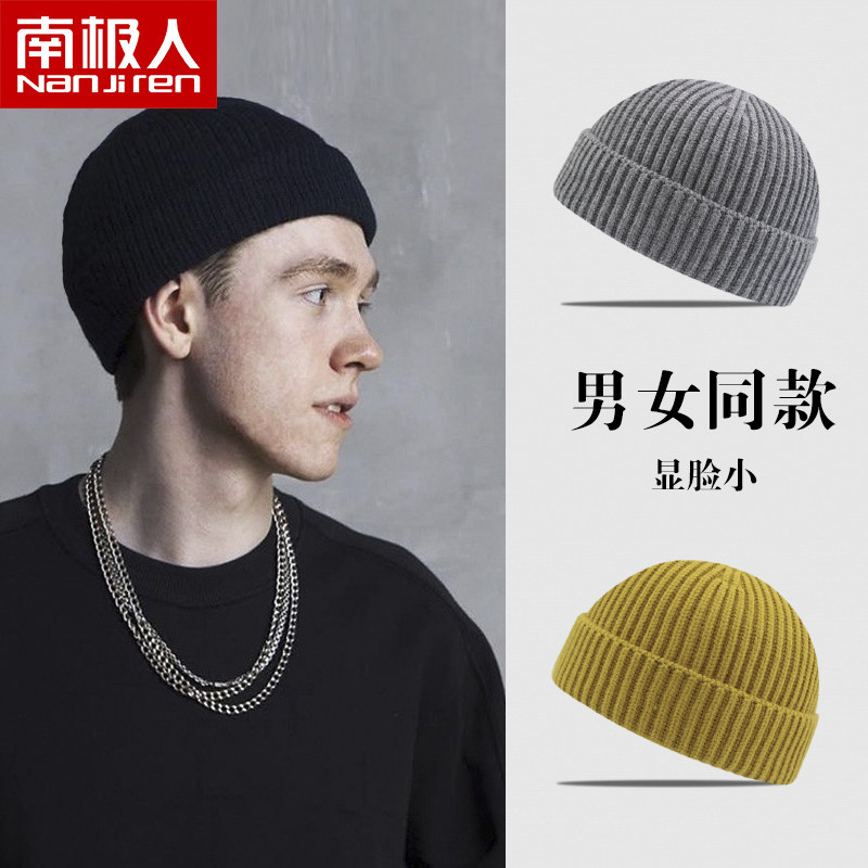 Демисезонная трикотажная шерстяная черная шапка в стиле хип-хоп