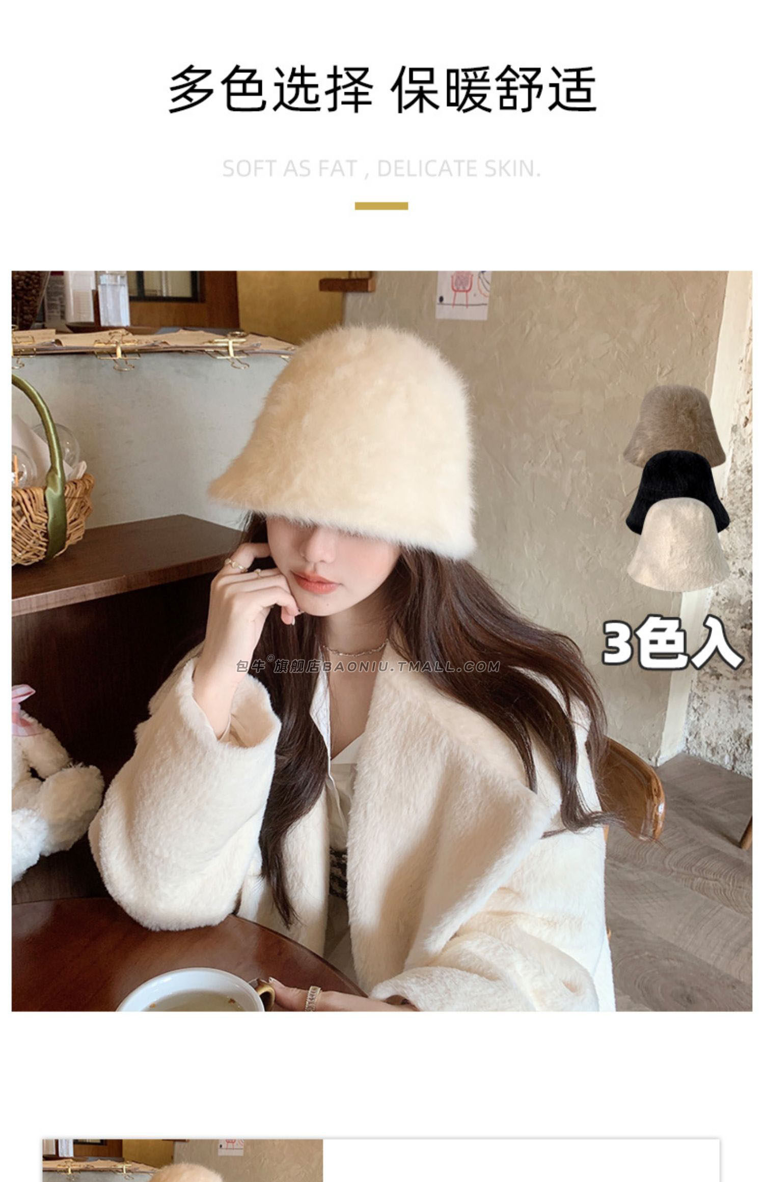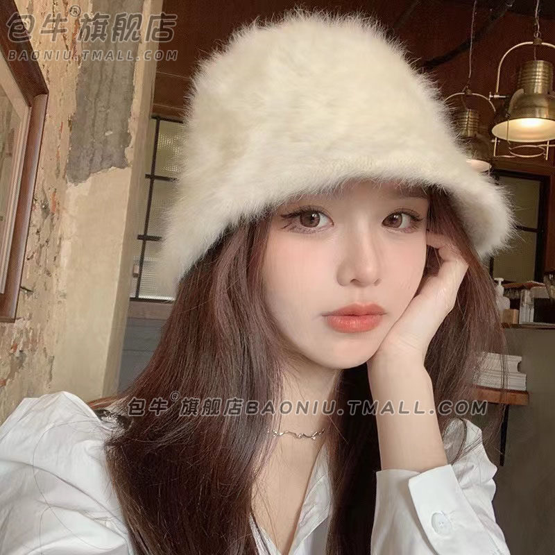 Демисезонное бархатное ведро, белая шапка, 2023
