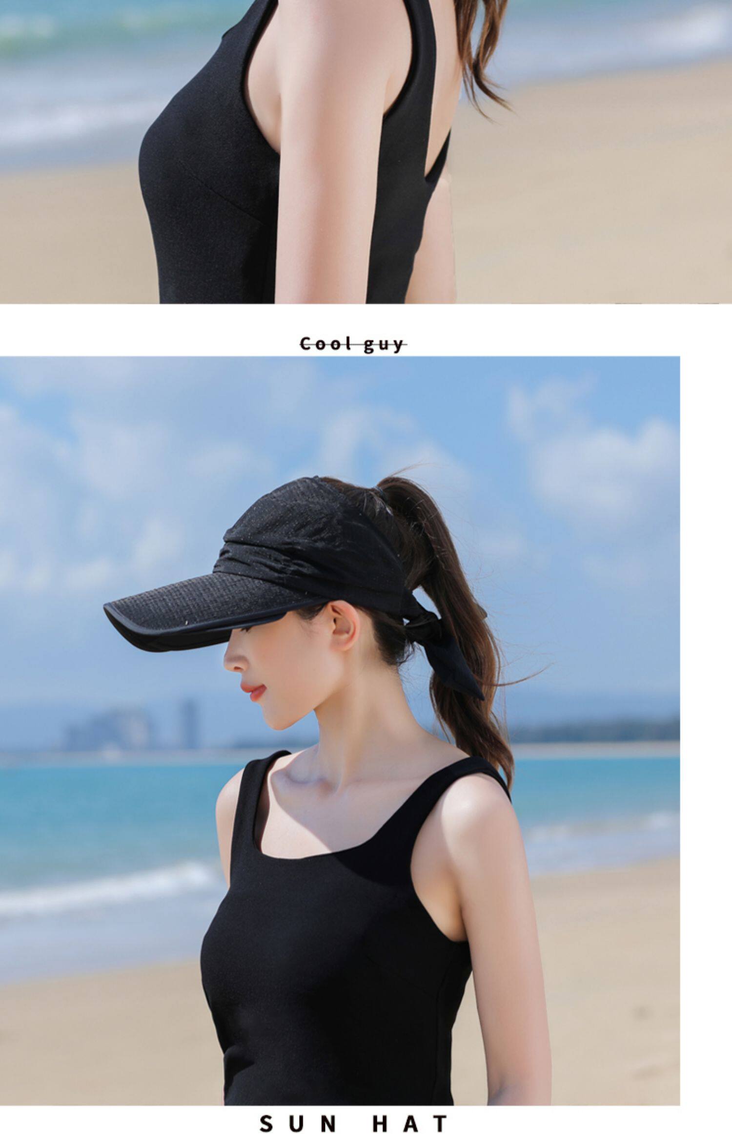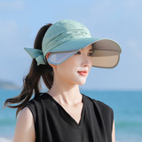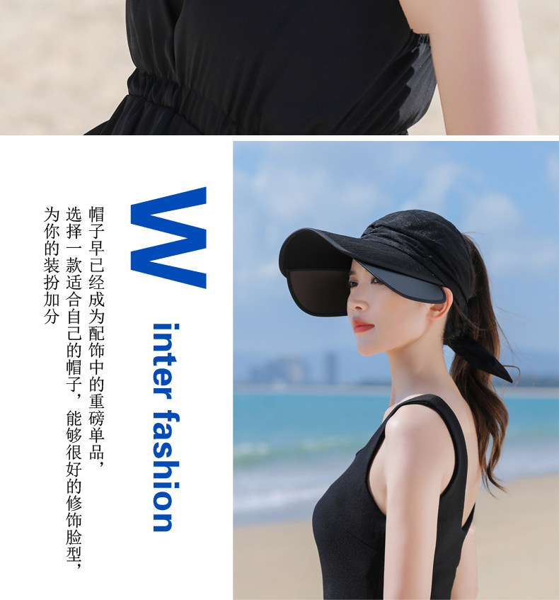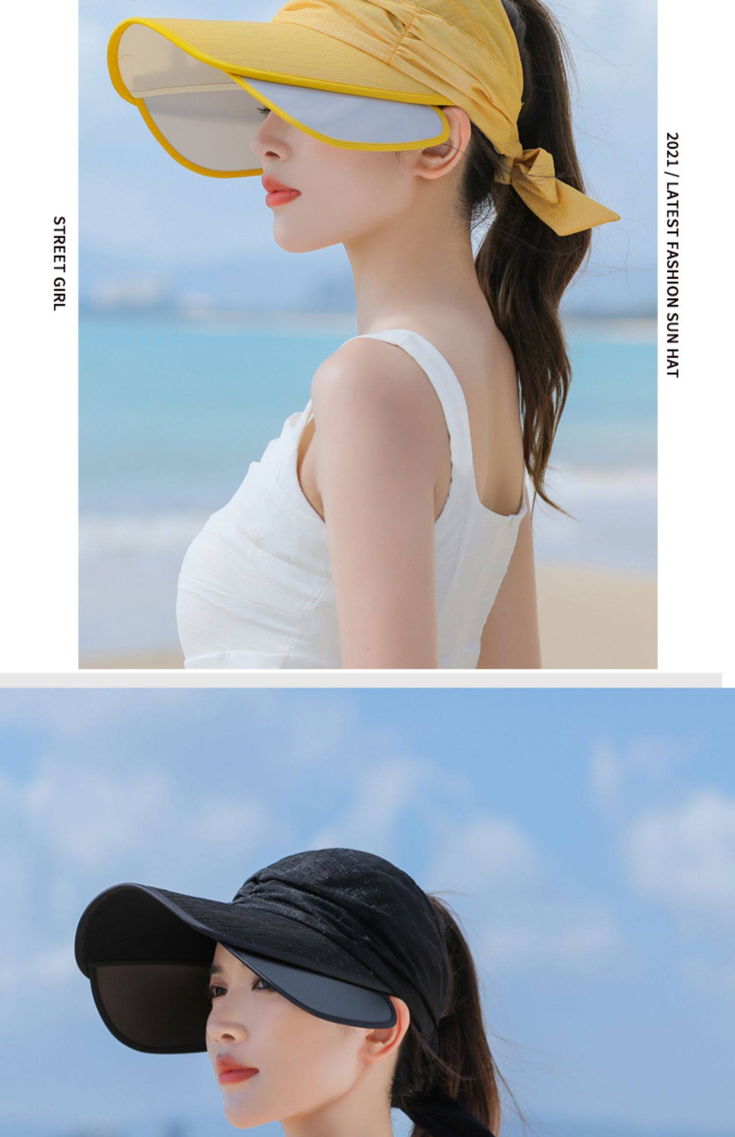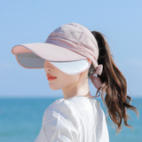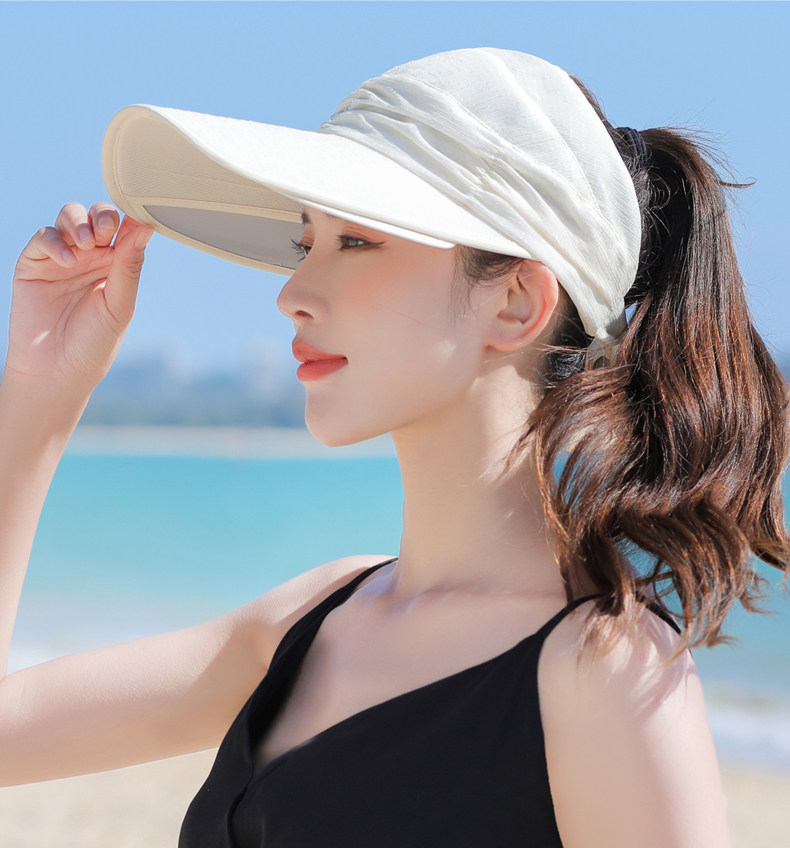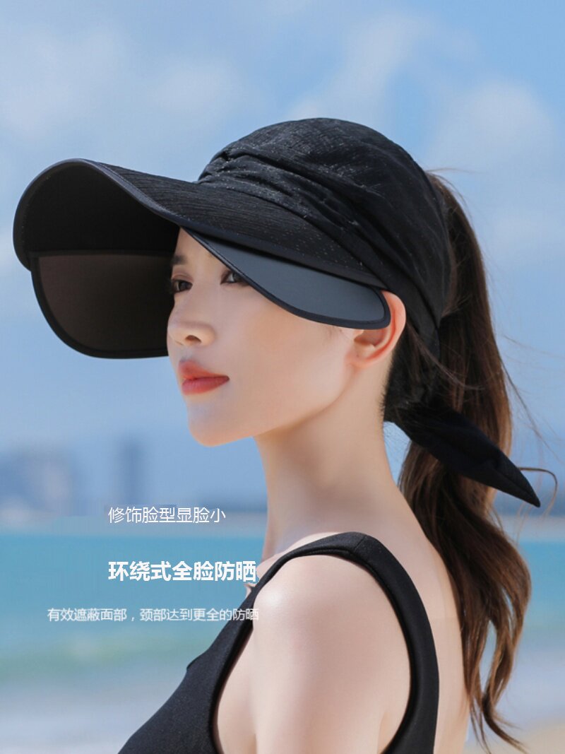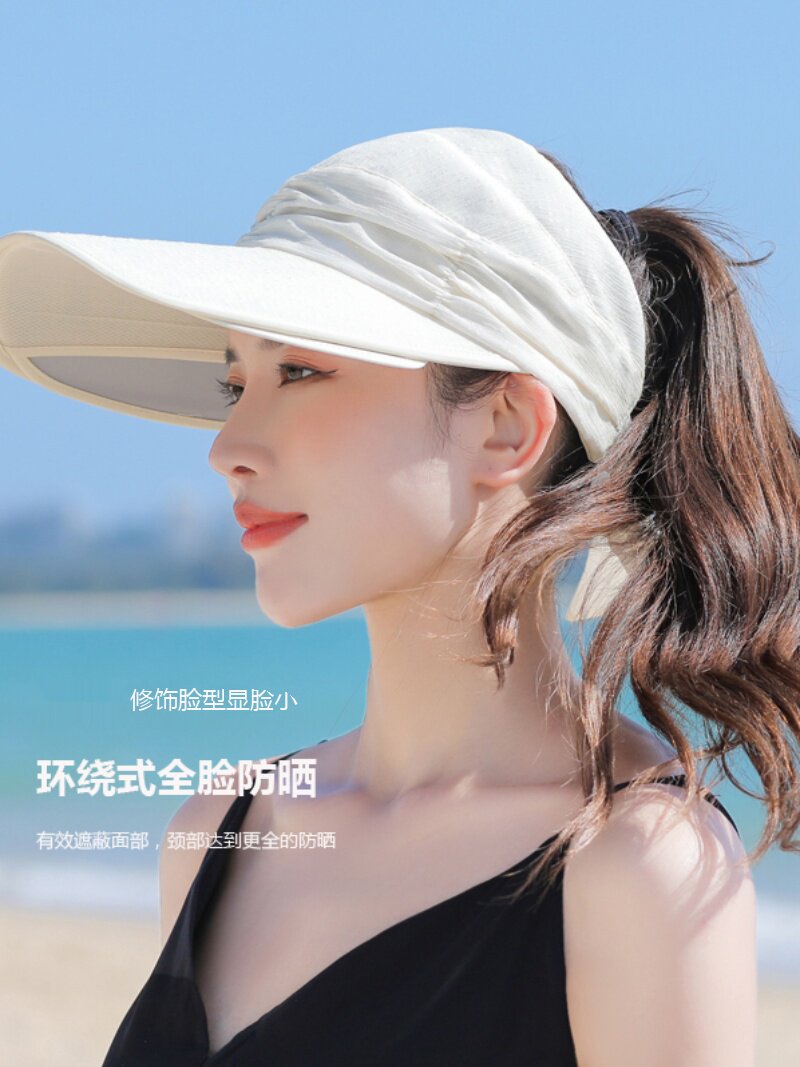 Пустая кепка Женская летняя корейская версия на открытом воздухе, накрыв, дикие большие карнизы, большие карнизы, солнечные шляпы, катание и выдвижная ширина вдоль солнцезащитного крема