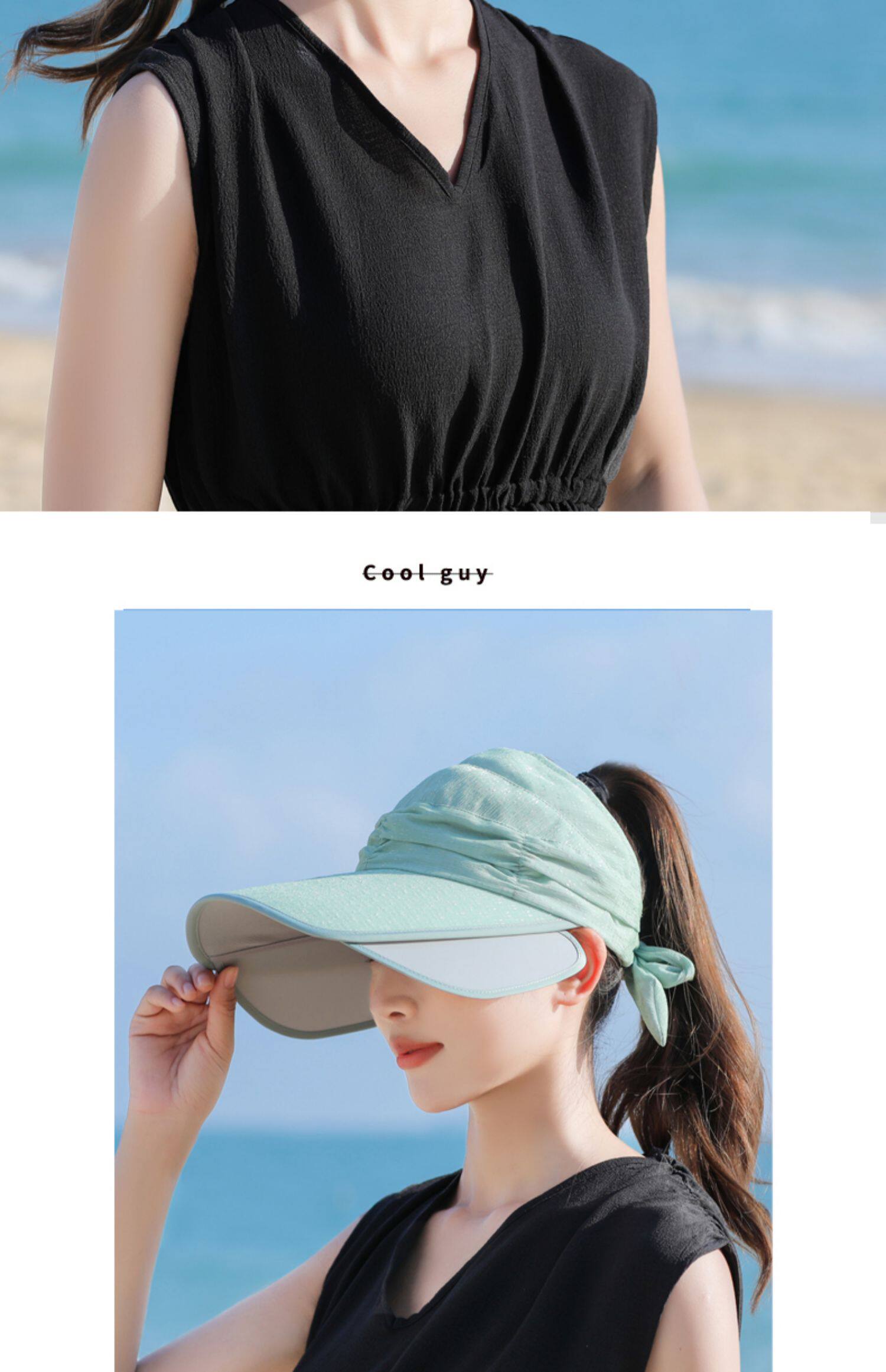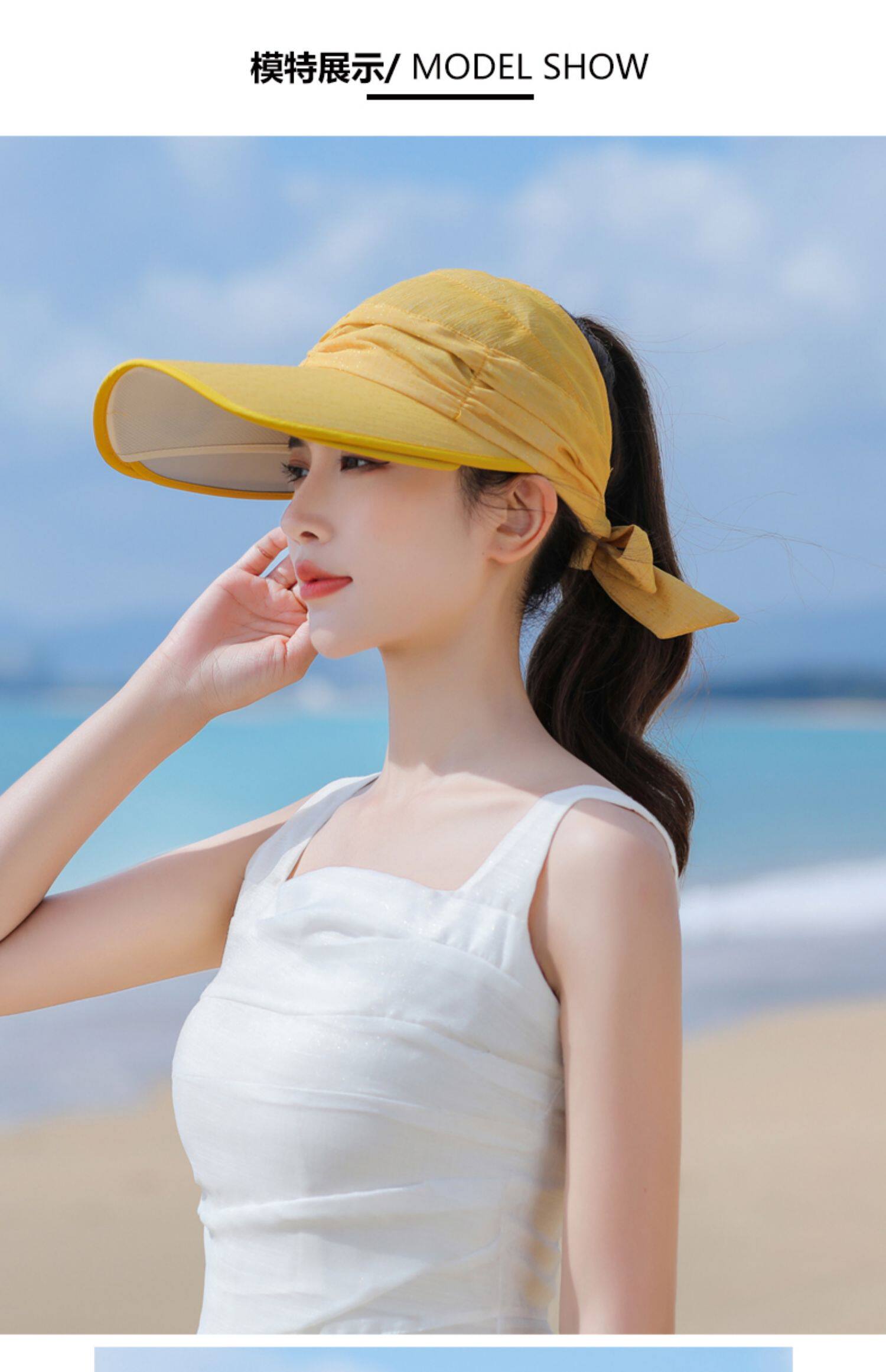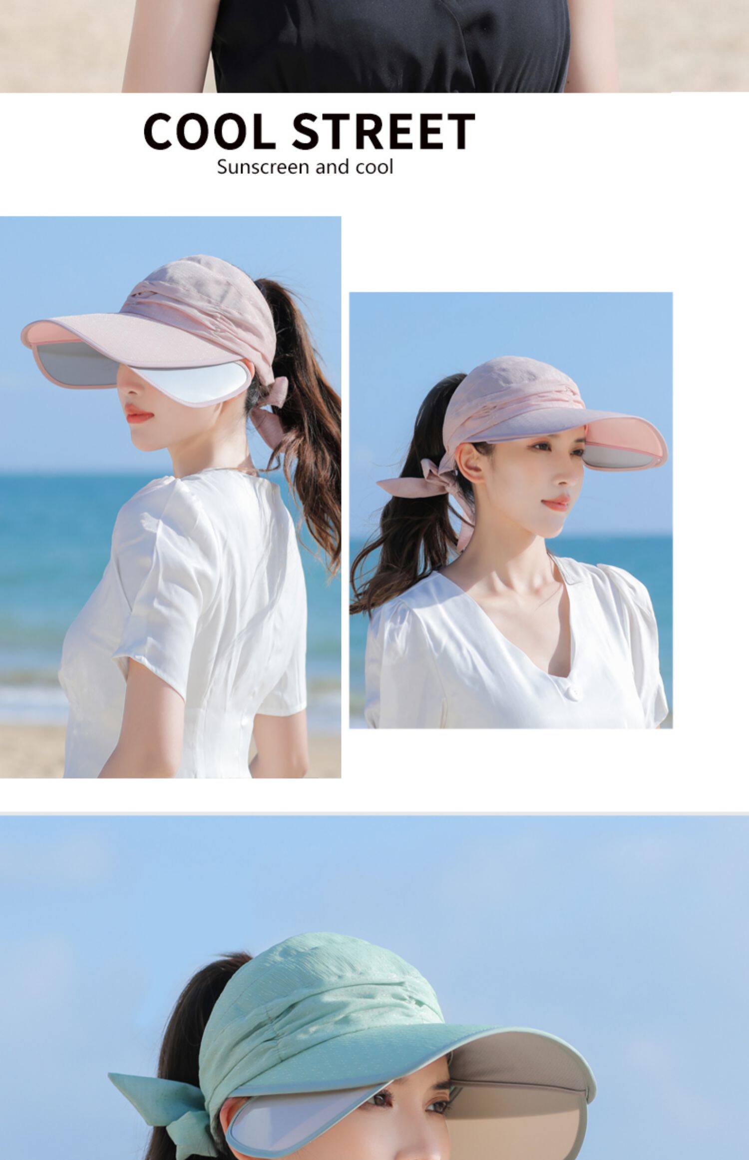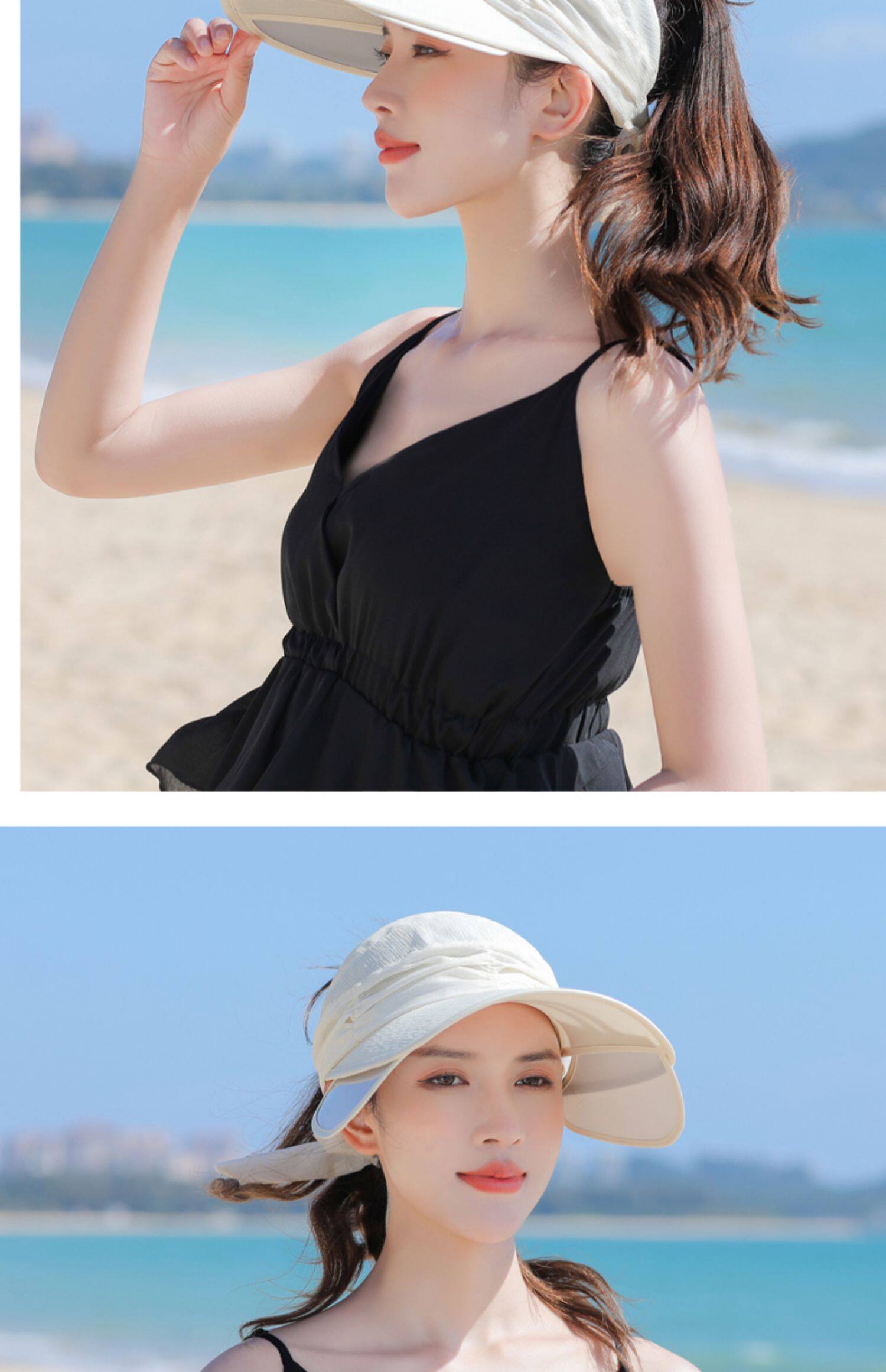 Пустая кепка Женская летняя корейская версия на открытом воздухе, накрыв, дикие большие карнизы, большие карнизы, солнечные шляпы, катание и выдвижная ширина вдоль солнцезащитного крема