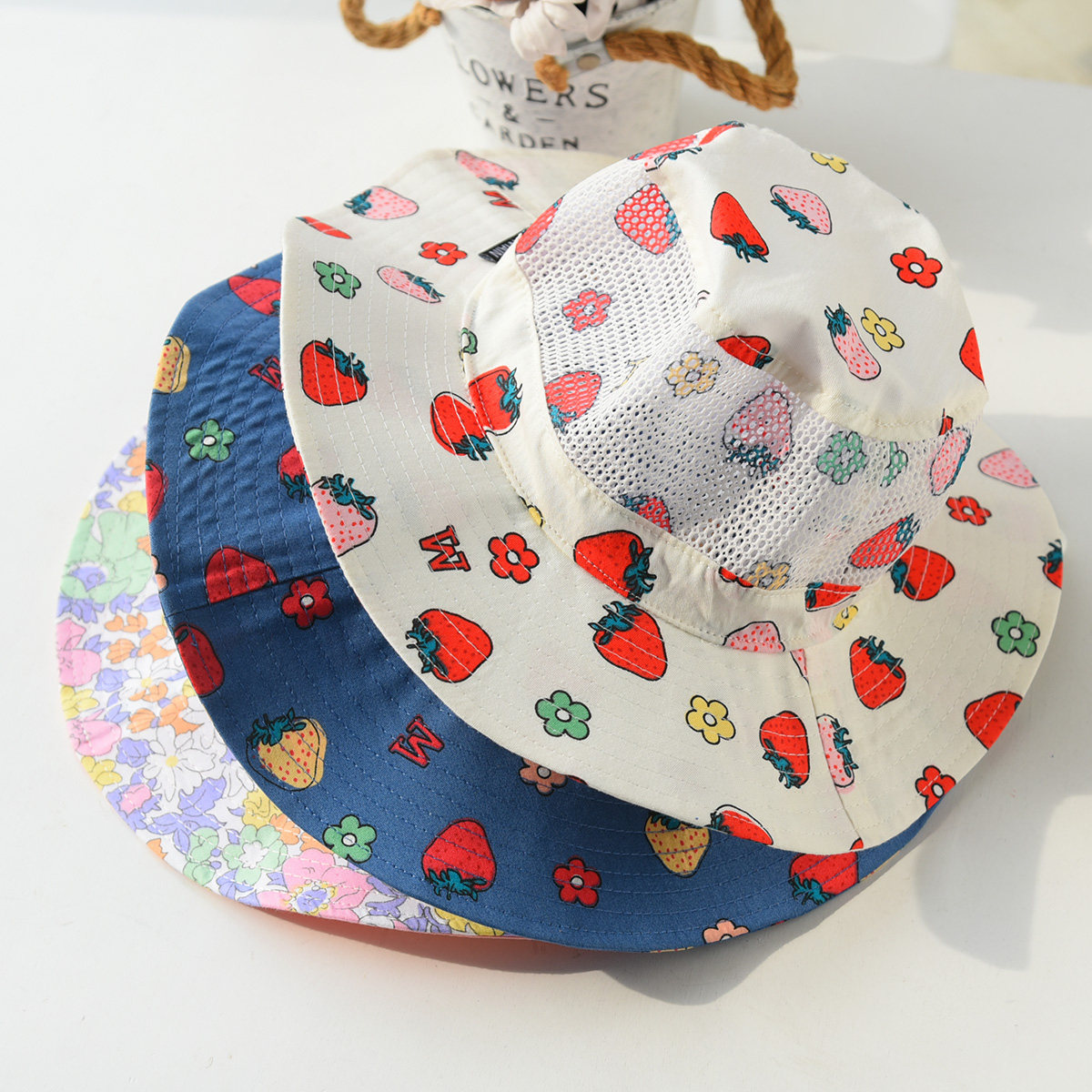 Детский чистый хлопковый рыбак шляпы мальчиков и девочек из шляп, печать с глаз вокруг верхней шляпы для карниза весной и летней модели
